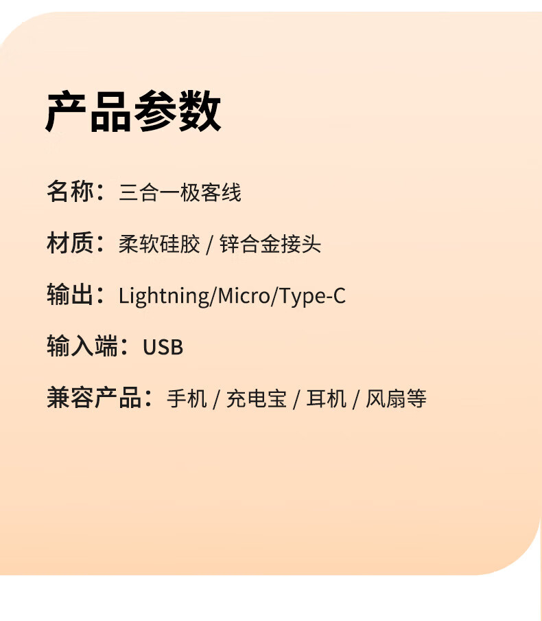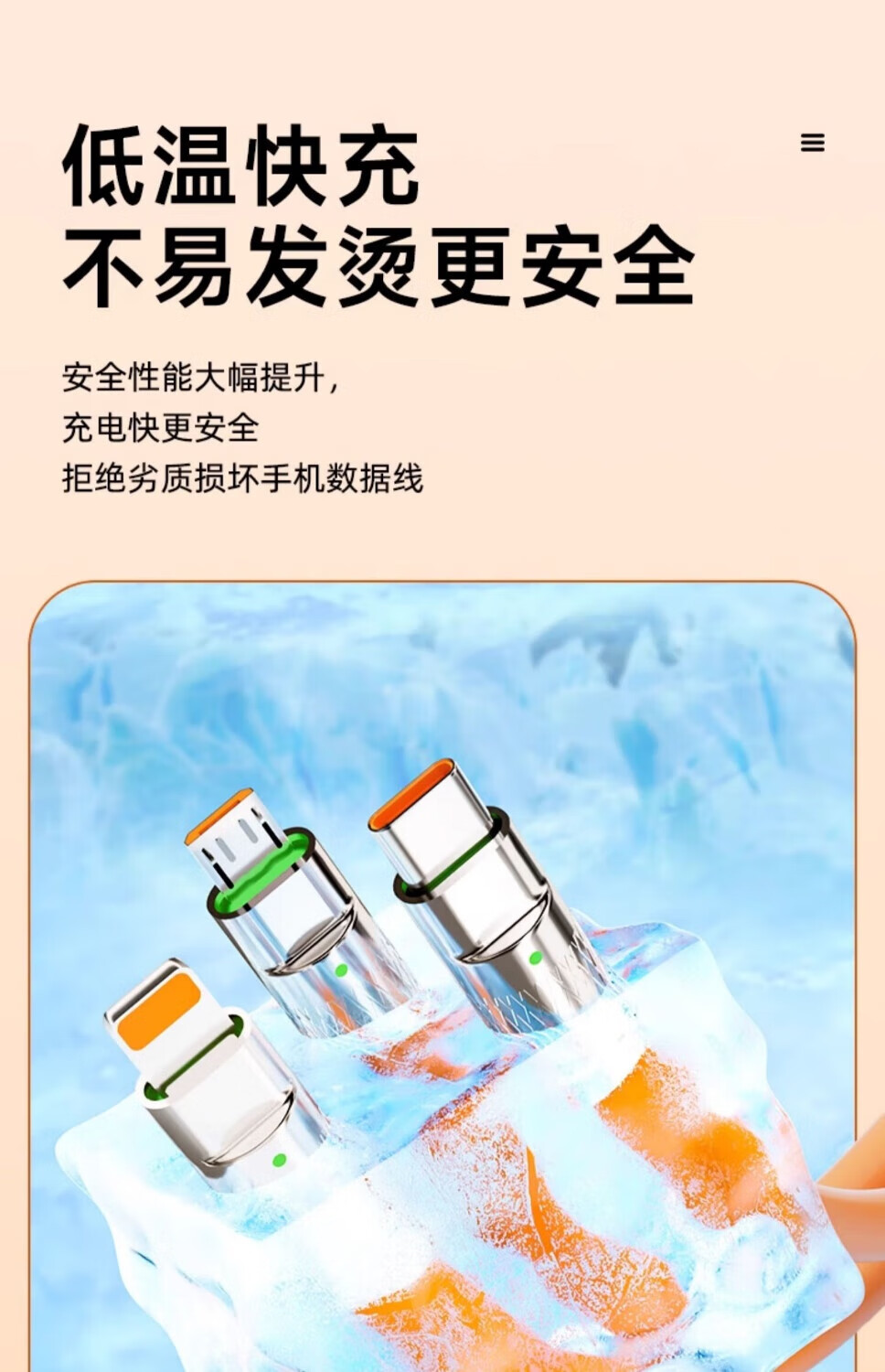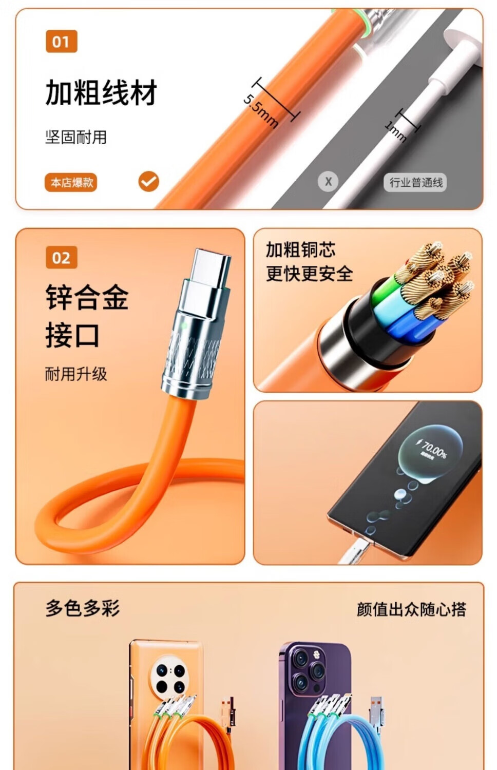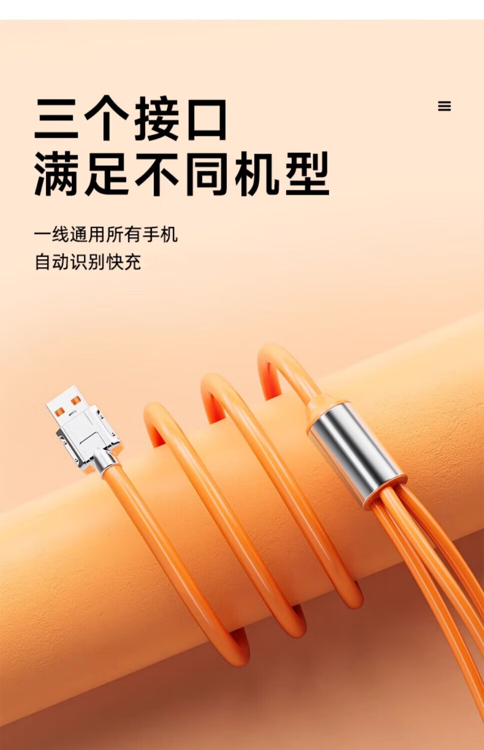 St. Heaton's new fast charging data cable, three-in-one charging cable, one-to-three, suitable for Huawei TYPE-C, suitable for Apple, suitable for Honor, suitable for Xiaomi Android mobile phones, flash charging, universal car, 1 meter, cream white, 6A super fast charge