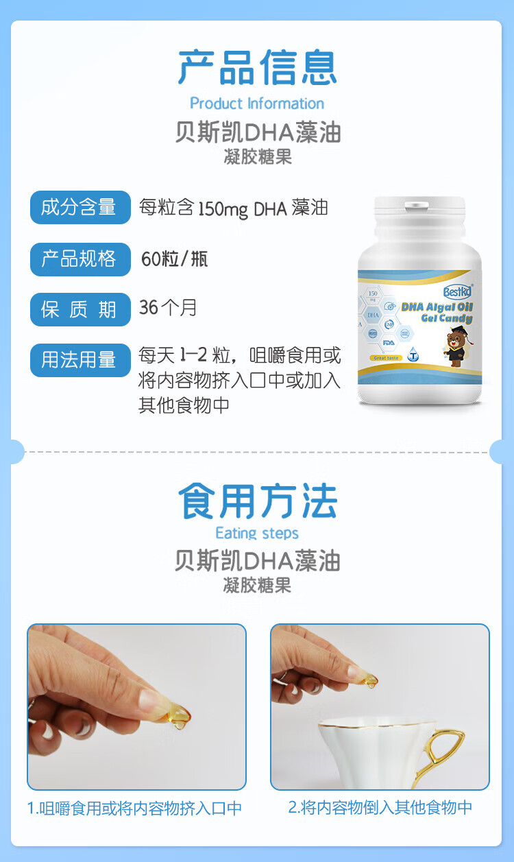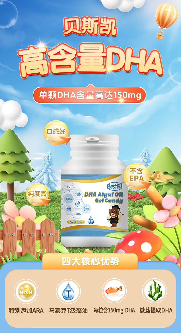 Beske dha algae oil, microalgae extraction, children, students, pregnant women, lemon flavor, imported from the United States, one box (scratch code for delivery)