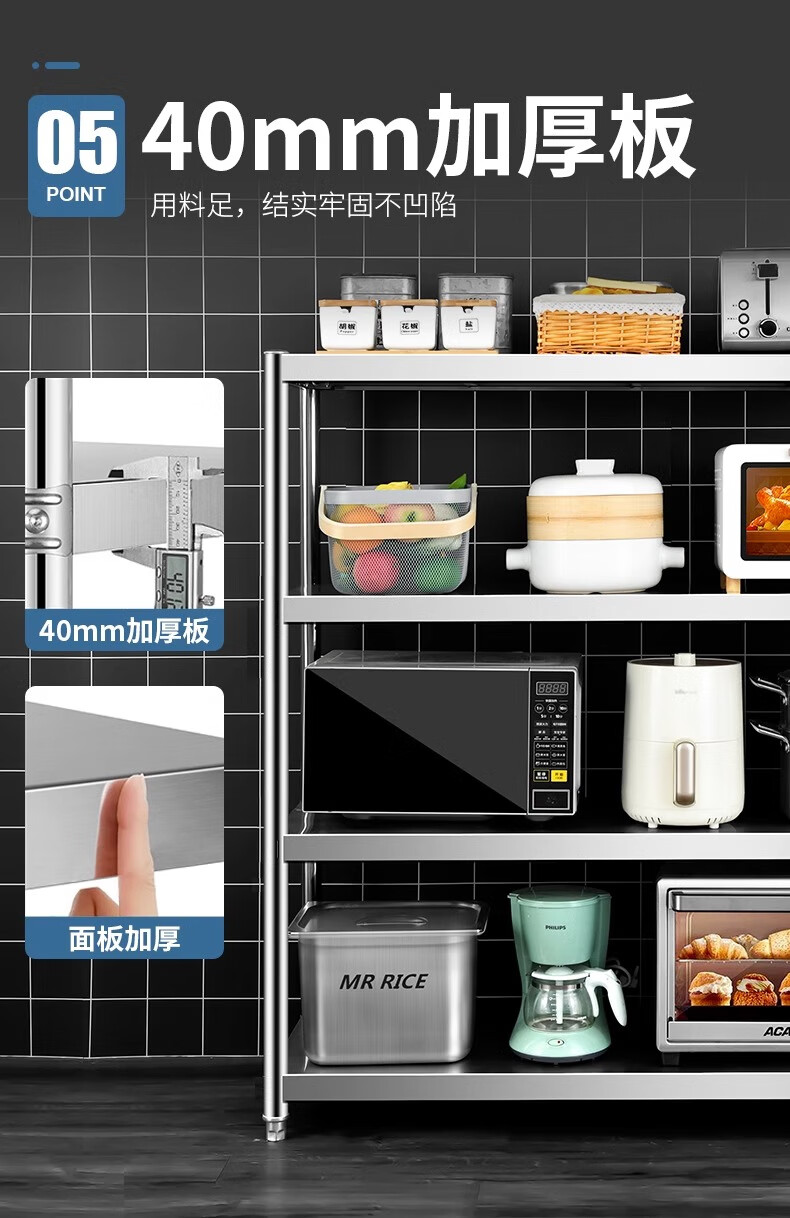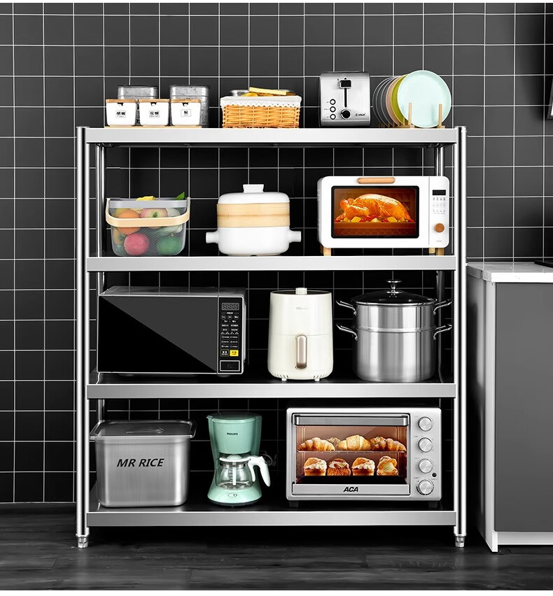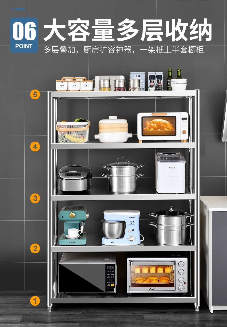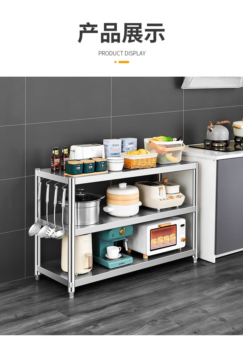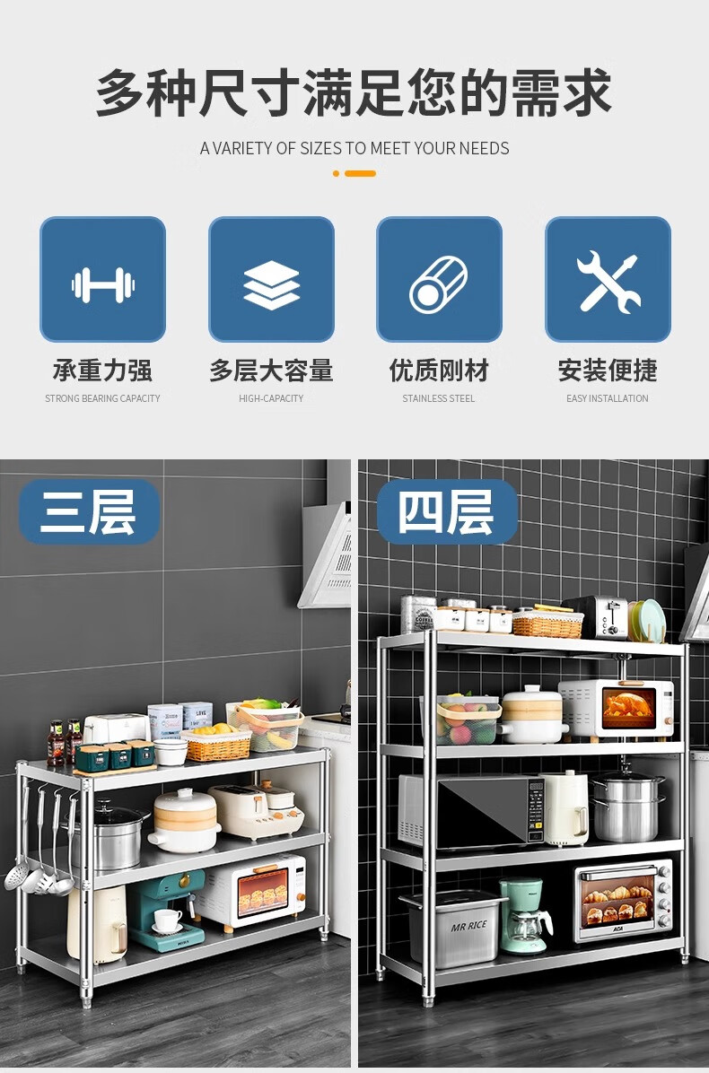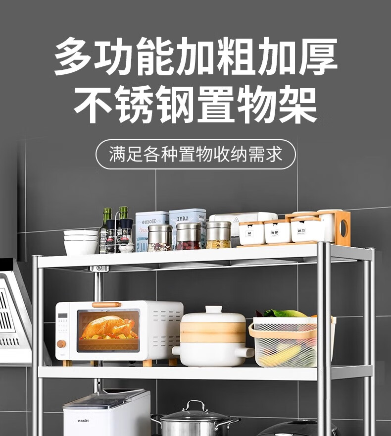 Guanzhijia kitchen stainless steel storage rack floor-standing thickened multi-layer microwave storage rack household pot rack cabinet storage shelf three layers default 80 high can rise/90/100 length 60cm width 40cm