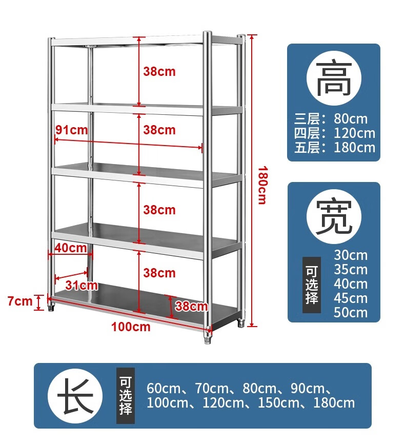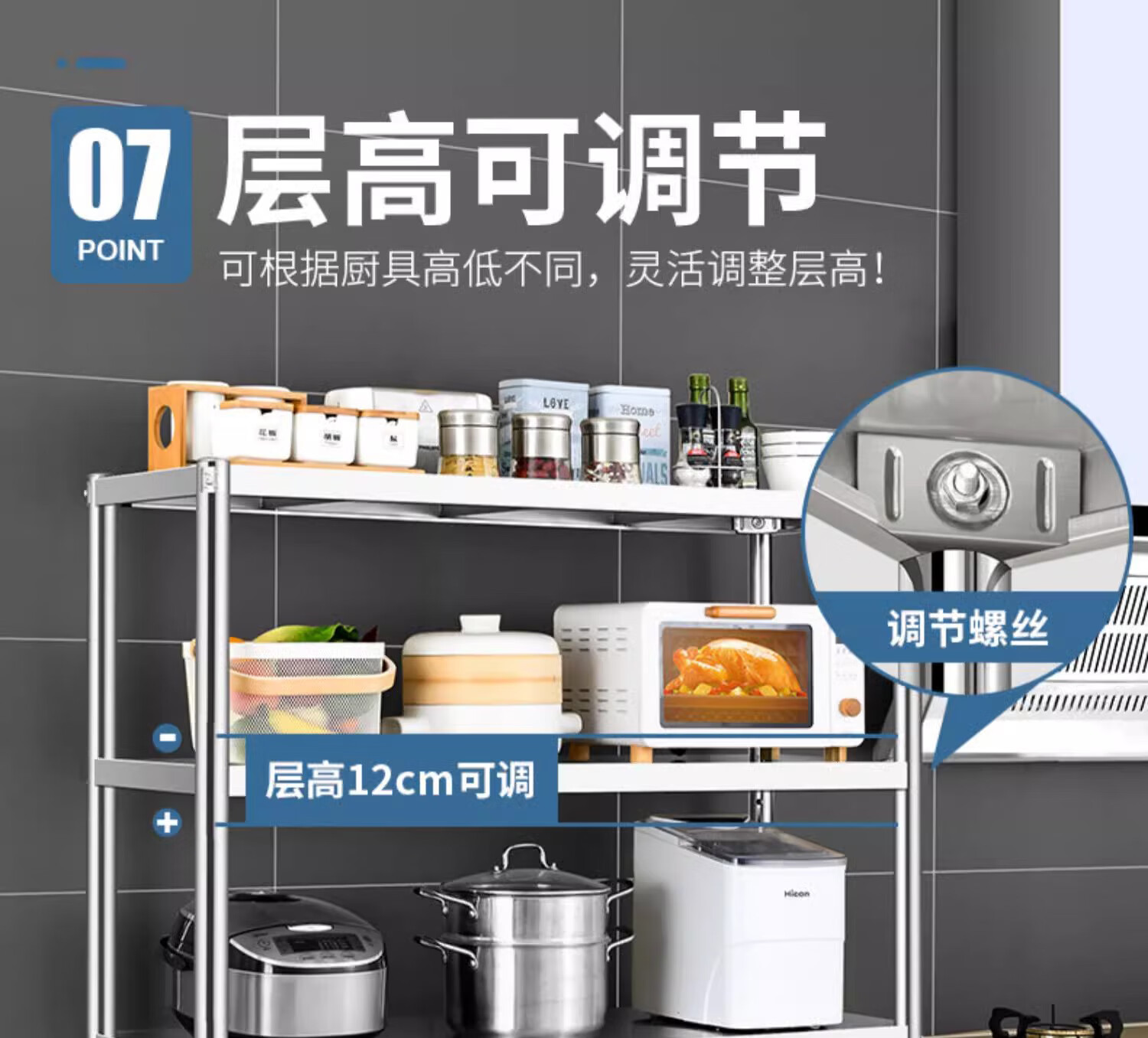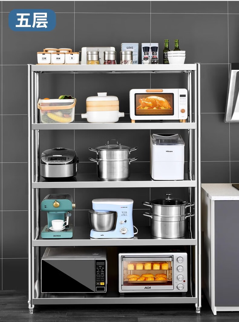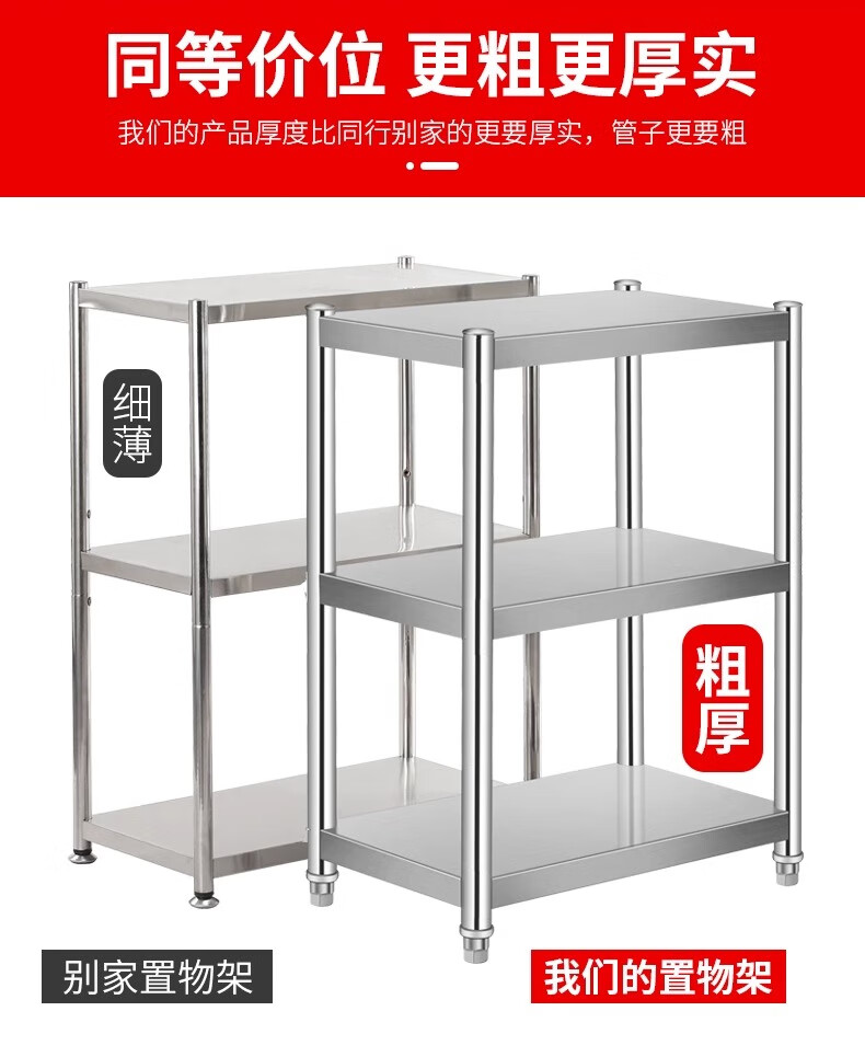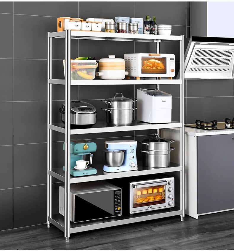 Guanzhijia kitchen stainless steel storage rack floor-standing thickened multi-layer microwave storage rack household pot rack cabinet storage shelf three layers default 80 high can rise/90/100 length 60cm width 40cm