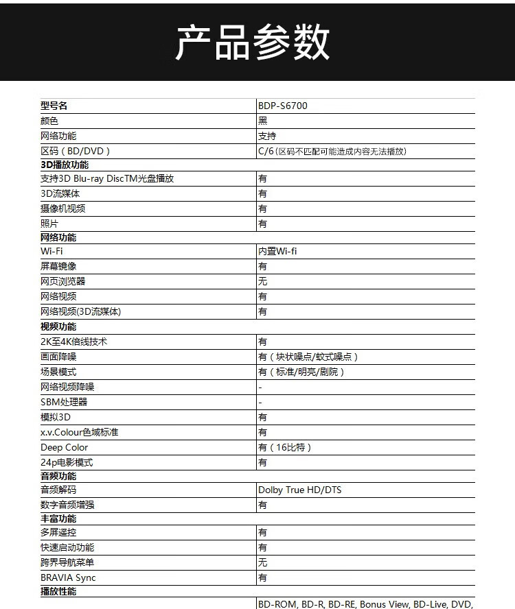Sony (SONY) BDP-S1500/S5500/S6700 4K Blu-ray 3D player HD DVD Bluetooth amplifier lossless CD player BDP-S5500