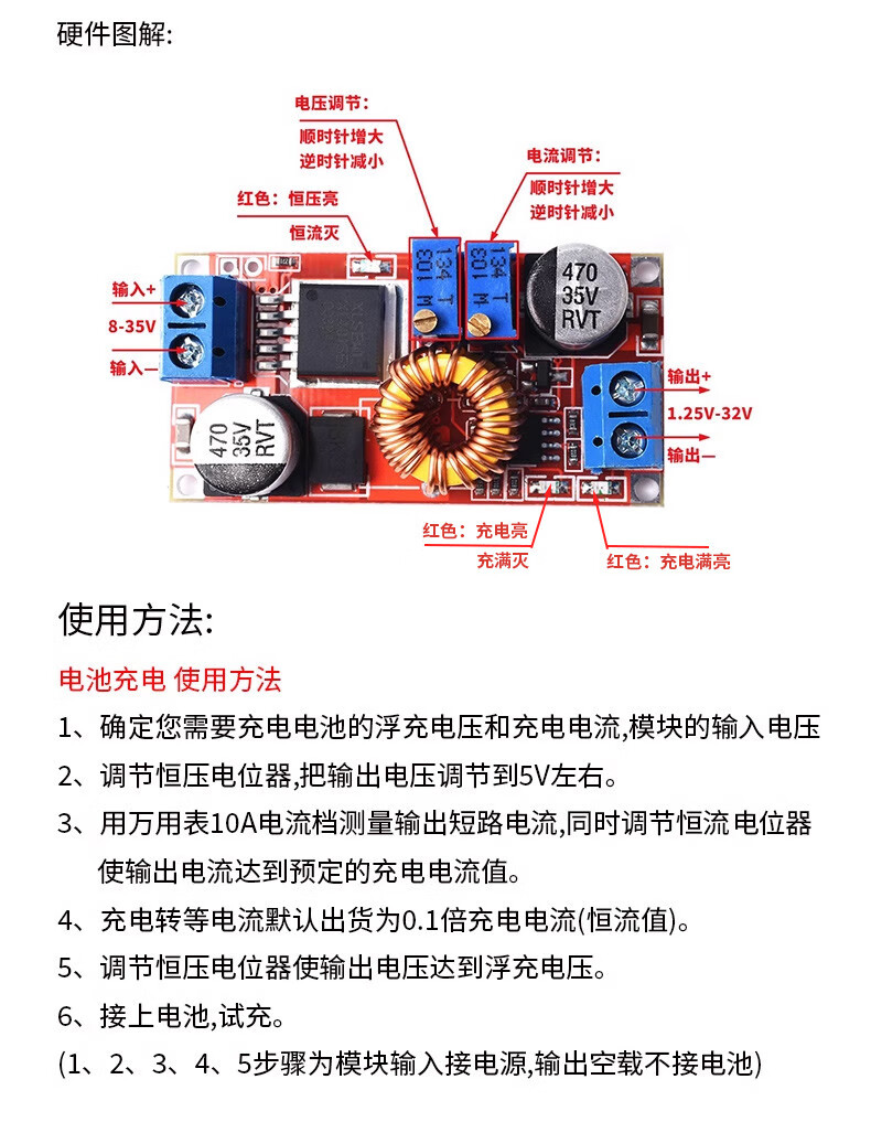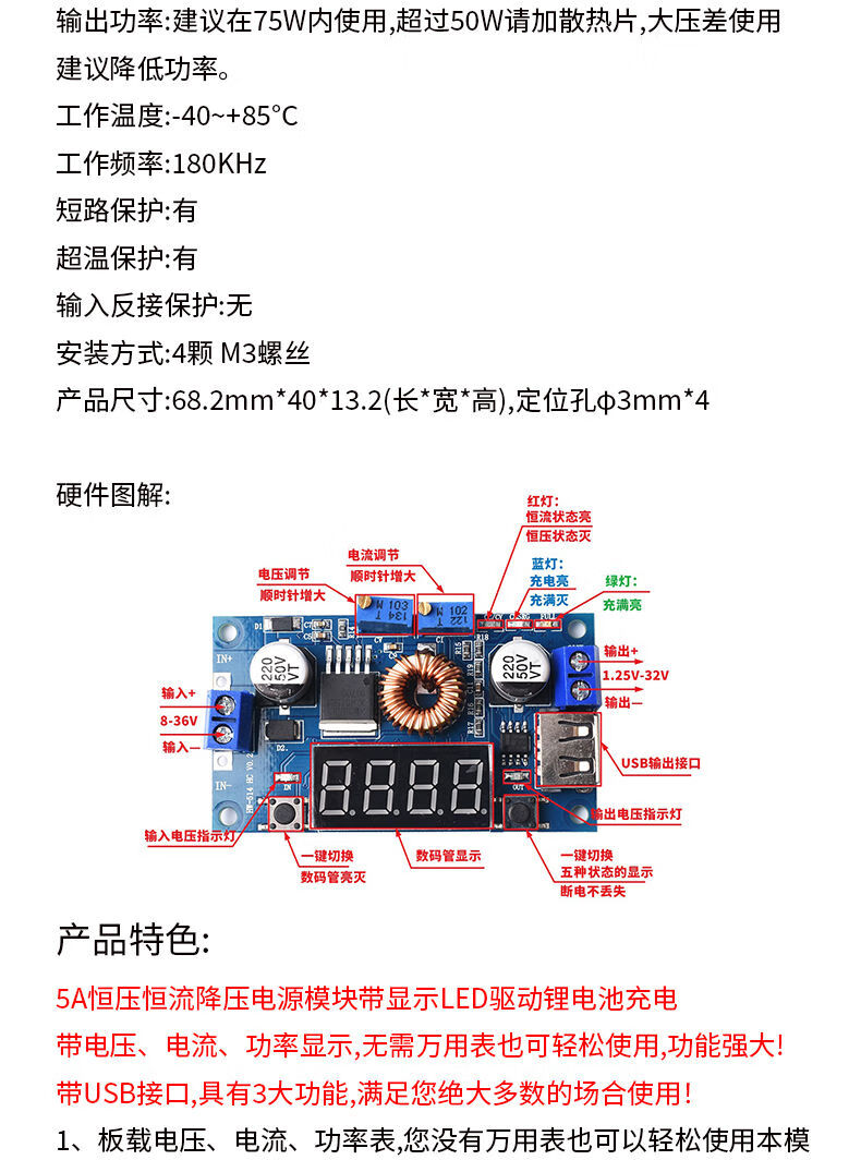XL4005/4015 adjustable step-down power supply module DC-DC stabilized voltage 5~35V constant current and constant voltage 5A high current XL4015 adjustable step-down module