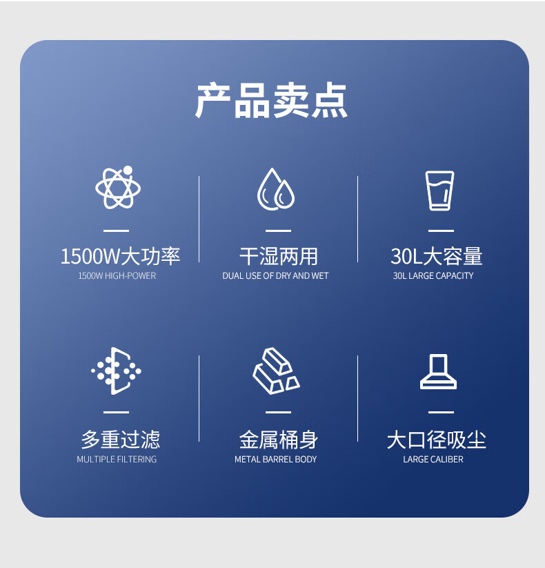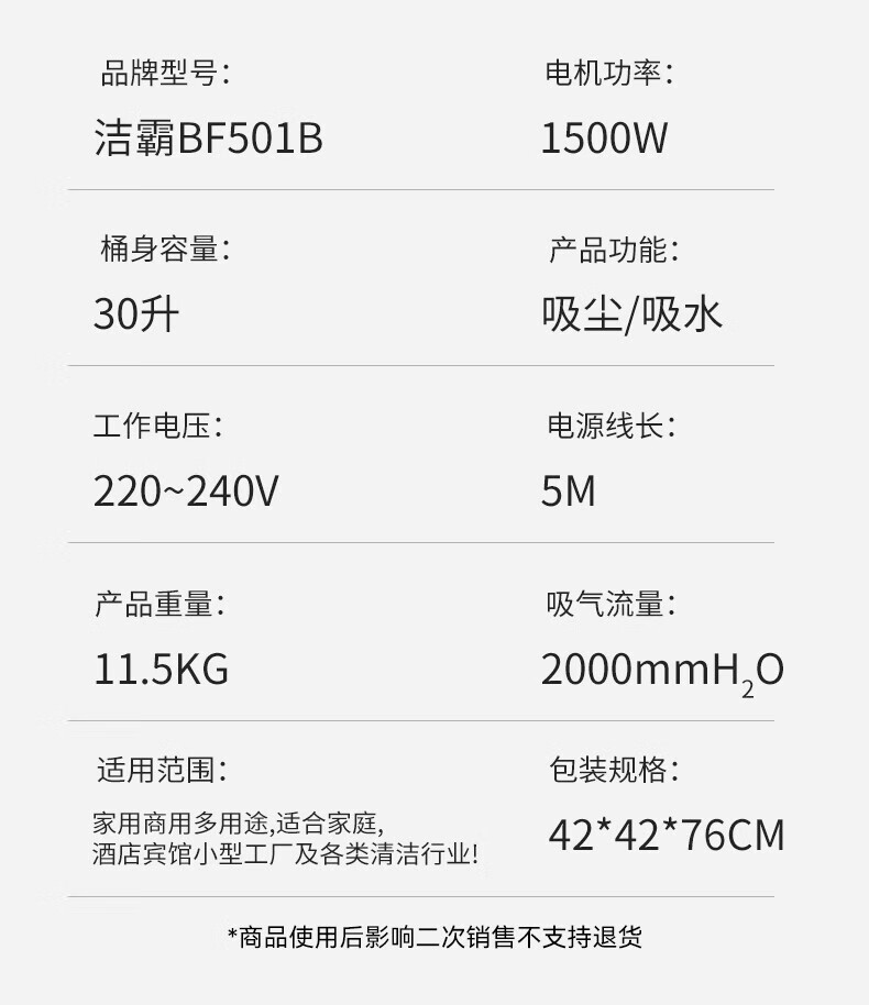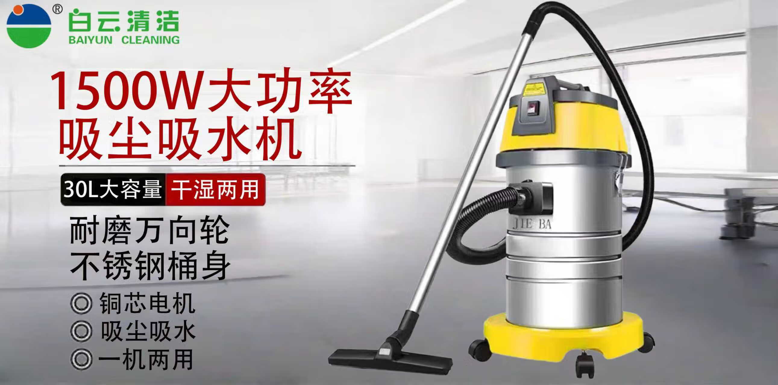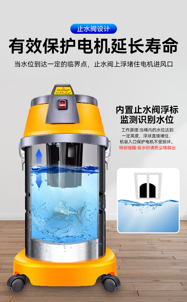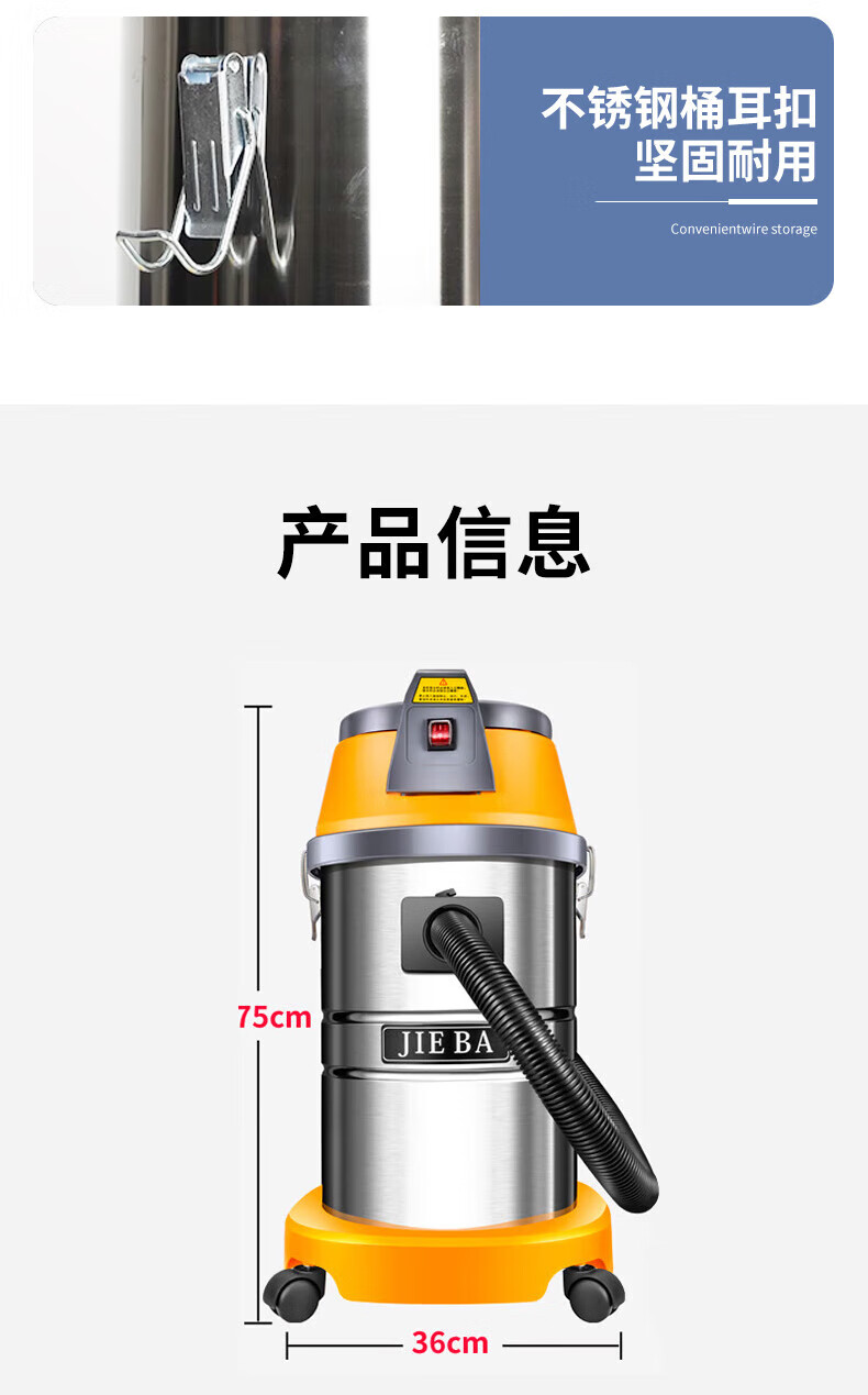 JIEBA Wet and dry vacuum cleaner high power 1500W household commercial vacuum cleaner 30L straight steel pipe 30L industrial recommended version straight steel pipe BF501B