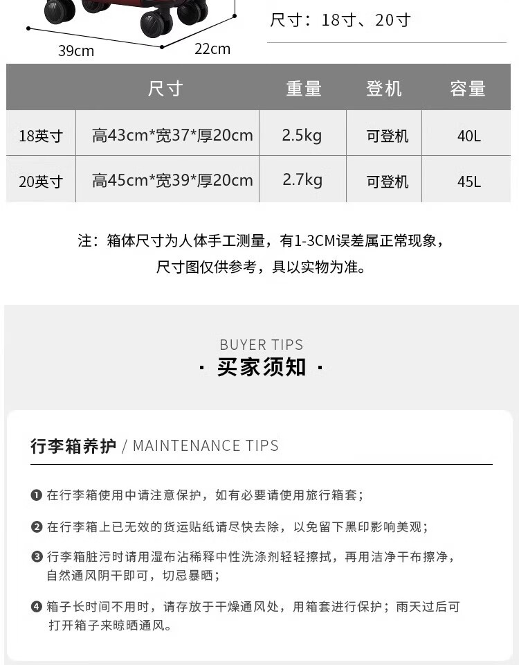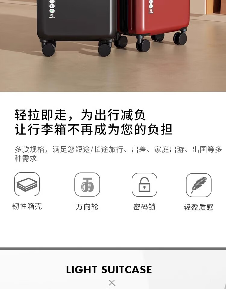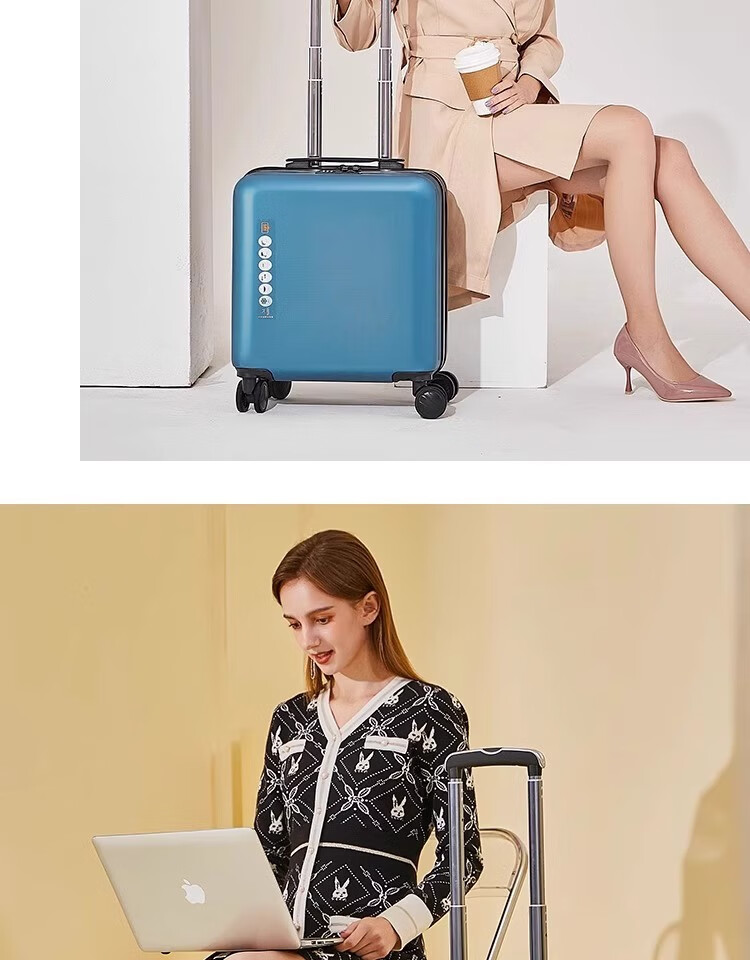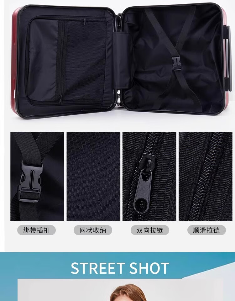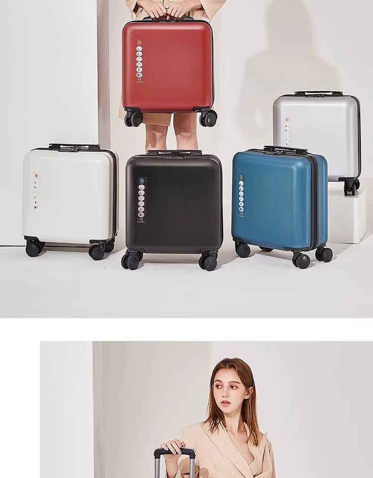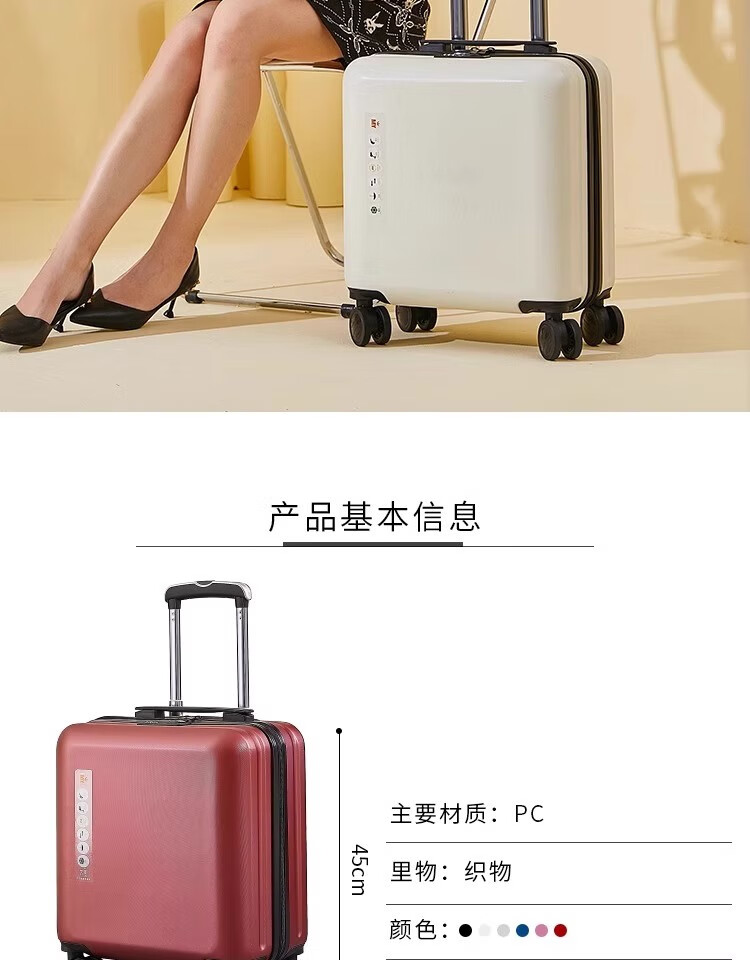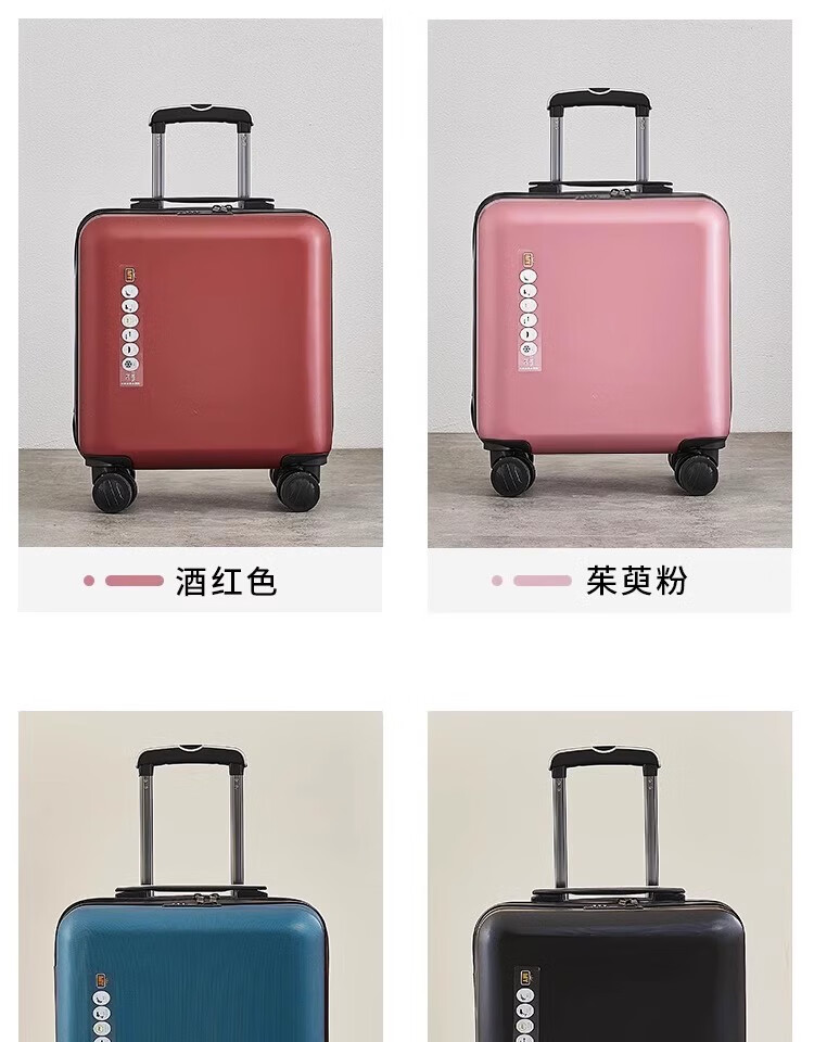Kangaroo small suitcase, thickened and scratch-resistant business boarding case, PC suitcase, universal wheel trolley case, free checked password box, black (anti-scratch PC material + alloy trolley) 18 inches (lightweight boarding case)