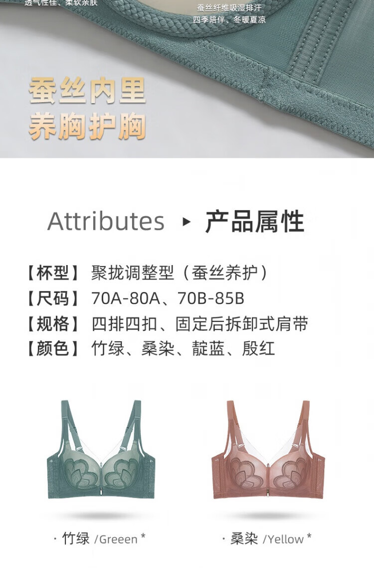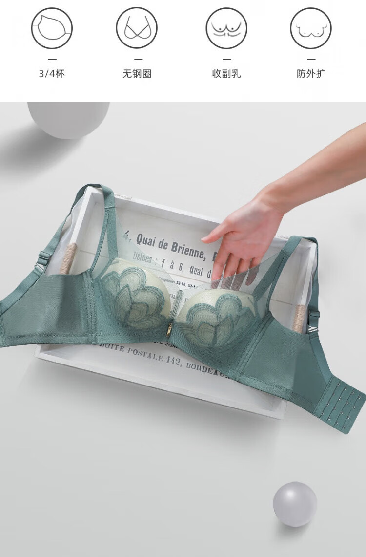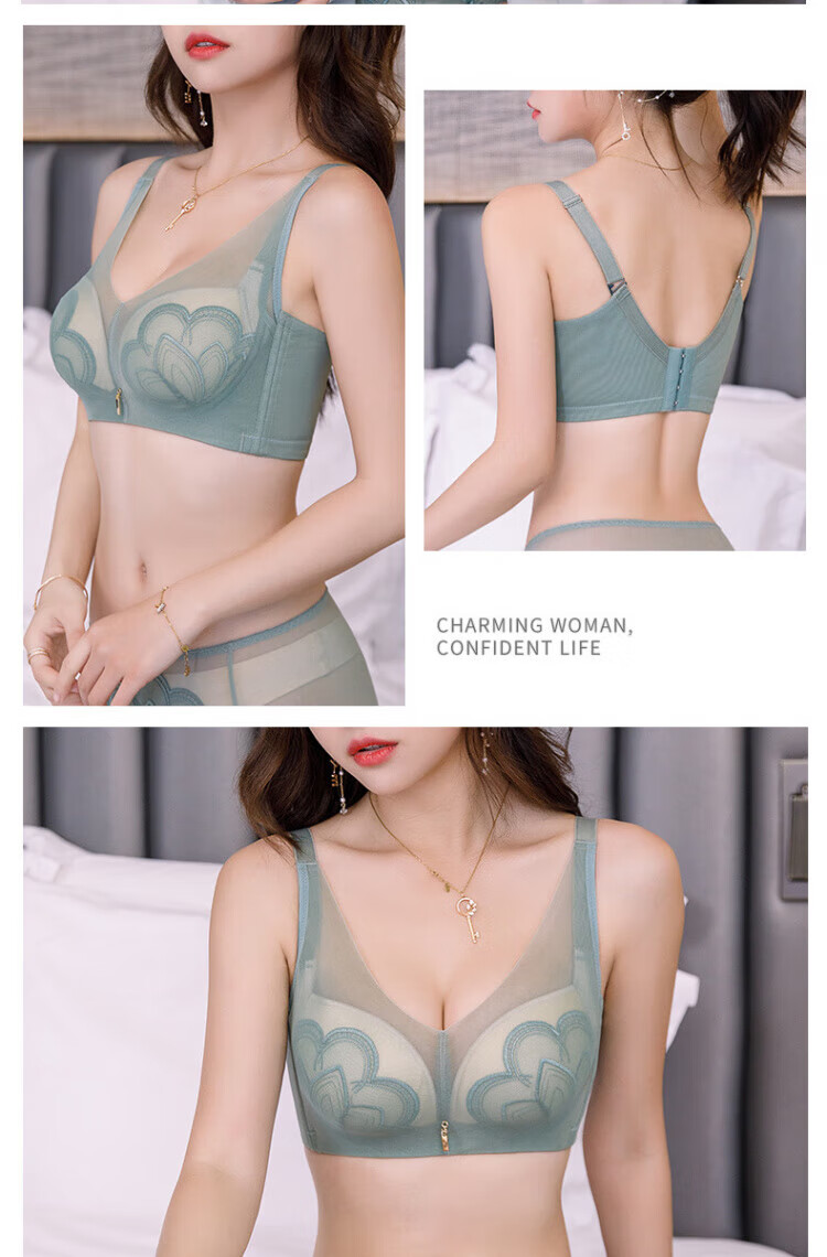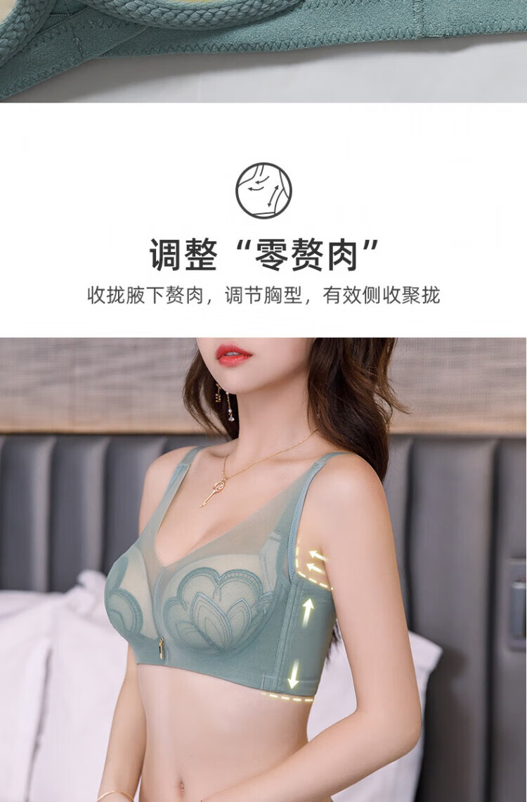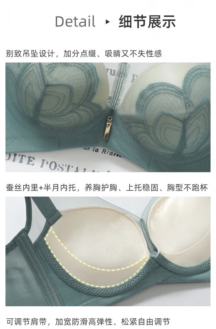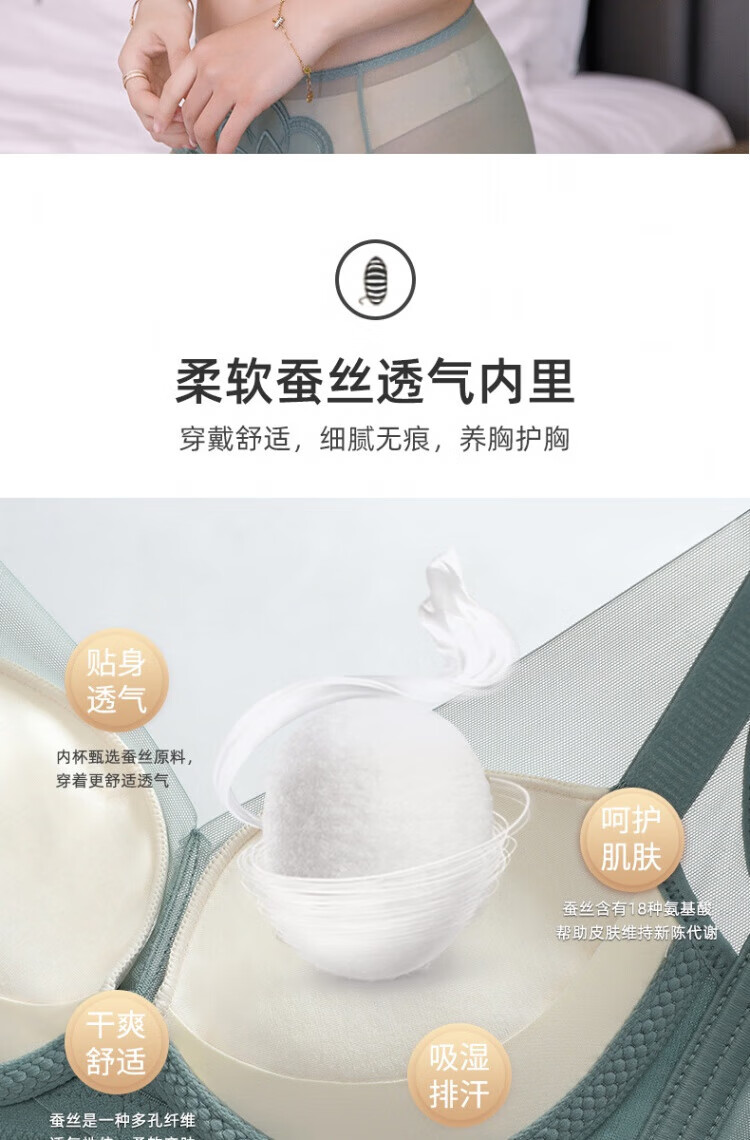 Modal Mulberry Silk Pure Desire Women's Underwear Women's Small Breast Gathering Secondary Breast Adjustable Anti-Sagging Wireless Bra Set Blue Set 80A