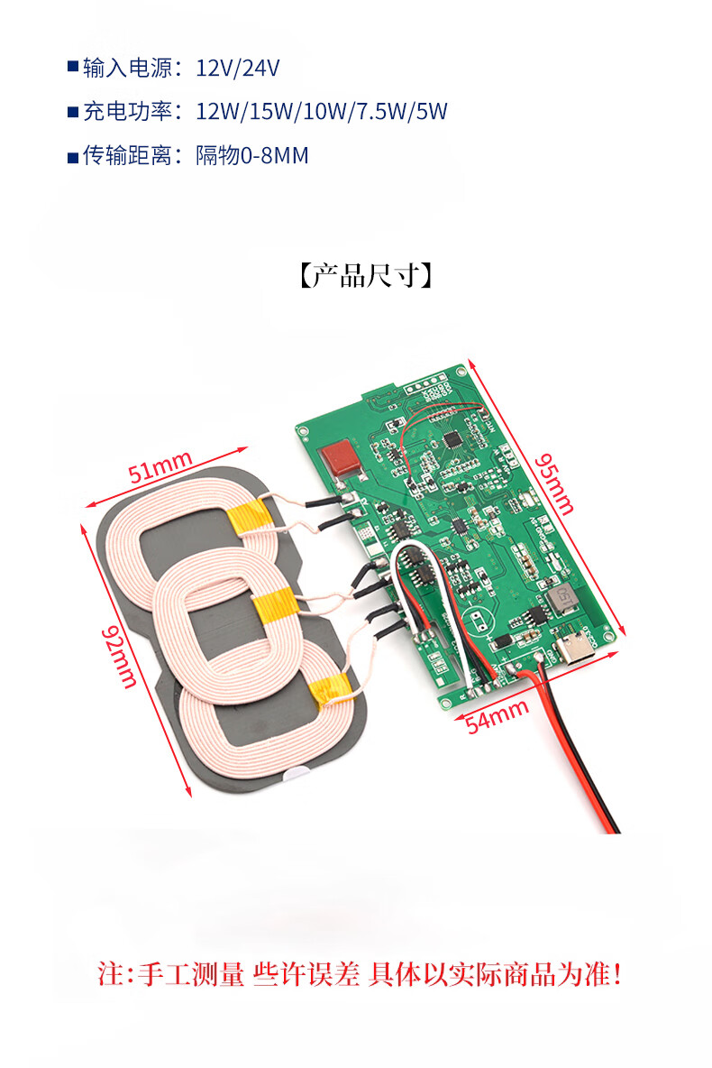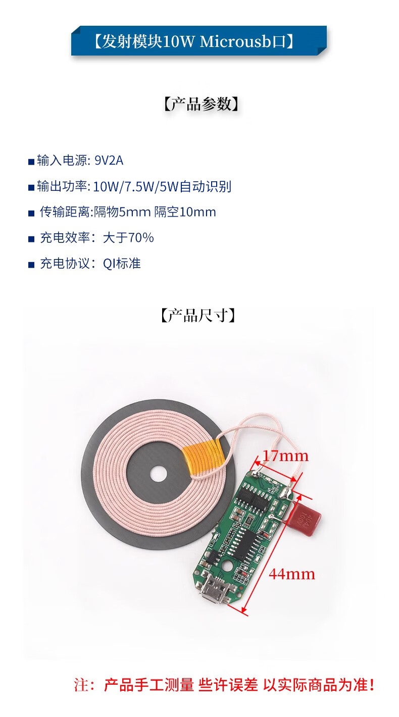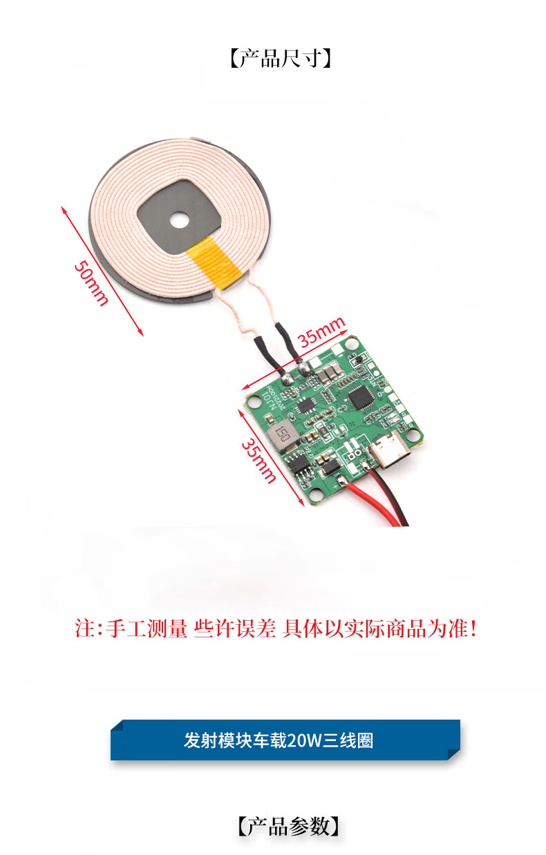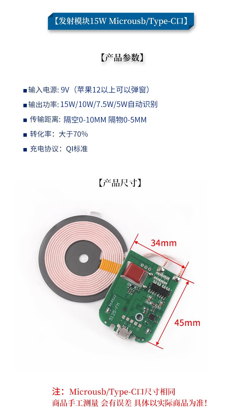 Wireless power supply charging module high power 10/15/20W transmitter and receiver mobile phone modified Android fast charge receiving module 7.5W (5V1.5A) comes with magnetic isolation sheet
