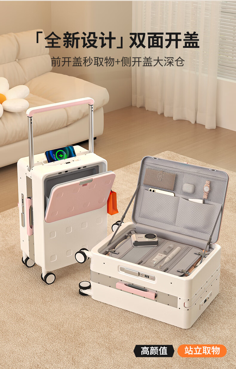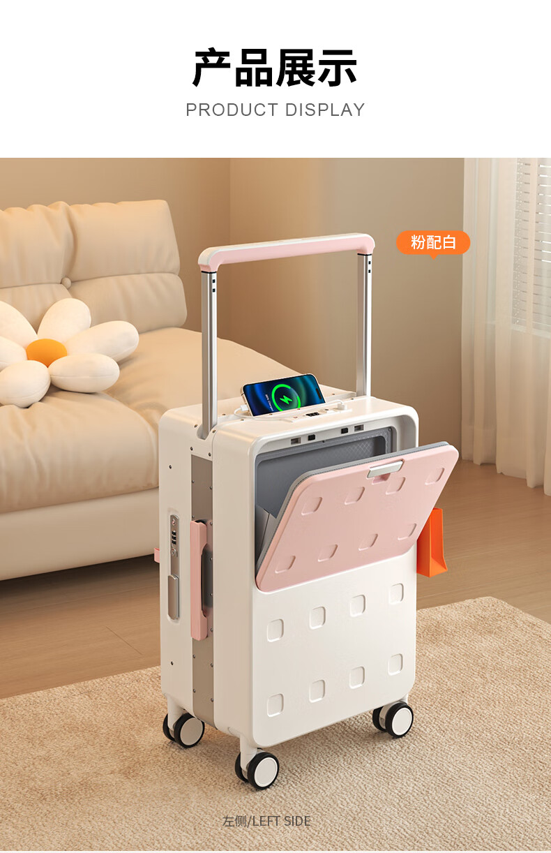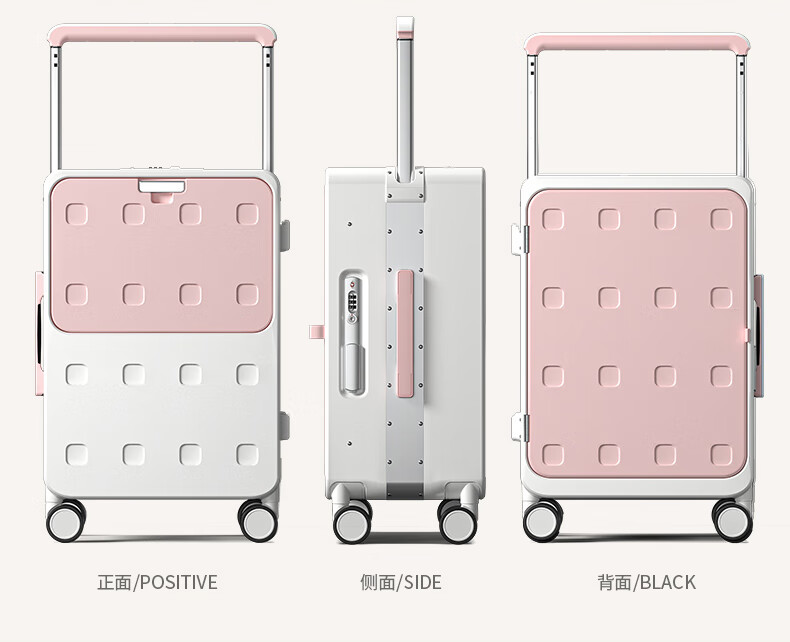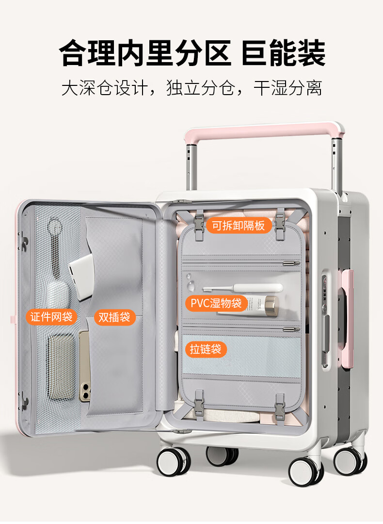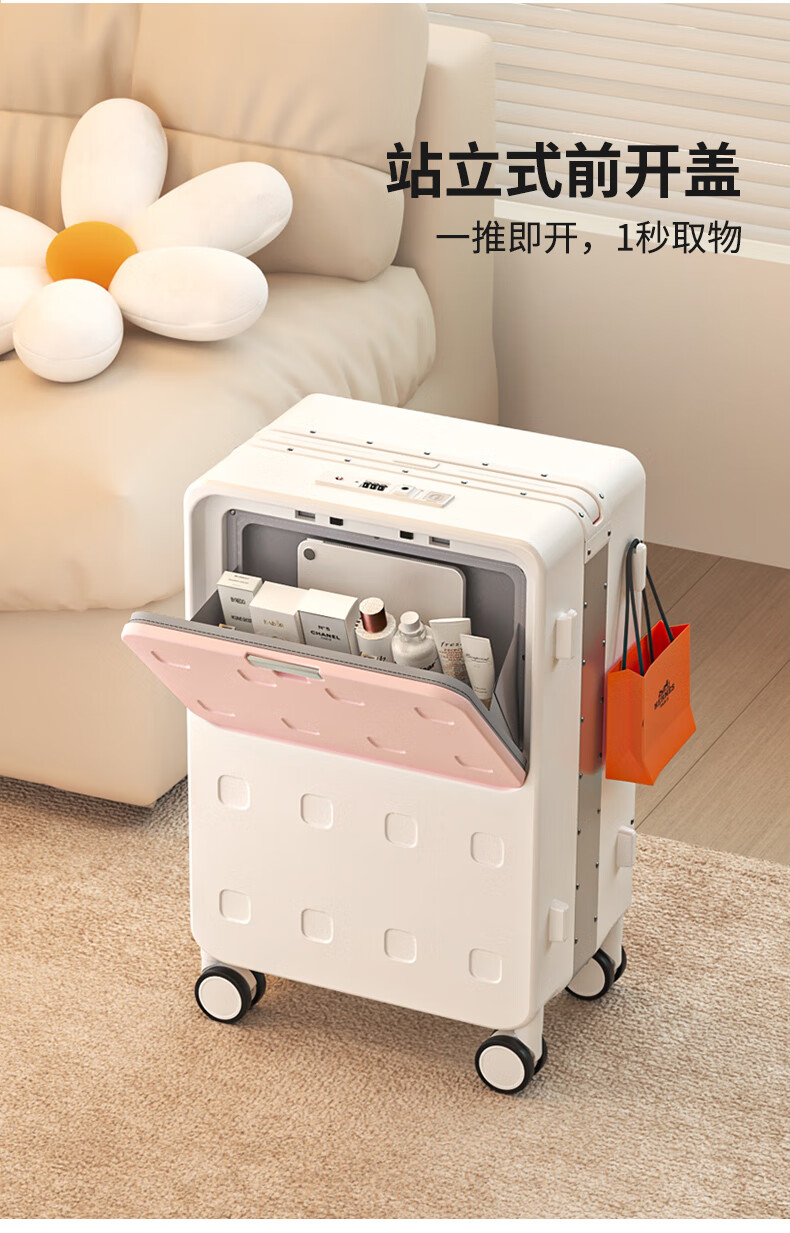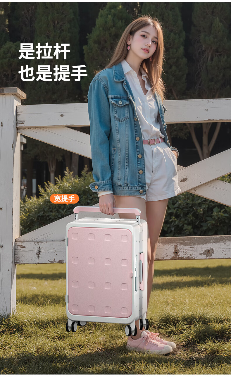 Miyo suitcase women's front side open lid 2026 new suitcase wide pull rod small boardable business password suitcase for men Qin pink white pure PC strong aluminum frame - high appearance and high quality 20 inches boardable AB side double opening lid + center wide pull rod