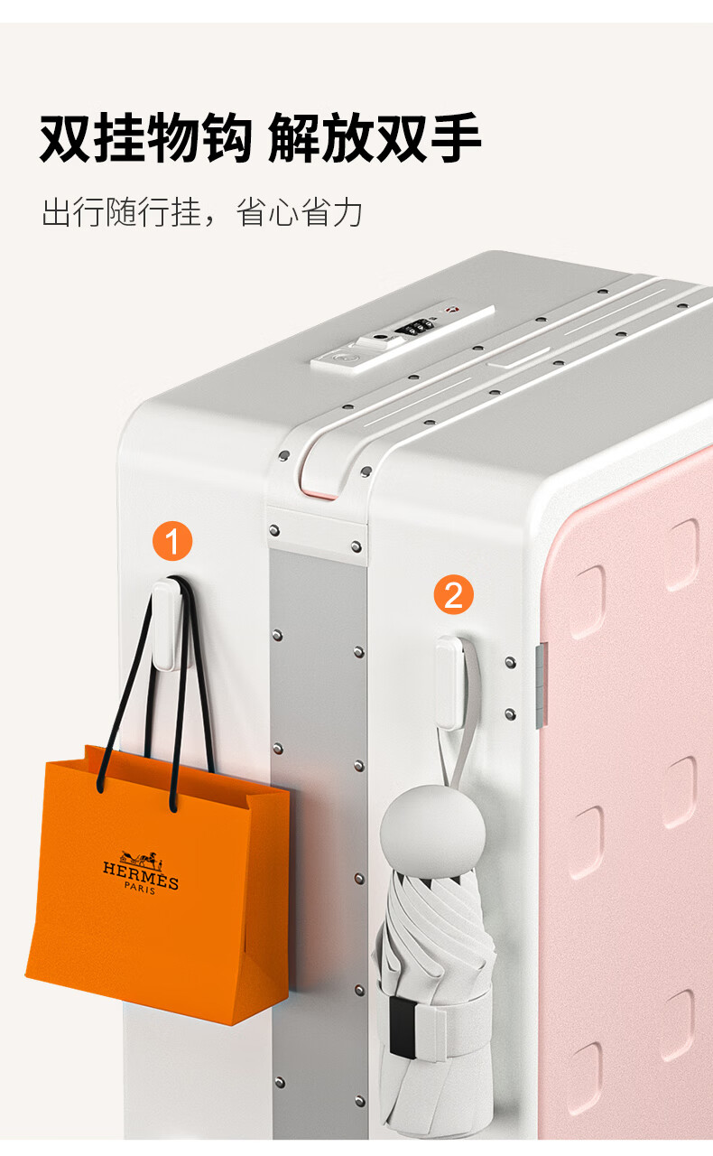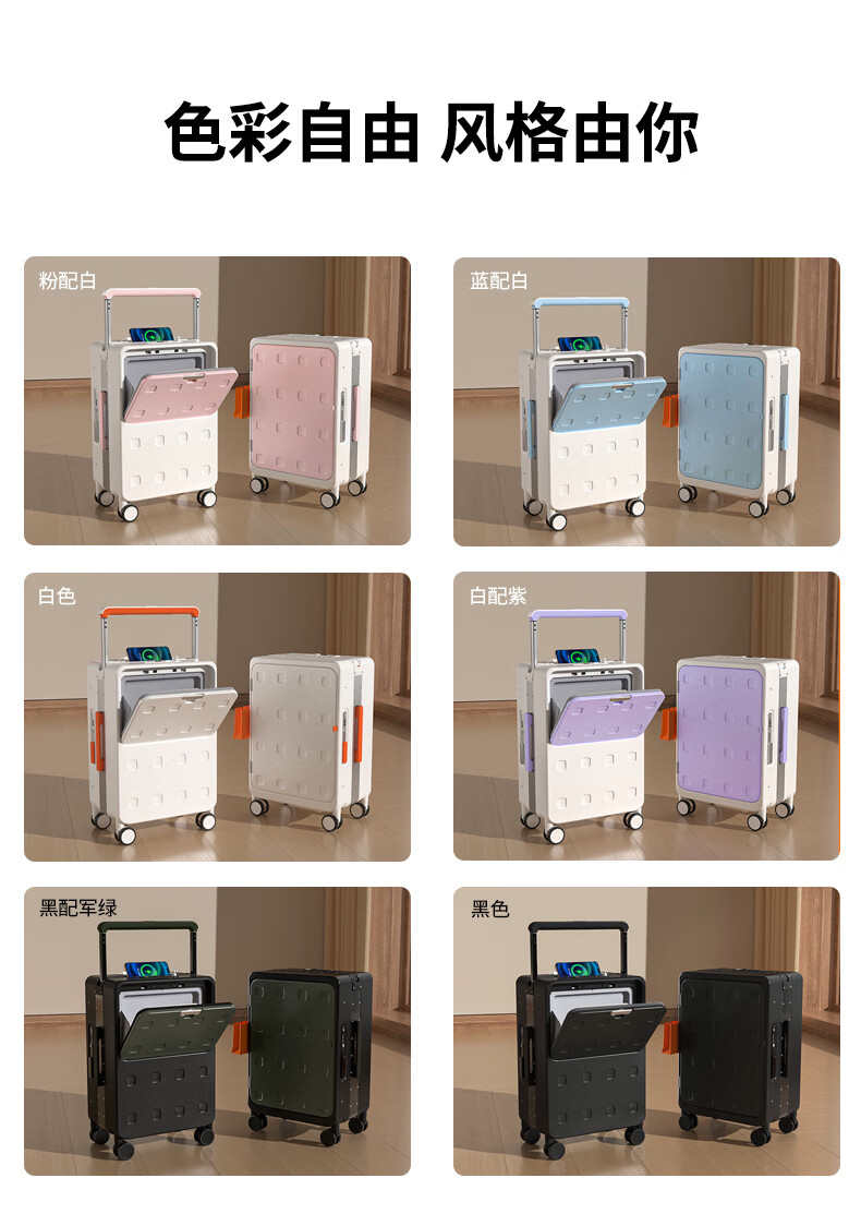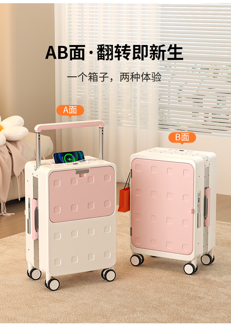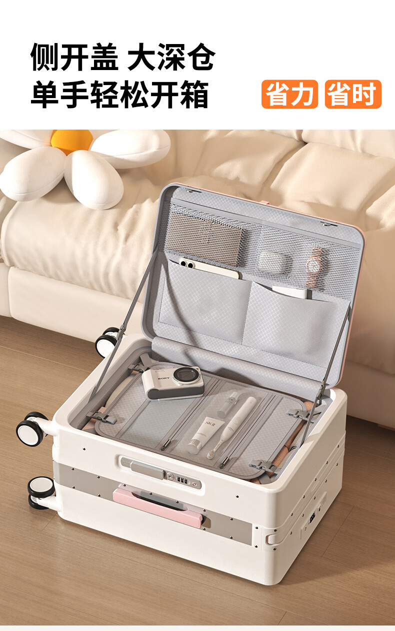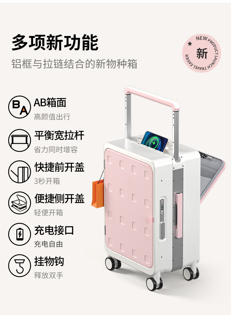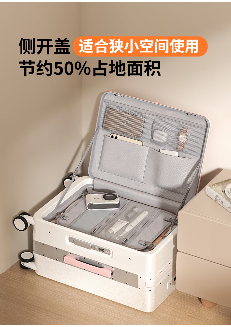Miyo suitcase women's front side open lid 2026 new suitcase wide pull rod small boardable business password suitcase for men Qin pink white pure PC strong aluminum frame - high appearance and high quality 20 inches boardable AB side double opening lid + center wide pull rod