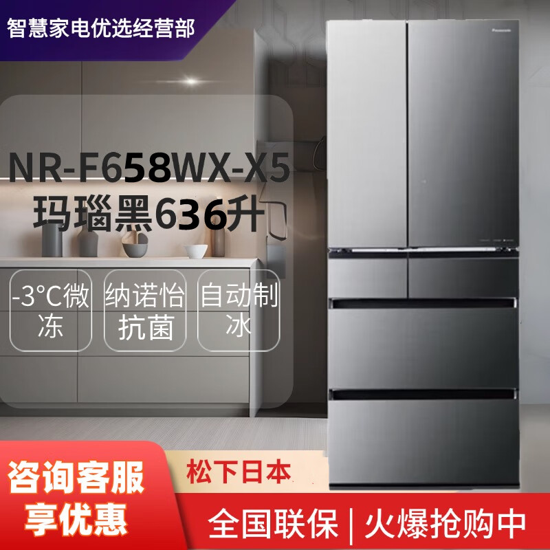 Panasonic NR-F658WX-X5 original Japanese imported refrigerator 636L air-cooled frost-free automatic ice making Nanoyi sterilization S5 NR-F658WX-X5 agate black (mirror)