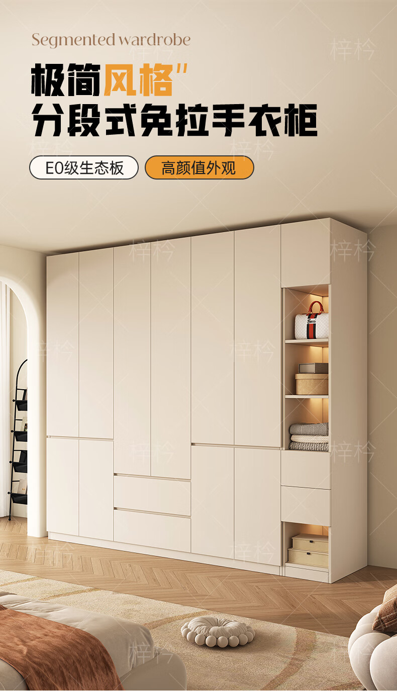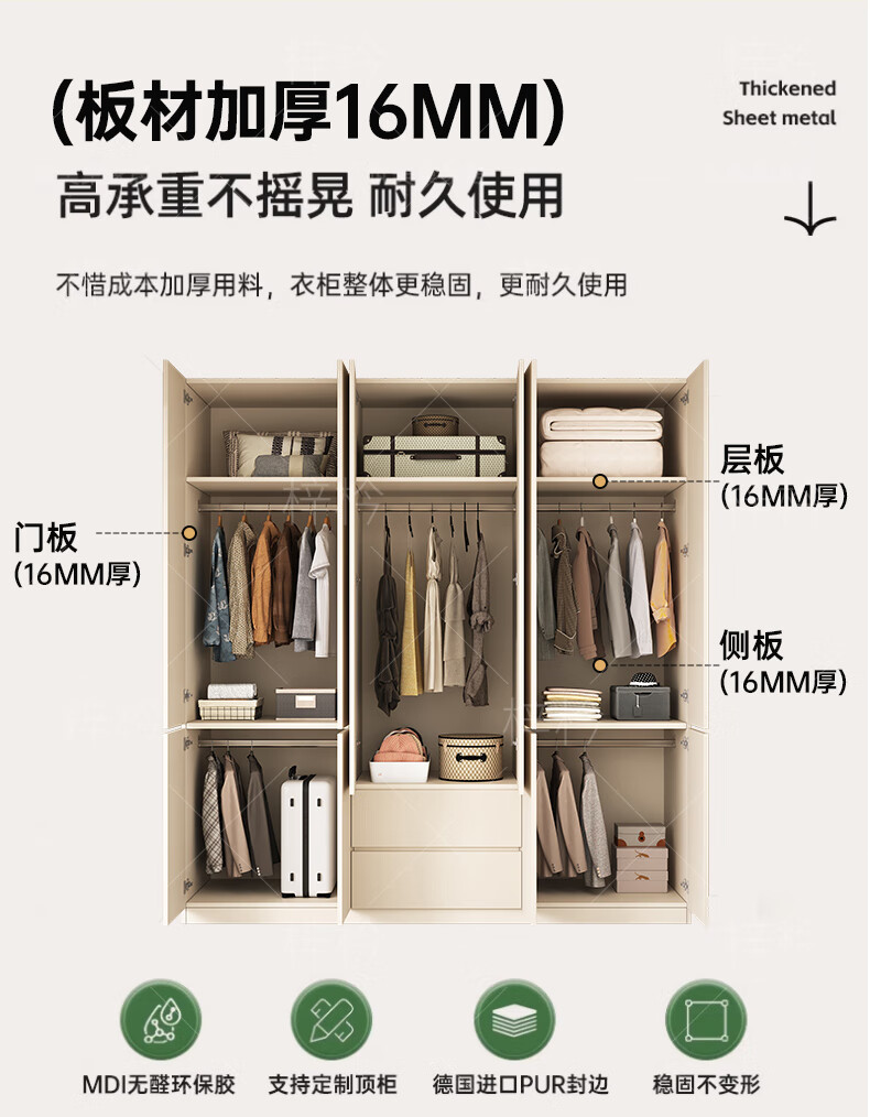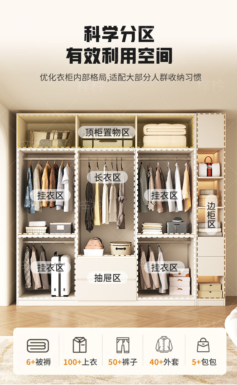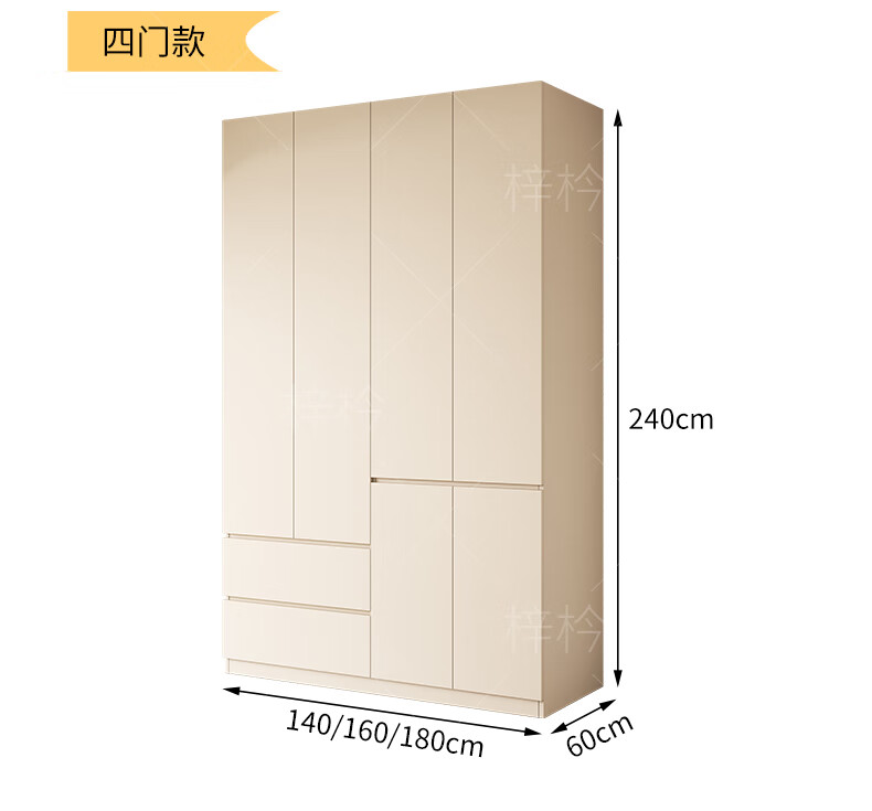 Zi Cong package installation solid wood wardrobe customizable bedroom wardrobe light luxury cream style storage wardrobe new storage four door 1.6 meter wardrobe (recommended by the store manager)