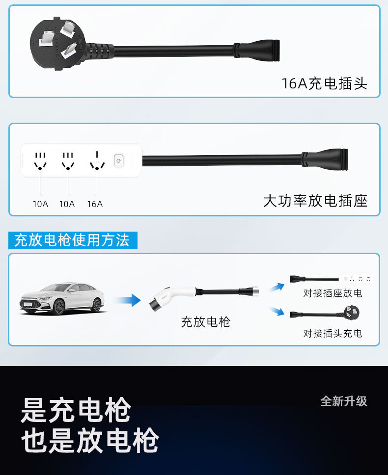 Jingbao Dianguang Auto Aian UT integrated charging and discharging car charger household convenient 220v ground wire-free charging and discharging gun 3.5kw household socket charging and discharging 20 meters line