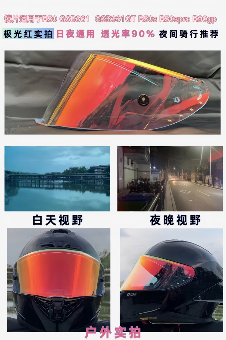 GSB is only suitable for gsb361 lenses/GSBGT helmets for day and night use. Aurora subsidiary factory lenses gsb361gt lenses. Aurora red (dual use for day and night) GSB361