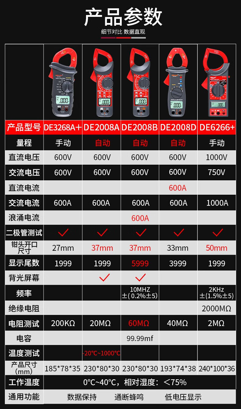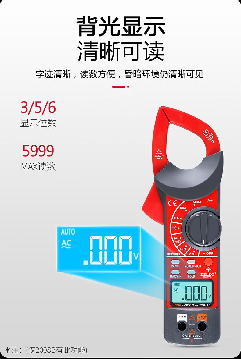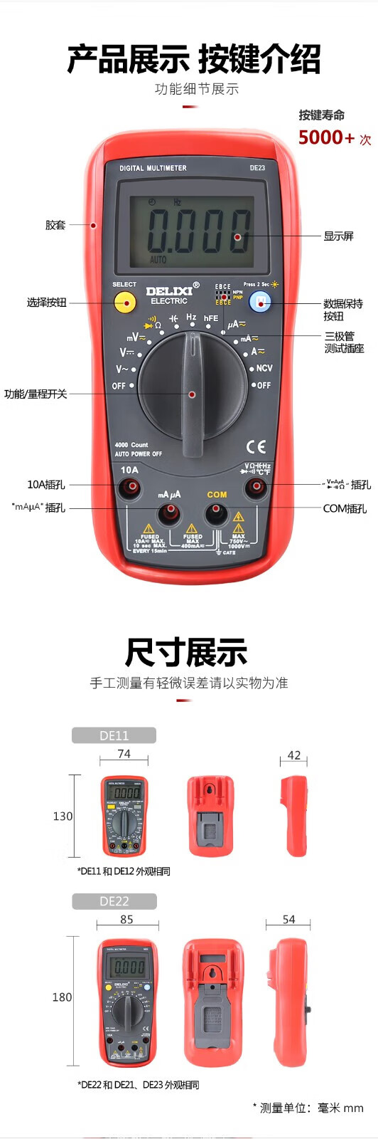 DELIXI ELECTRIC multimeter digital anti-burn backlit digital display high-precision smart ammeter clamp meter DE11 battery small meter (meter bag + fuse)