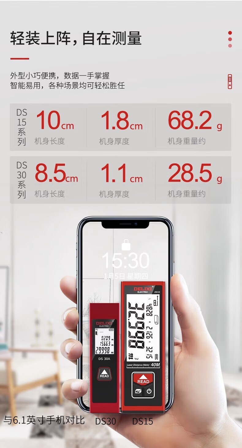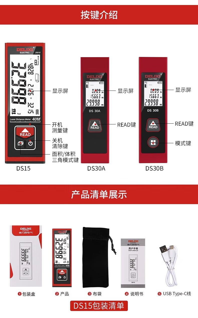 DELIXI ELECTRIC Pen Laser Distance Meter Mini Handheld Portable High-Precision Precision Distance Measurer DS30A Pen Distance Meter 30 Meters