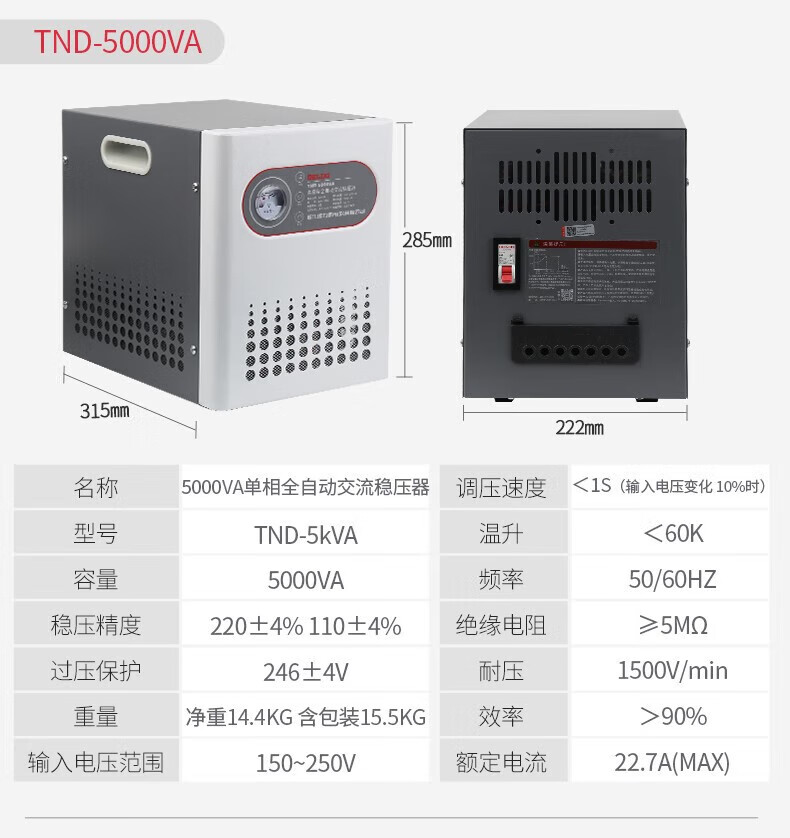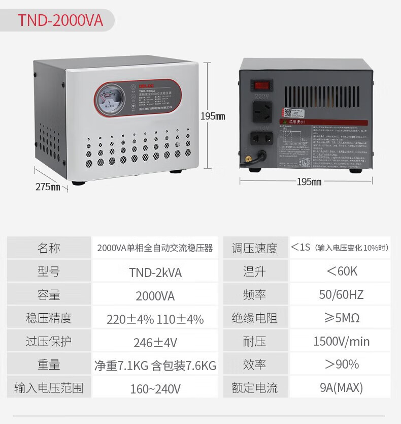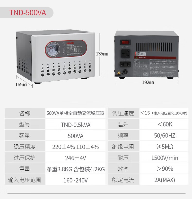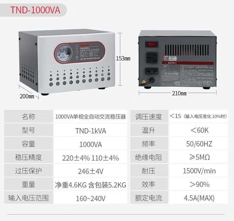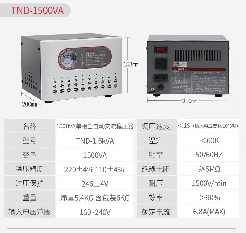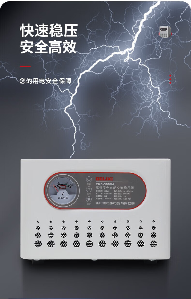 DELIXI ELECTRIC voltage regulator TND computer TV refrigerator air conditioner household 220V single-phase fully automatic regulated power supply 1KW (1000VA)