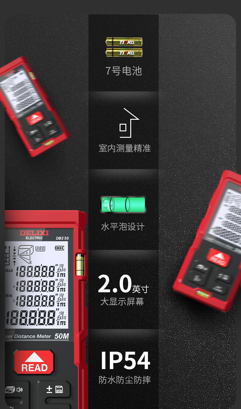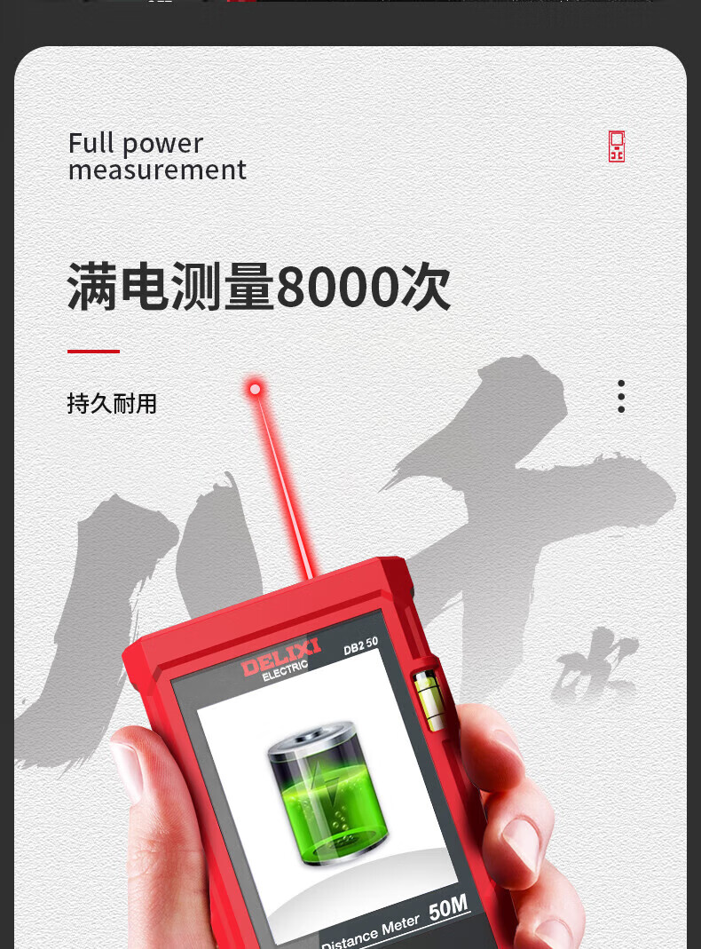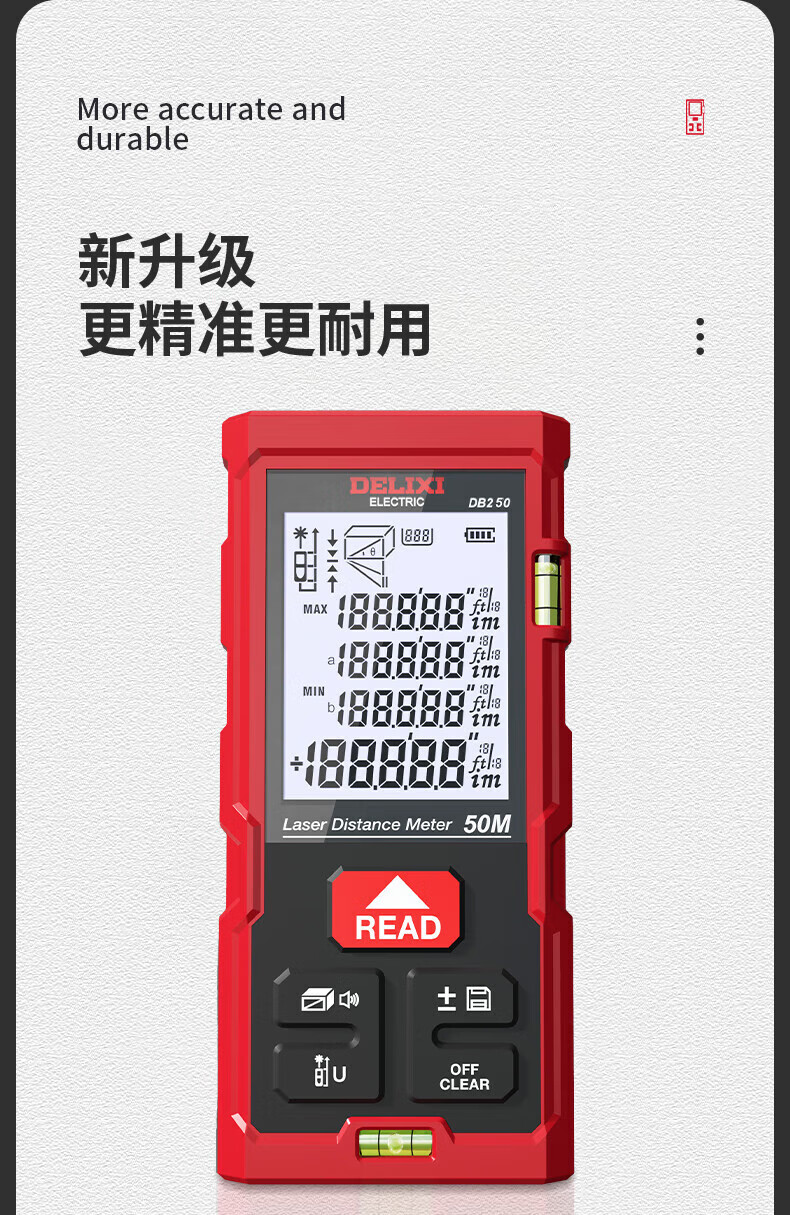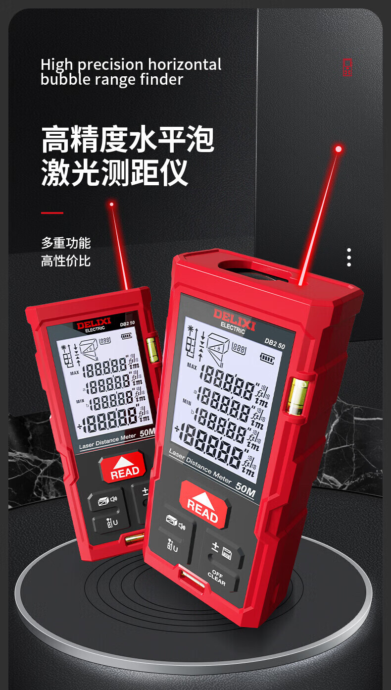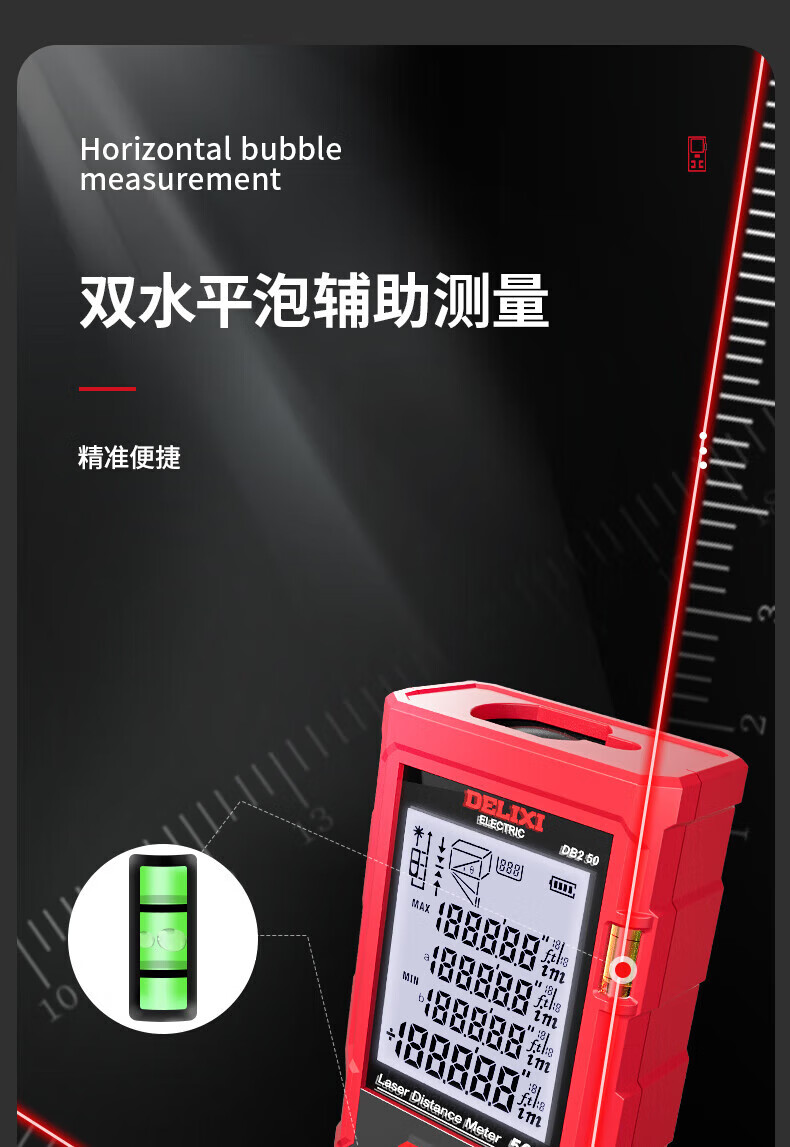 DELIXI ELECTRIC Laser Double Level Bubble Handheld Battery Measuring Room Electronic Ruler Upgraded Distance Measurement Upgraded Double Level Bubble 50 Meters Battery Model