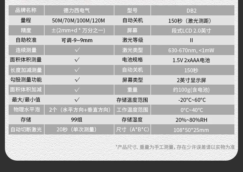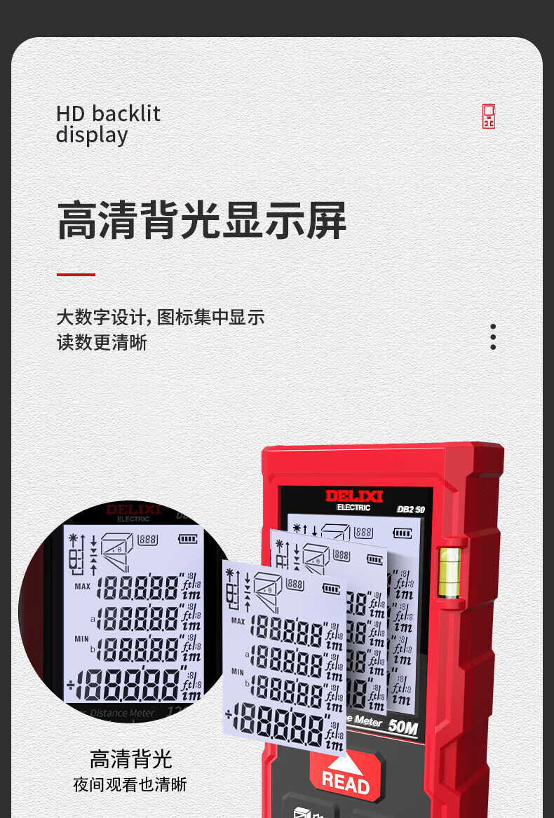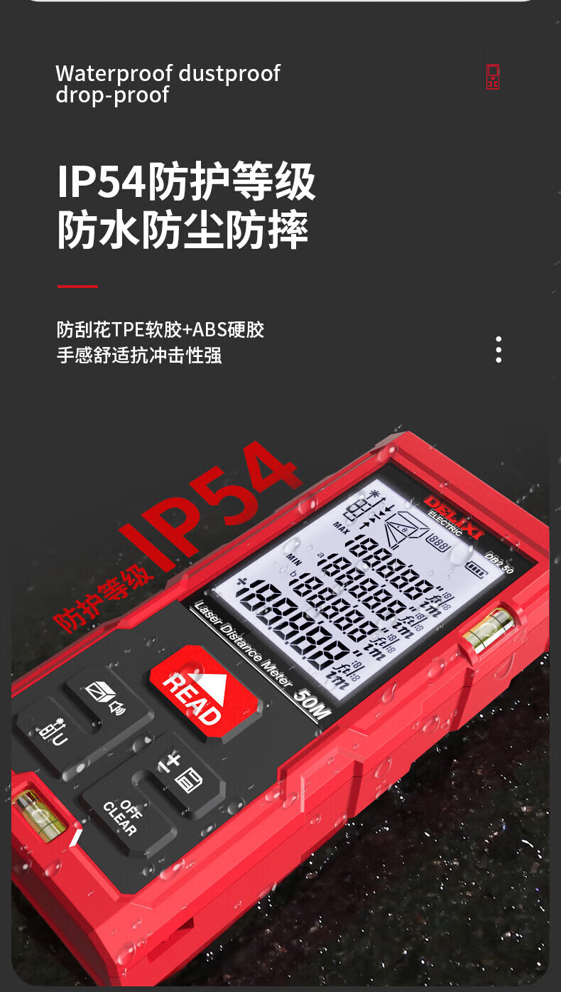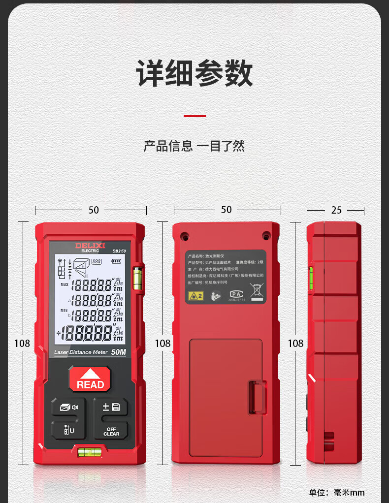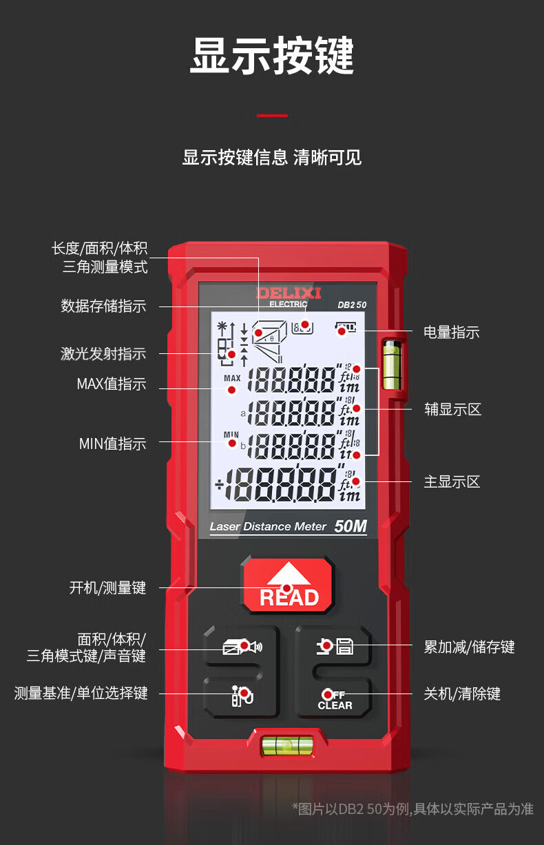 DELIXI ELECTRIC Laser Double Level Bubble Handheld Battery Measuring Room Electronic Ruler Upgraded Distance Measurement Upgraded Double Level Bubble 50 Meters Battery Model