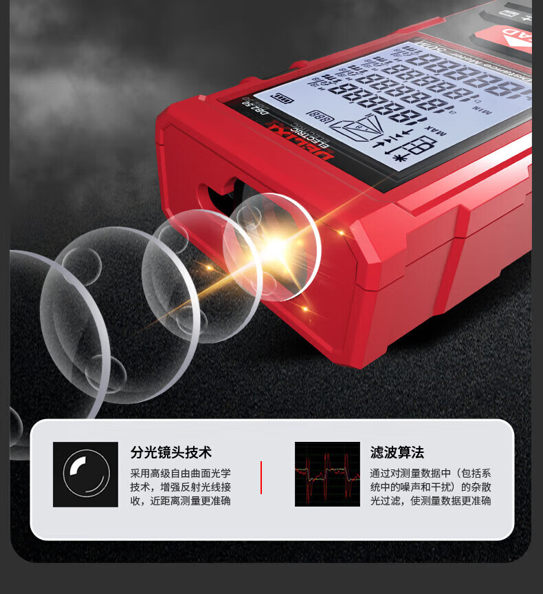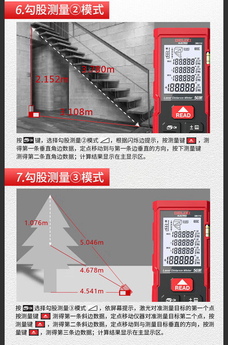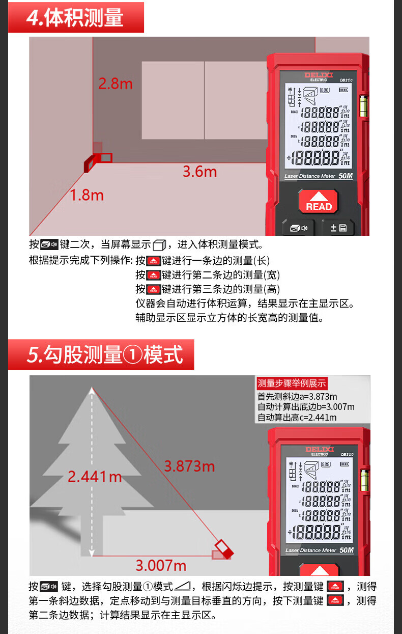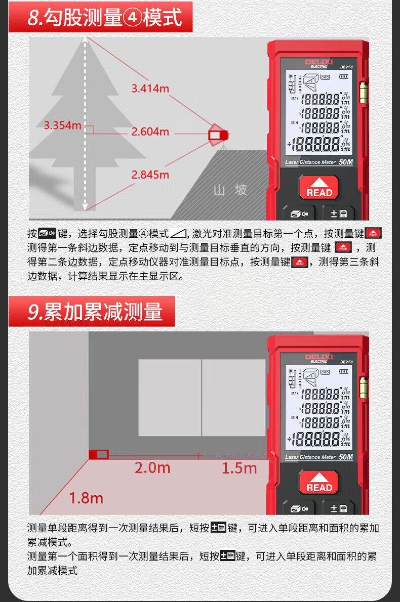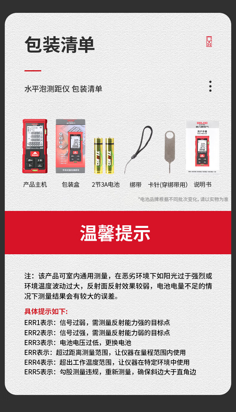 DELIXI ELECTRIC Laser Double Level Bubble Handheld Battery Measuring Room Electronic Ruler Upgraded Distance Measurement Upgraded Double Level Bubble 50 Meters Battery Model