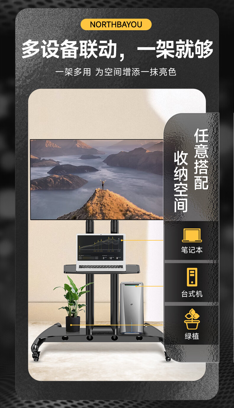 NB(ERGONOMIC) NB AVA1500-60-1P 32-75-inch TV stand floor-standing mobile TV stand conference all-in-one mobile cart universal TV mobile hanger cart 32-75 inches/without camera bracket