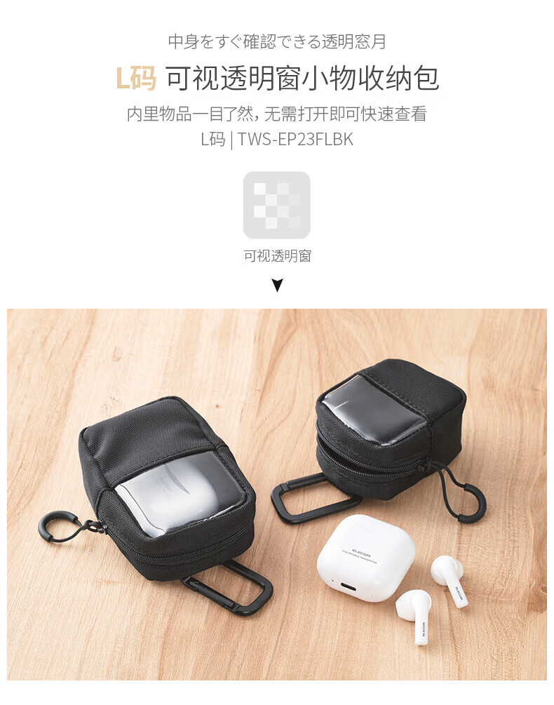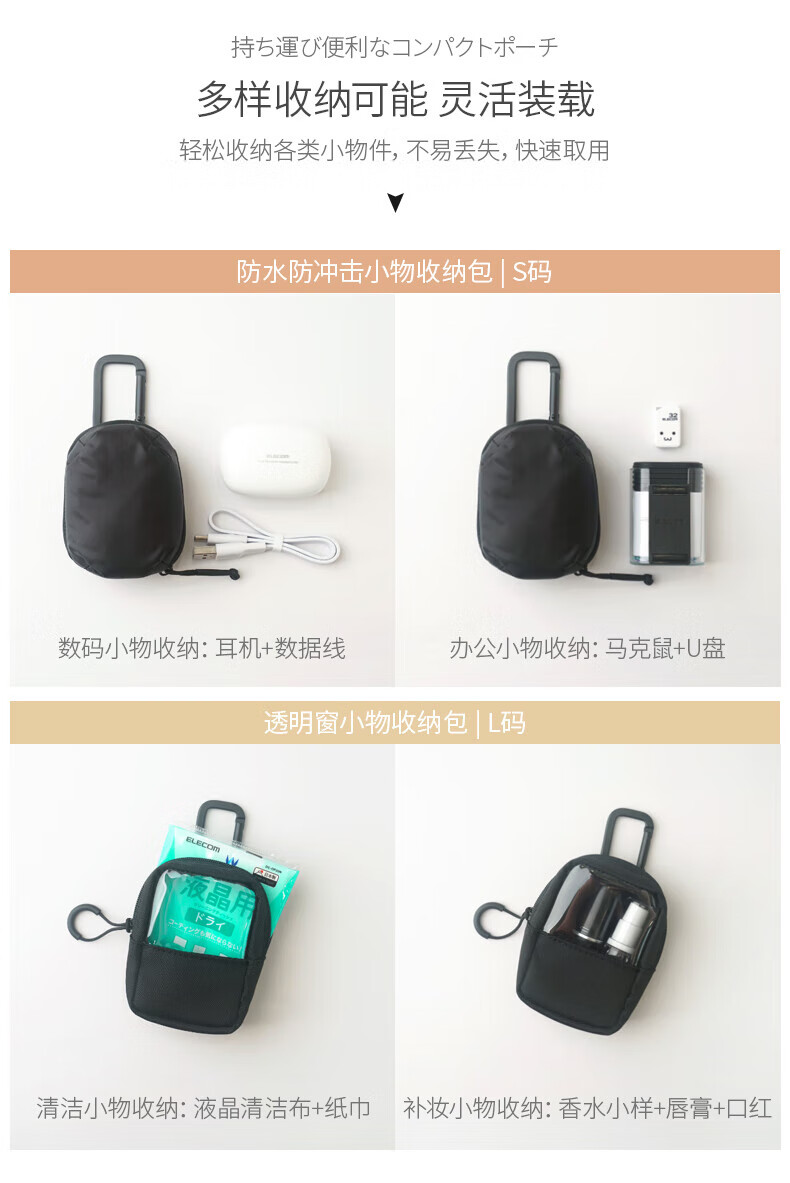 ELECOM school bag pendant decoration coin purse small storage bag key bag headphone bag data cable portable small bag pain bag baby bag L size | transparent window small bag