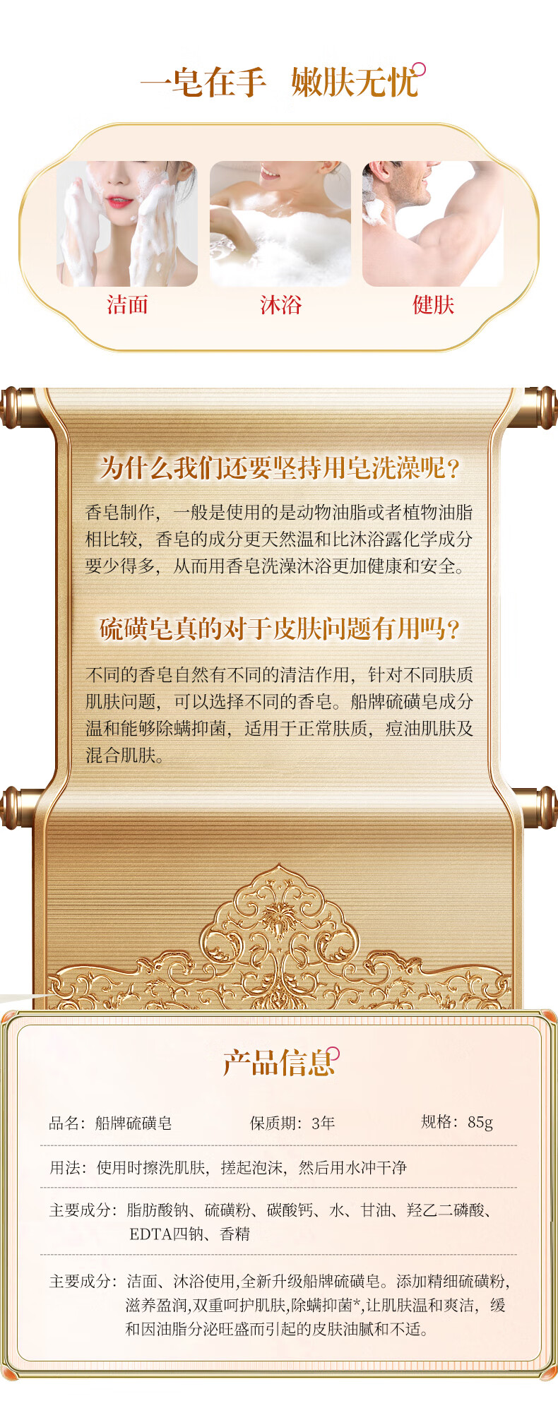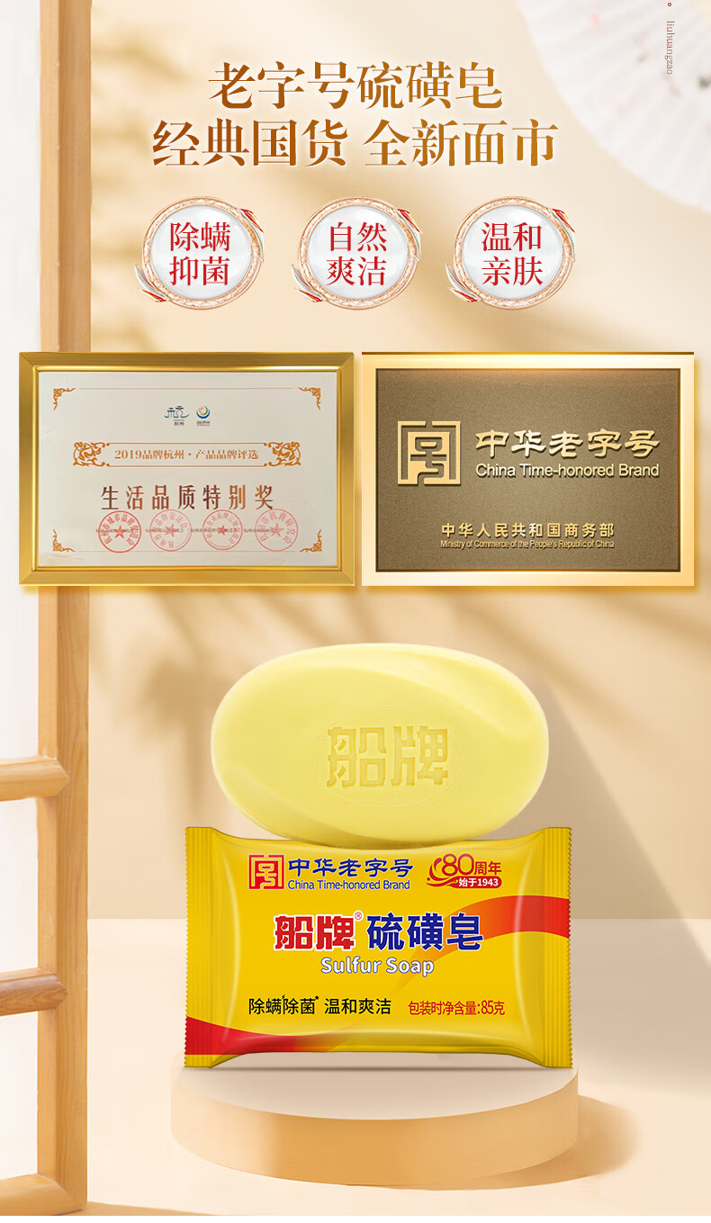 Ship brand sulfur soap, anti-mite and anti-bacterial bath soap, face wash, hand soap, bath bath cleaning soap, 85g 85g*5 pieces