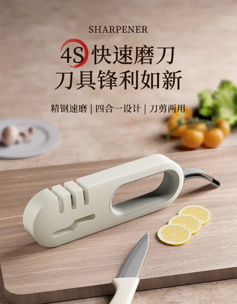 Home KATEI STORY Japanese whetstone sharpener household multi-functional quick sharpening tool kitchen scissors and kitchen knife artifact white gray dual-purpose knife and scissors without damaging the blade