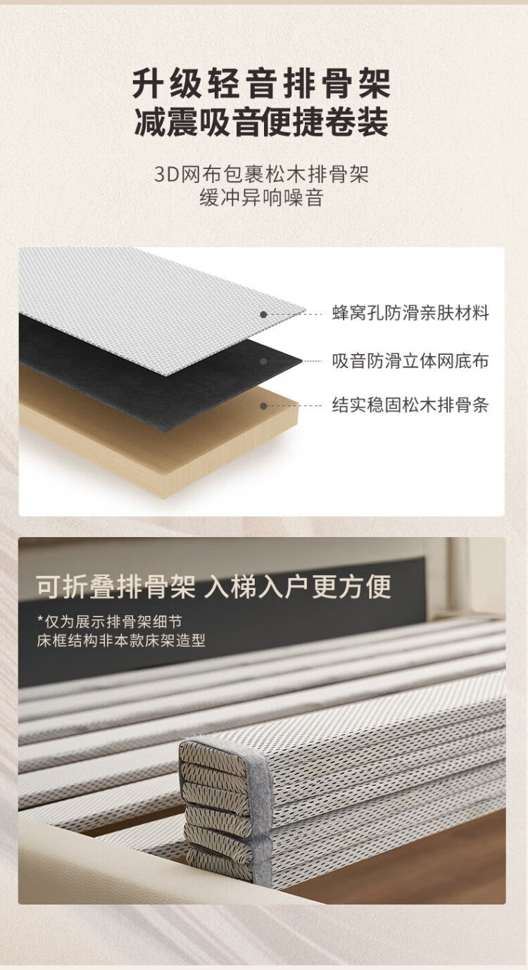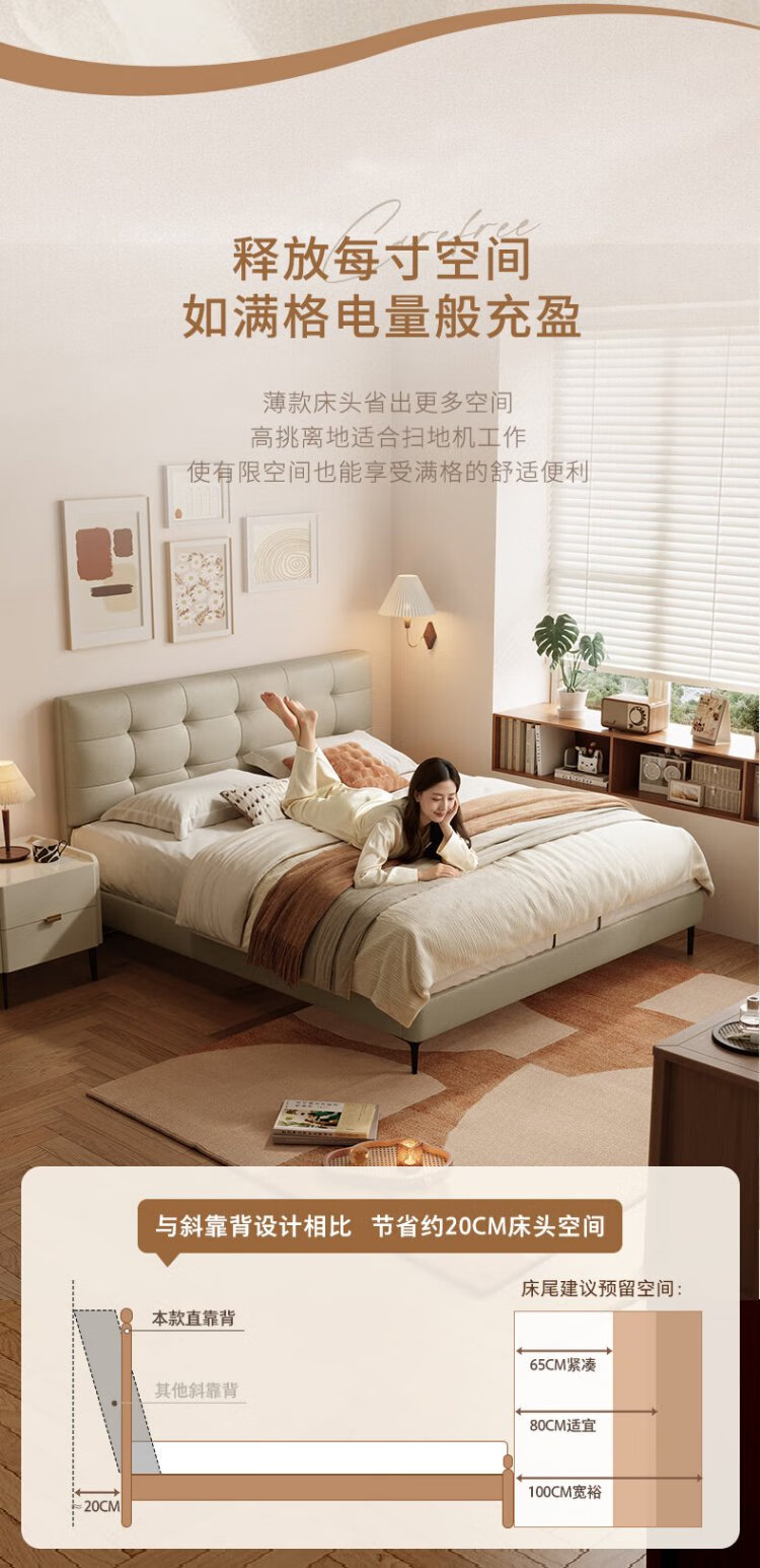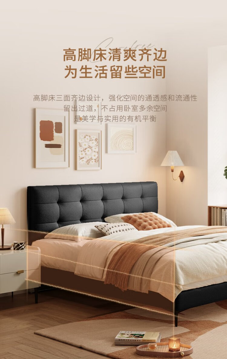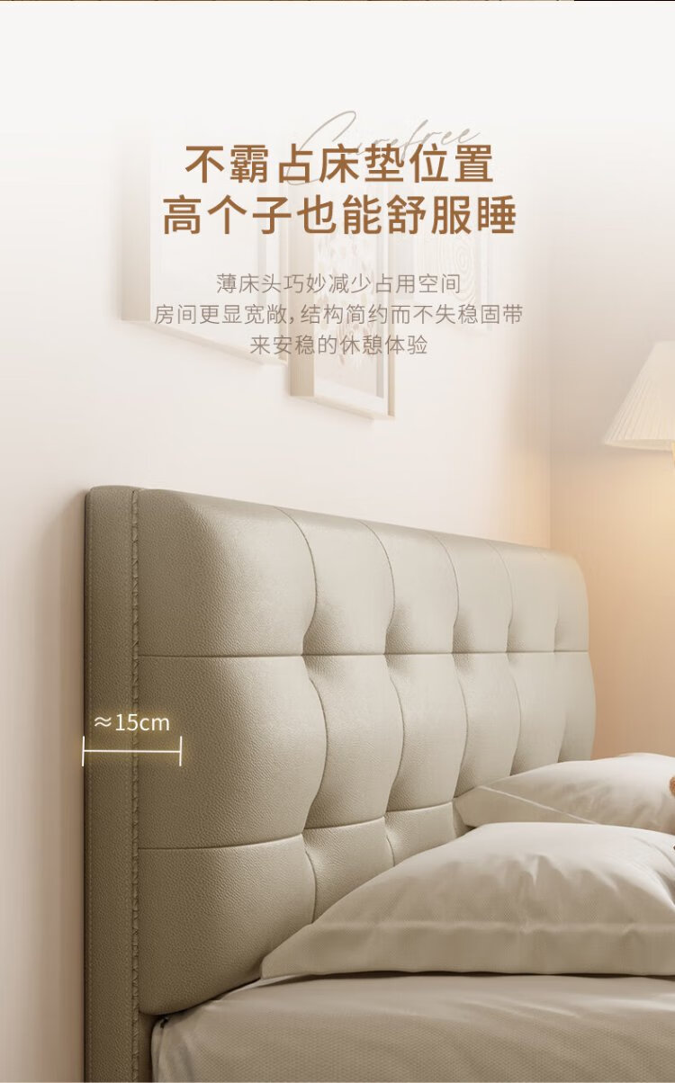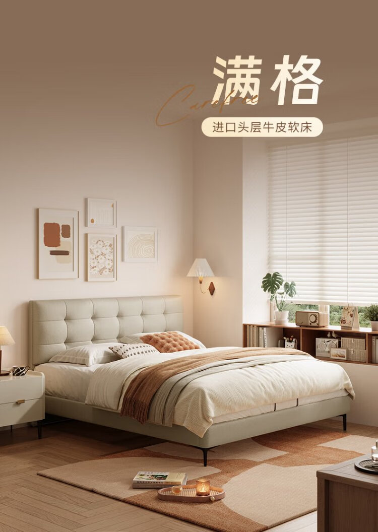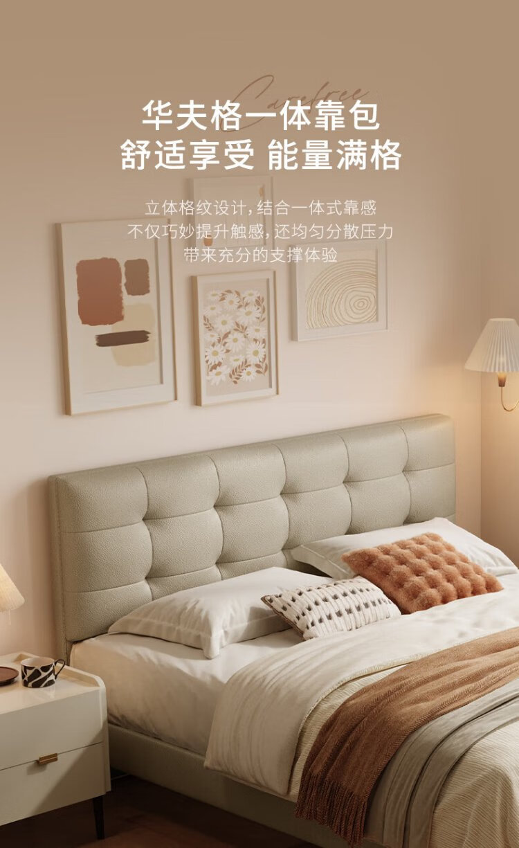 Gujia Home Furnishing Small Size Waffle Series First Layer Cowhide Bed Bedroom Full Side Double Bed 8386 Haoyue White High Legs + M0099E Mattress 1500*2000