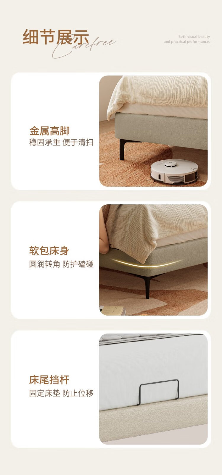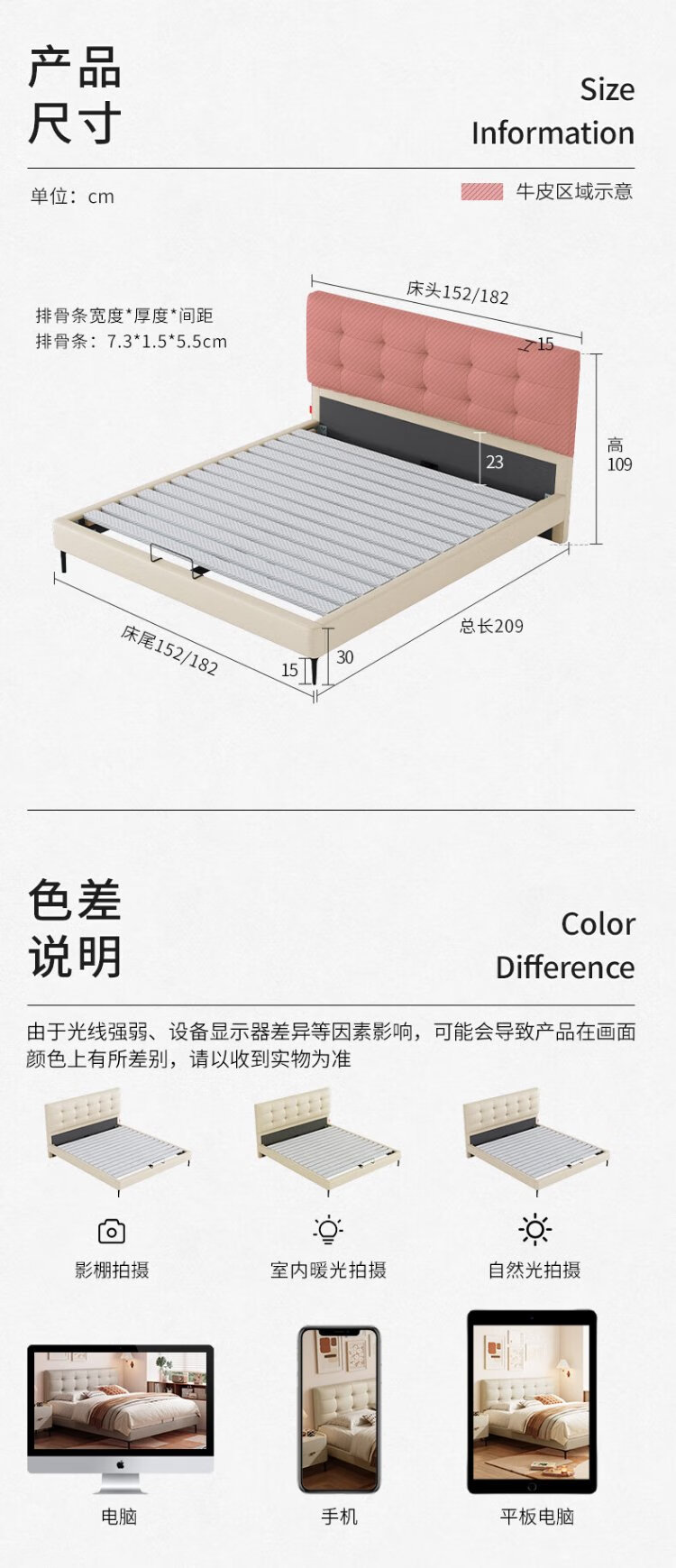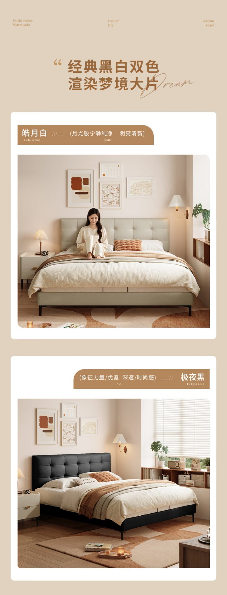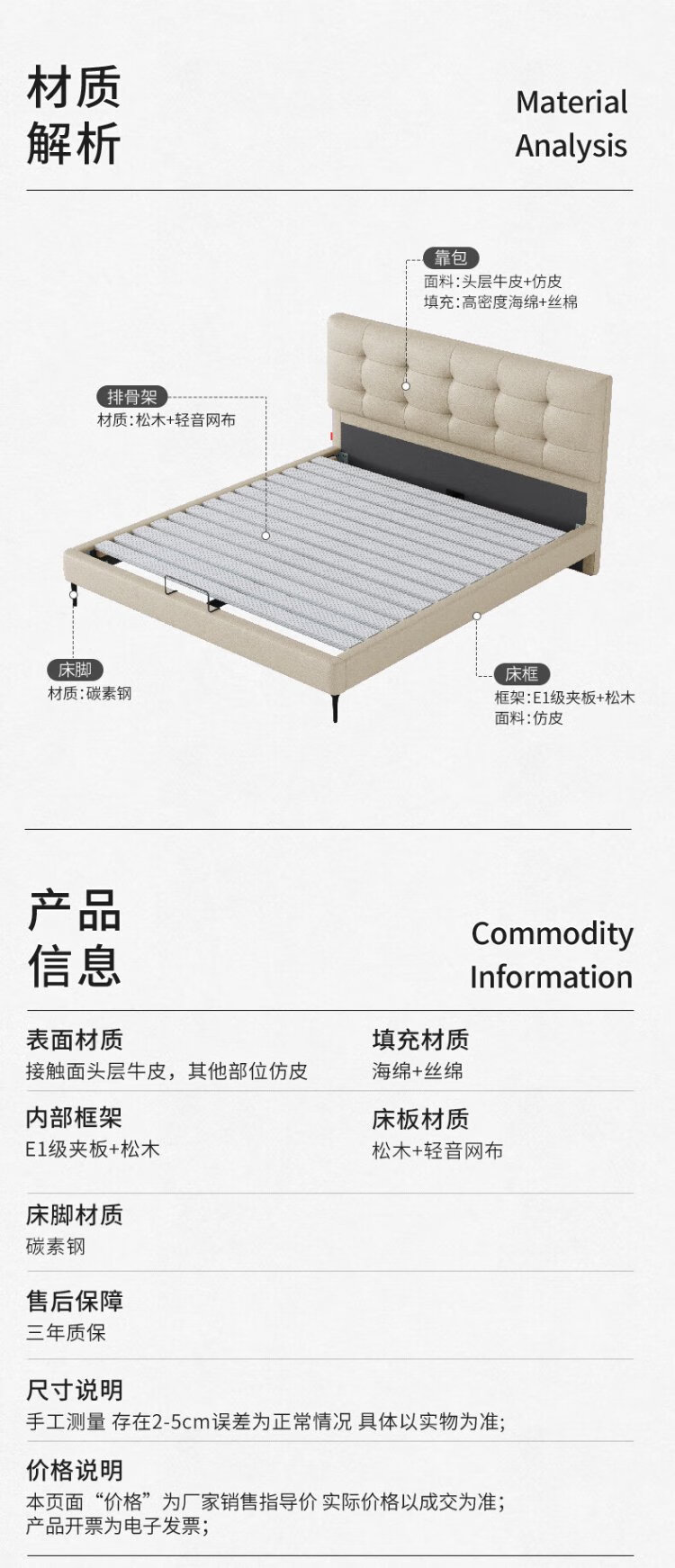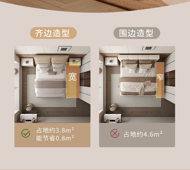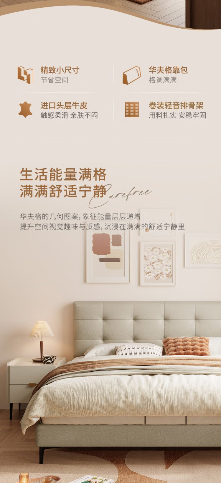 Gujia Home Furnishing Small Size Waffle Series First Layer Cowhide Bed Bedroom Full Side Double Bed 8386 Haoyue White High Legs + M0099E Mattress 1500*2000