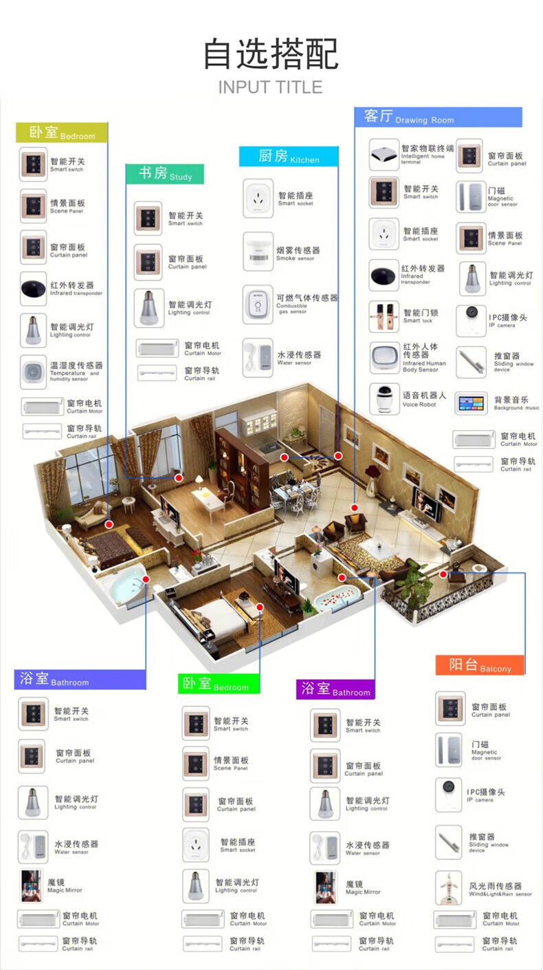 Whole house smart home control package equipment Lumi Xiaoai lighting smart curtain solution switch set four-room comfort version
