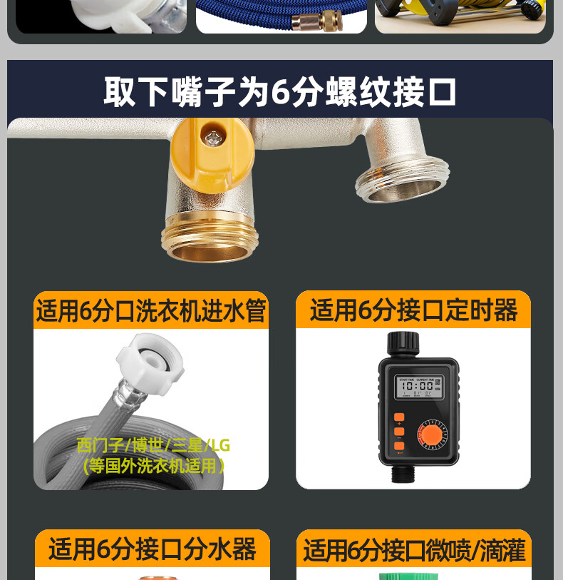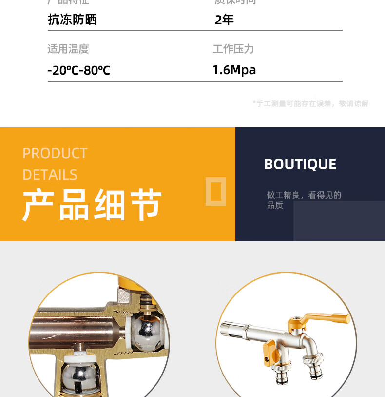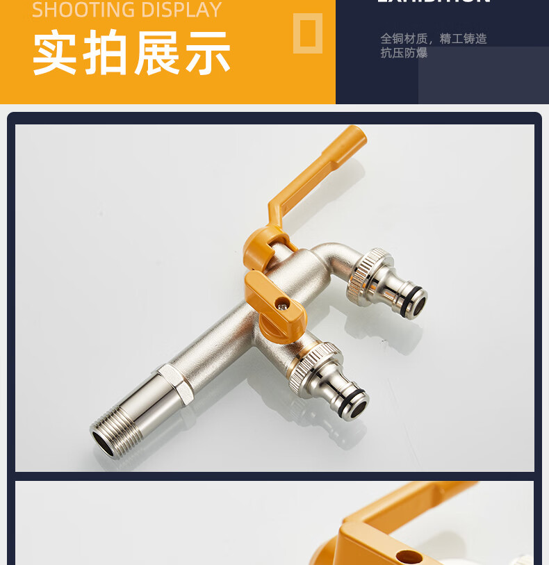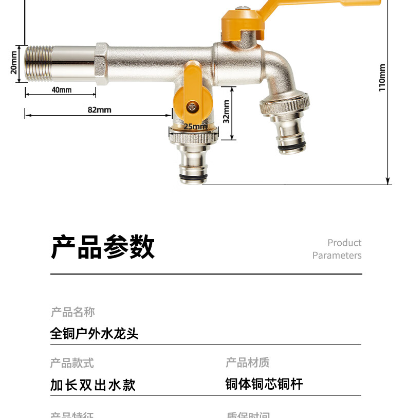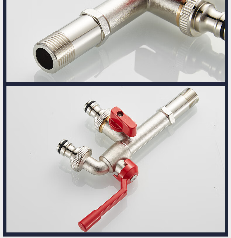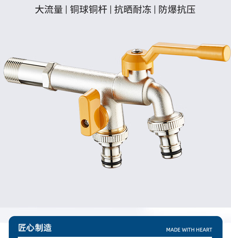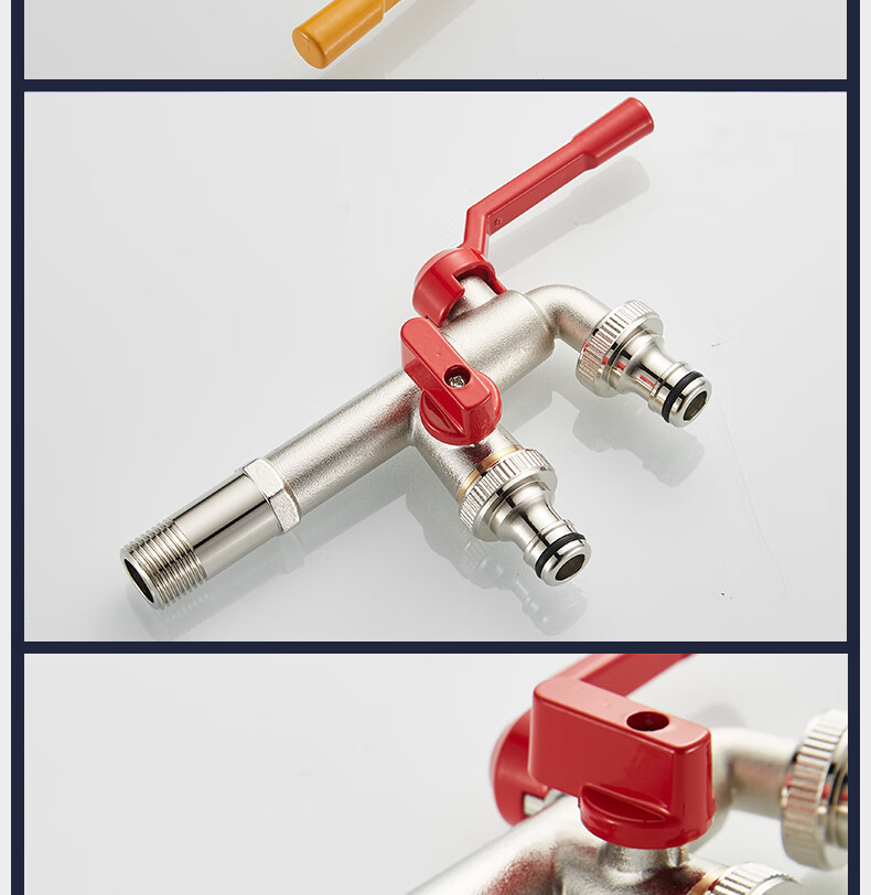 Shield's all-copper outdoor courtyard extended outdoor faucet anti-freeze crack mop pool washing machine double outlet large flow watering flowers 4-point copper natural color extended double outlet - red handle