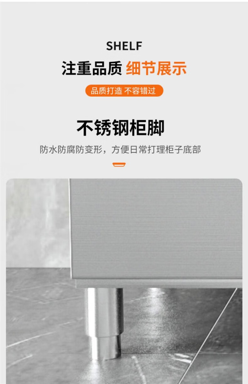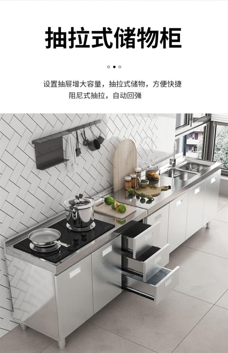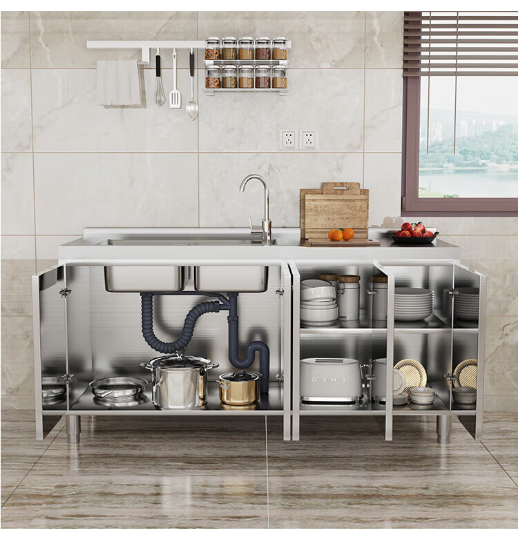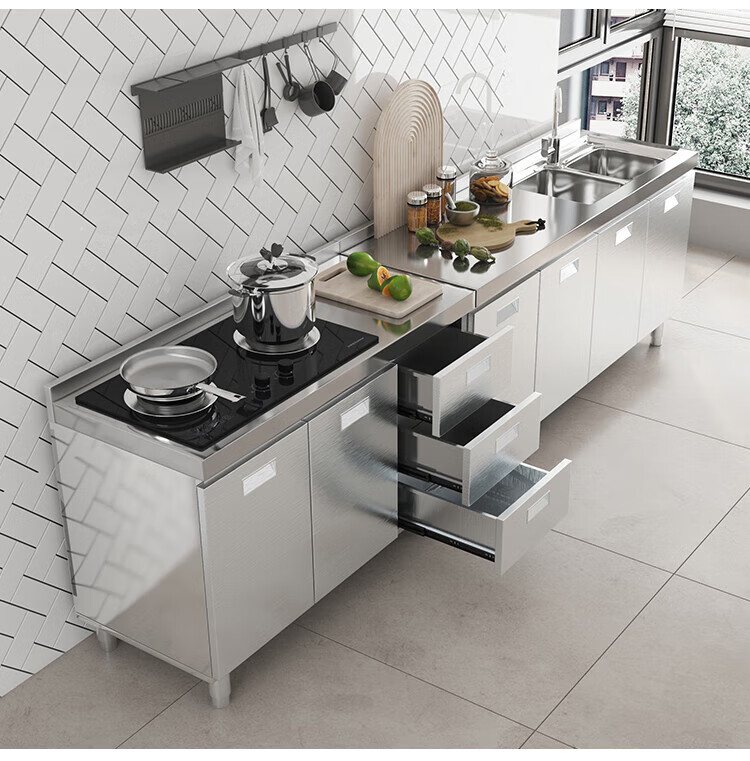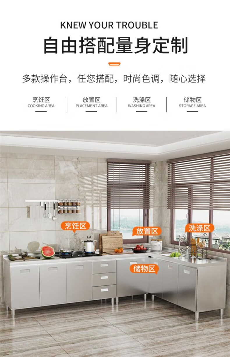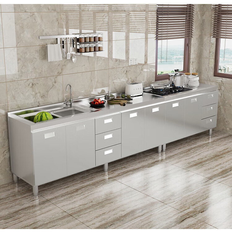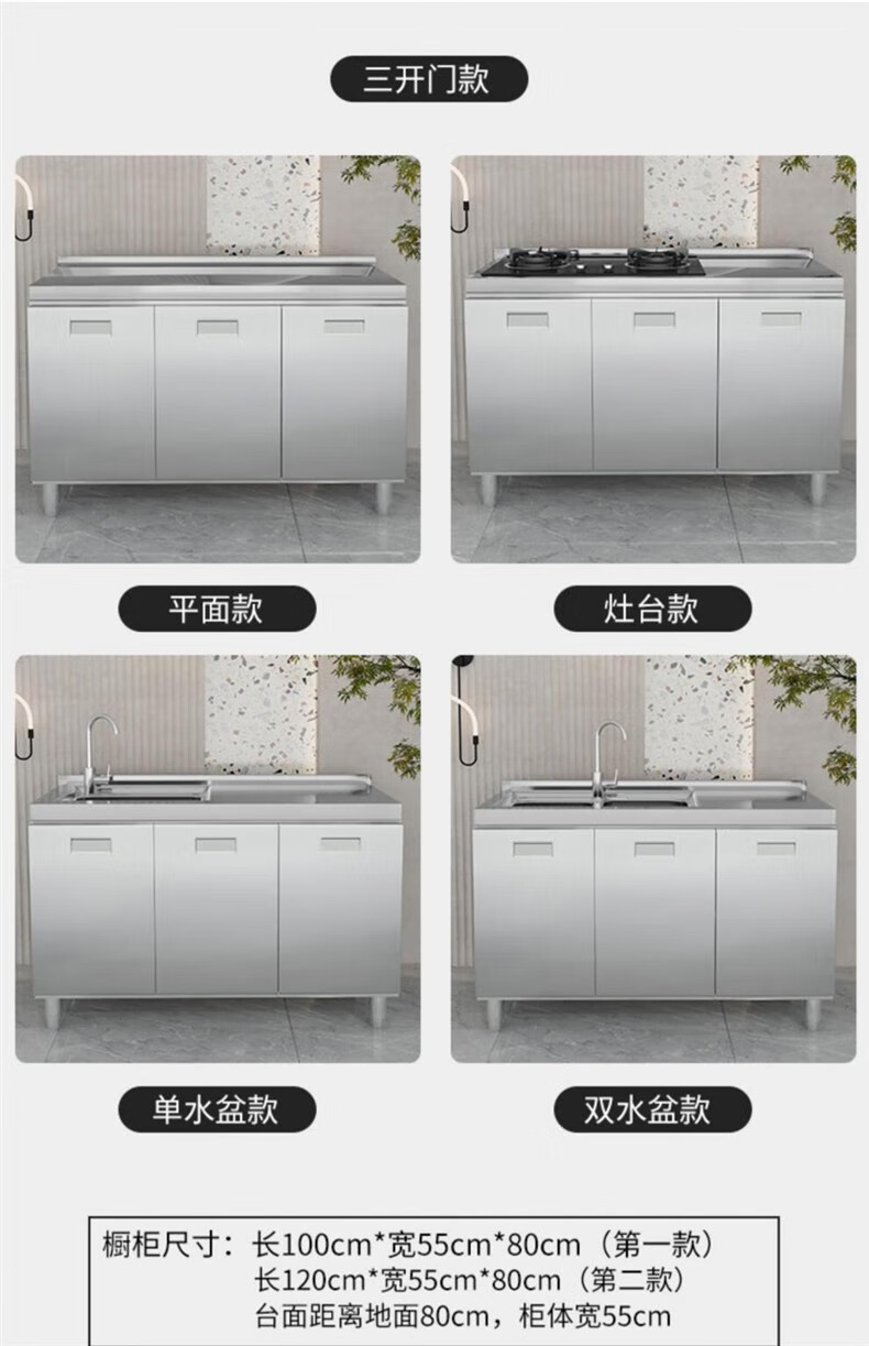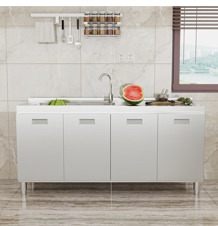 Qusuomei stainless steel integrated cabinet 304 does not need to be installed and shipped fully assembled stove cabinet sideboard kitchen kitchen cabinet home 150cm three door single basin model (remarks left and right) 201 stainless steel