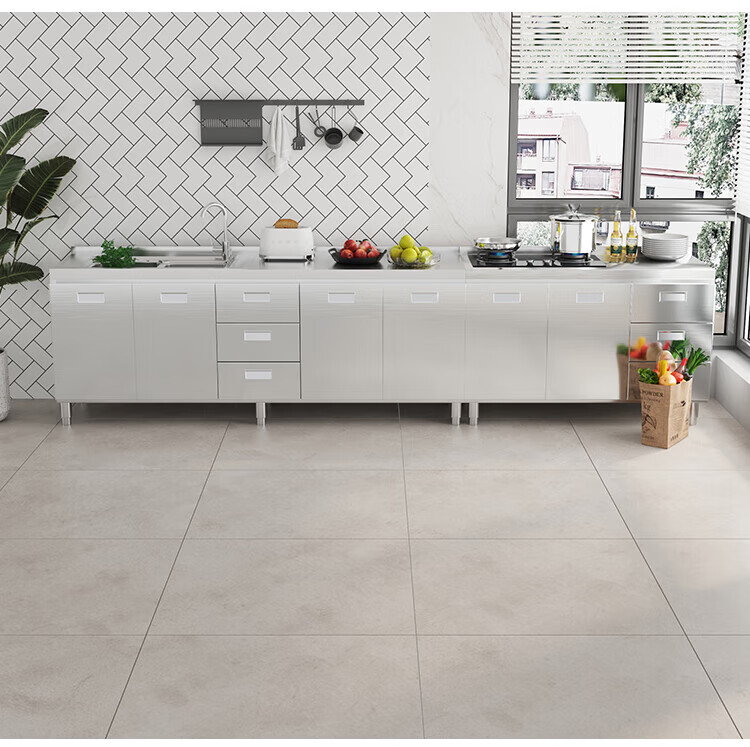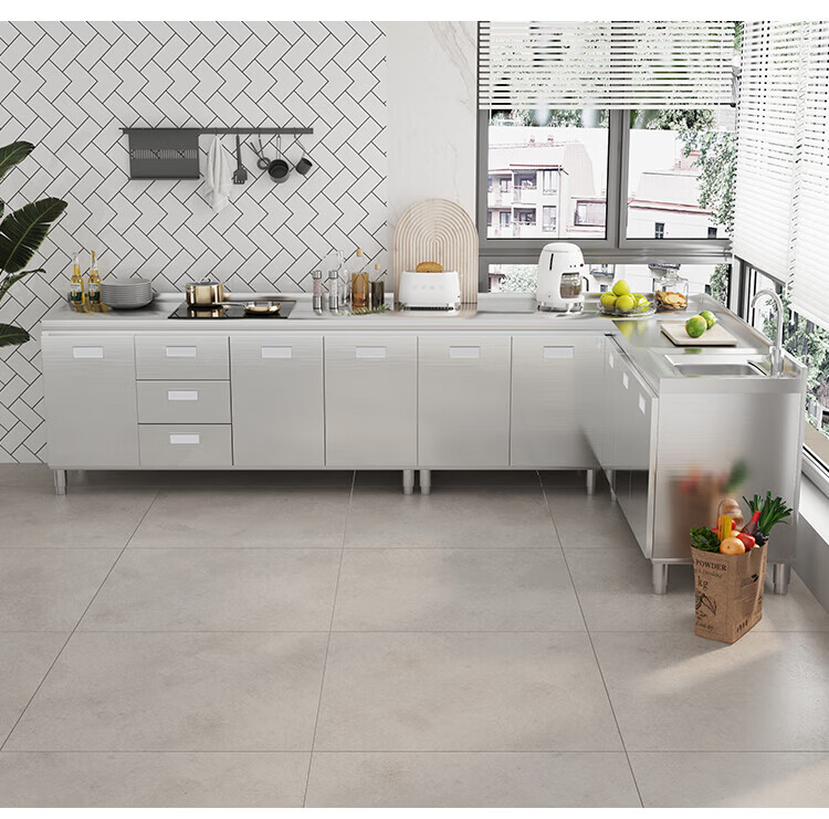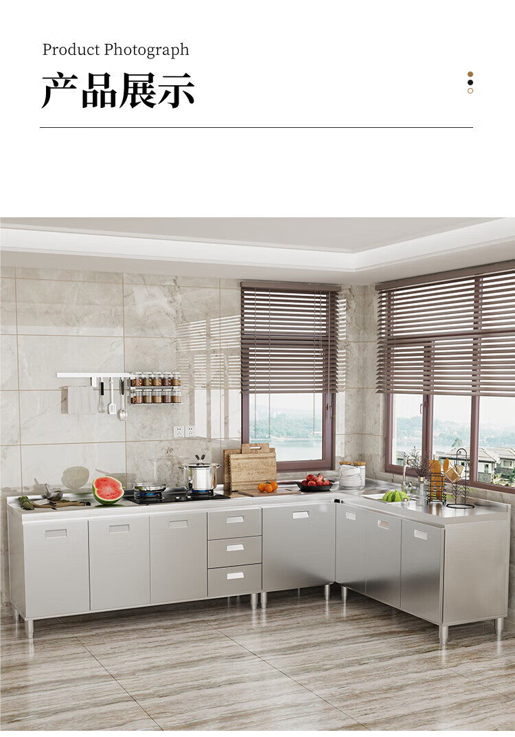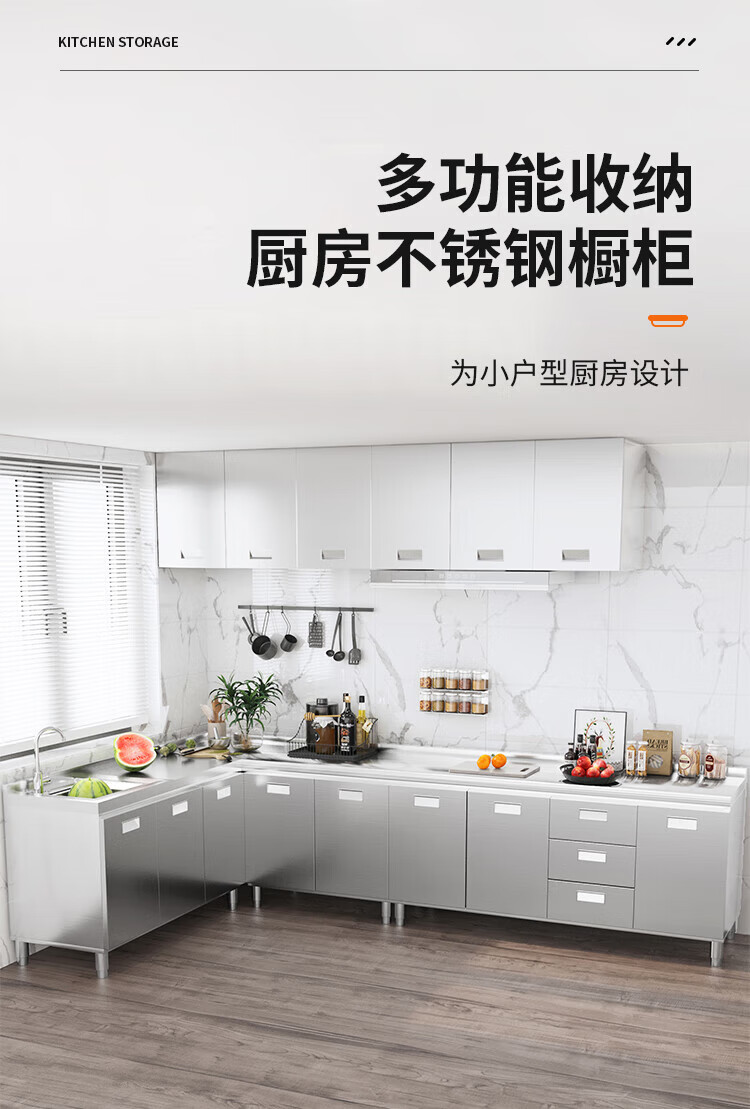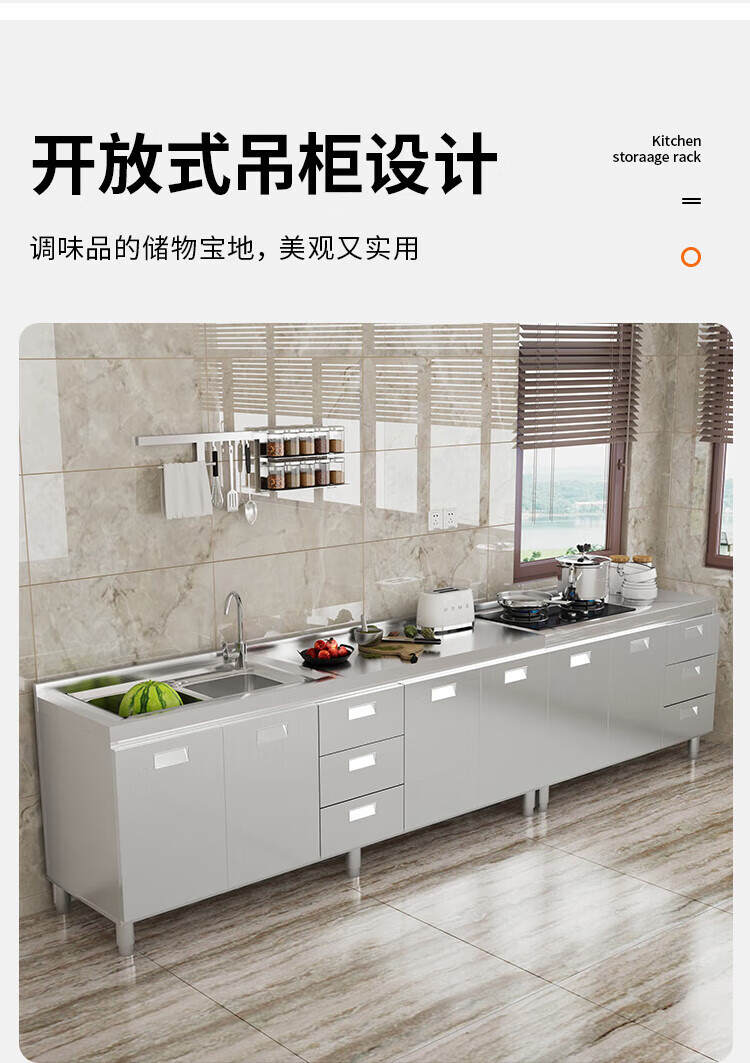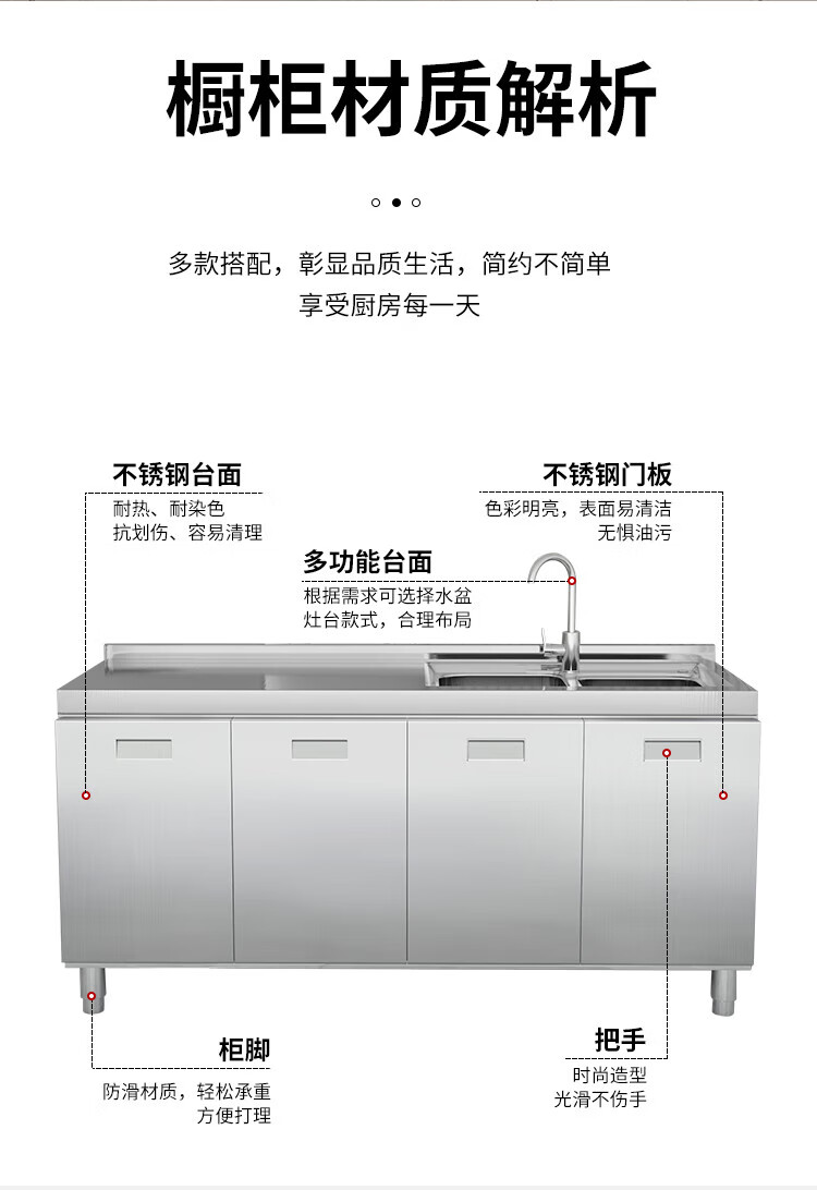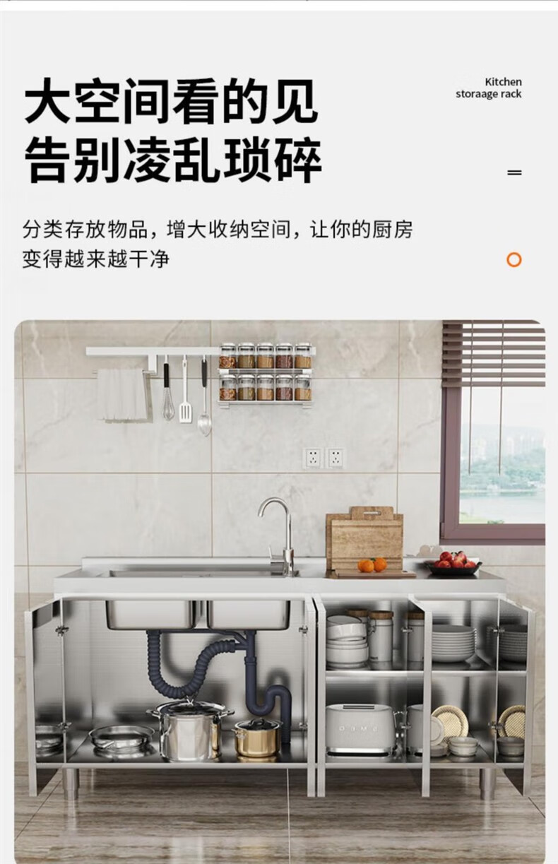 Qusuomei stainless steel integrated cabinet 304 does not need to be installed and shipped fully assembled stove cabinet sideboard kitchen kitchen cabinet home 150cm three door single basin model (remarks left and right) 201 stainless steel