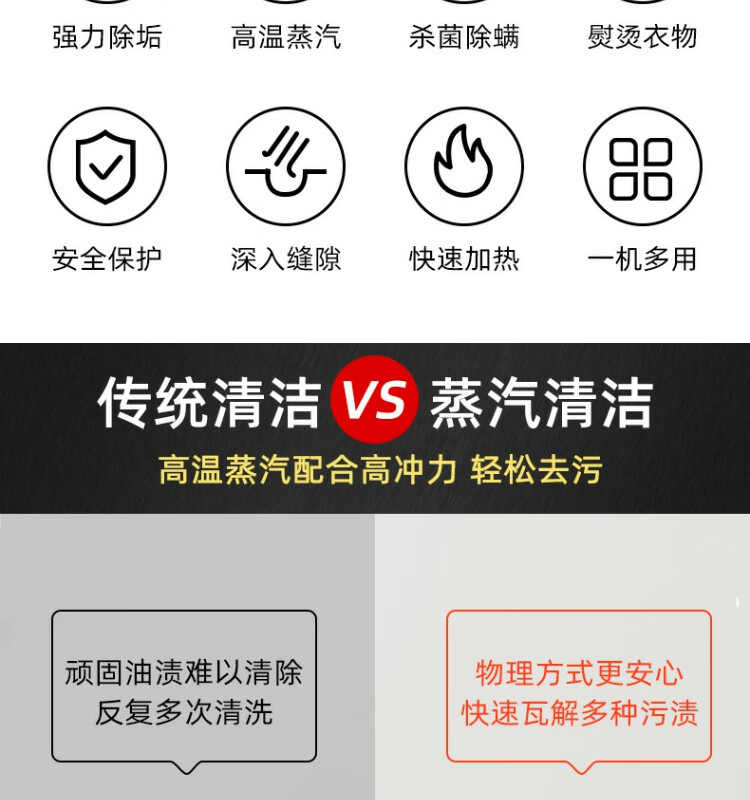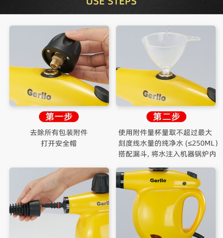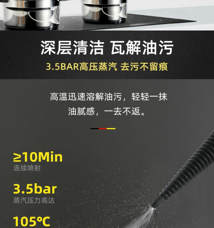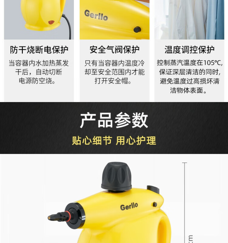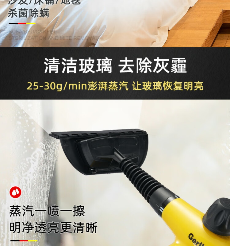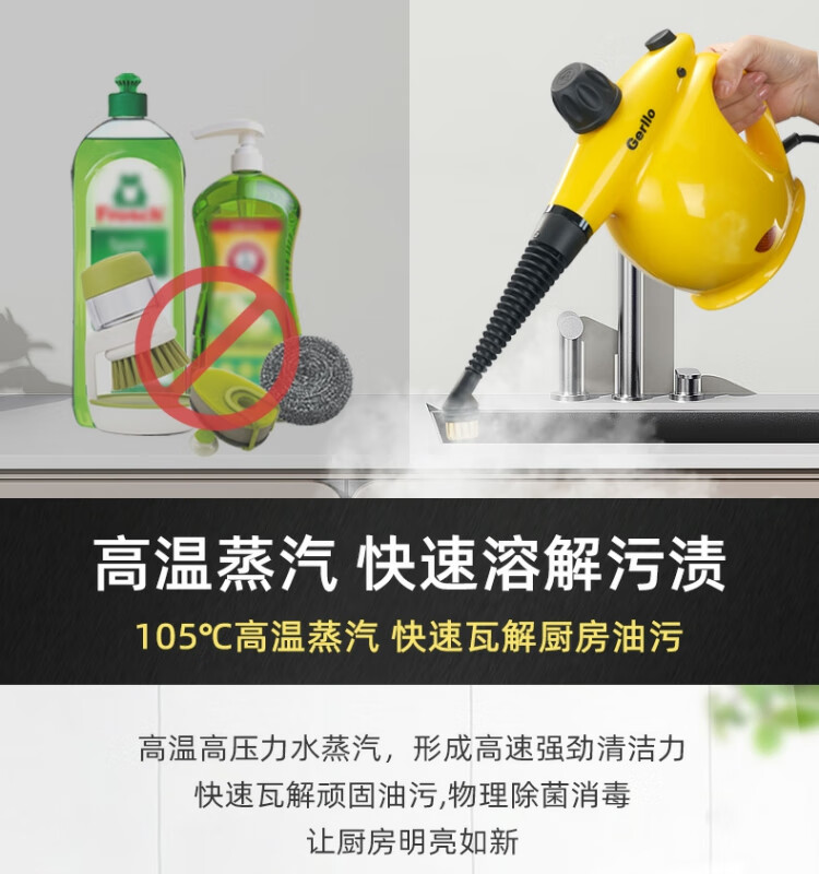 GERLLO German high-temperature steam cleaner professionally cleans range hoods, multi-functional kitchen oil removal, 99% sterilization rate, 100% mite removal + 12 major accessories