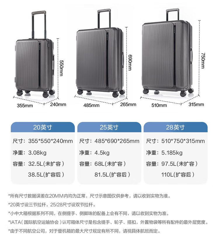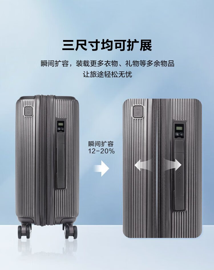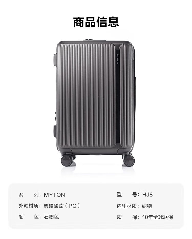 Samsonite MYTON series HJ8 fashionable striped trolley case expandable suitcase HJ8 graphite color 20 inches