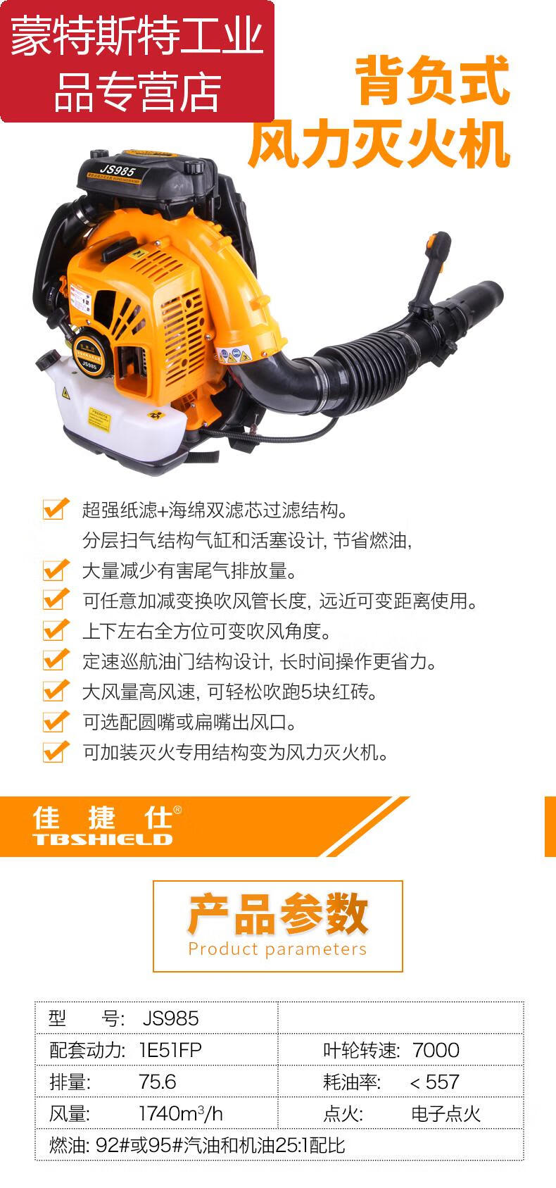 Jiajieshi backpack gasoline hair dryer mountain forest fire extinguishing land reclamation dust removal snow blowing road sweeping fan JS985 Jiajiesi JS975B backpack type wind fire extinguisher