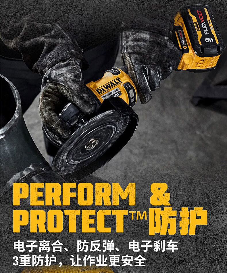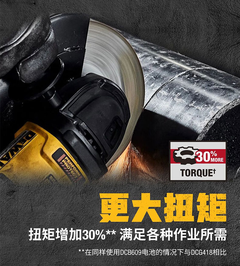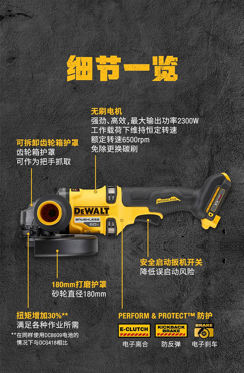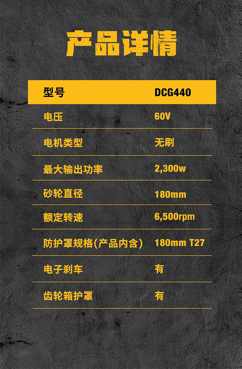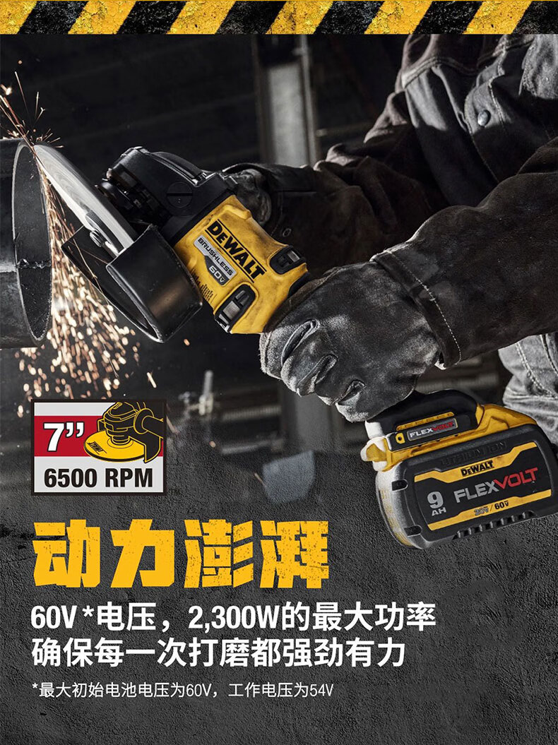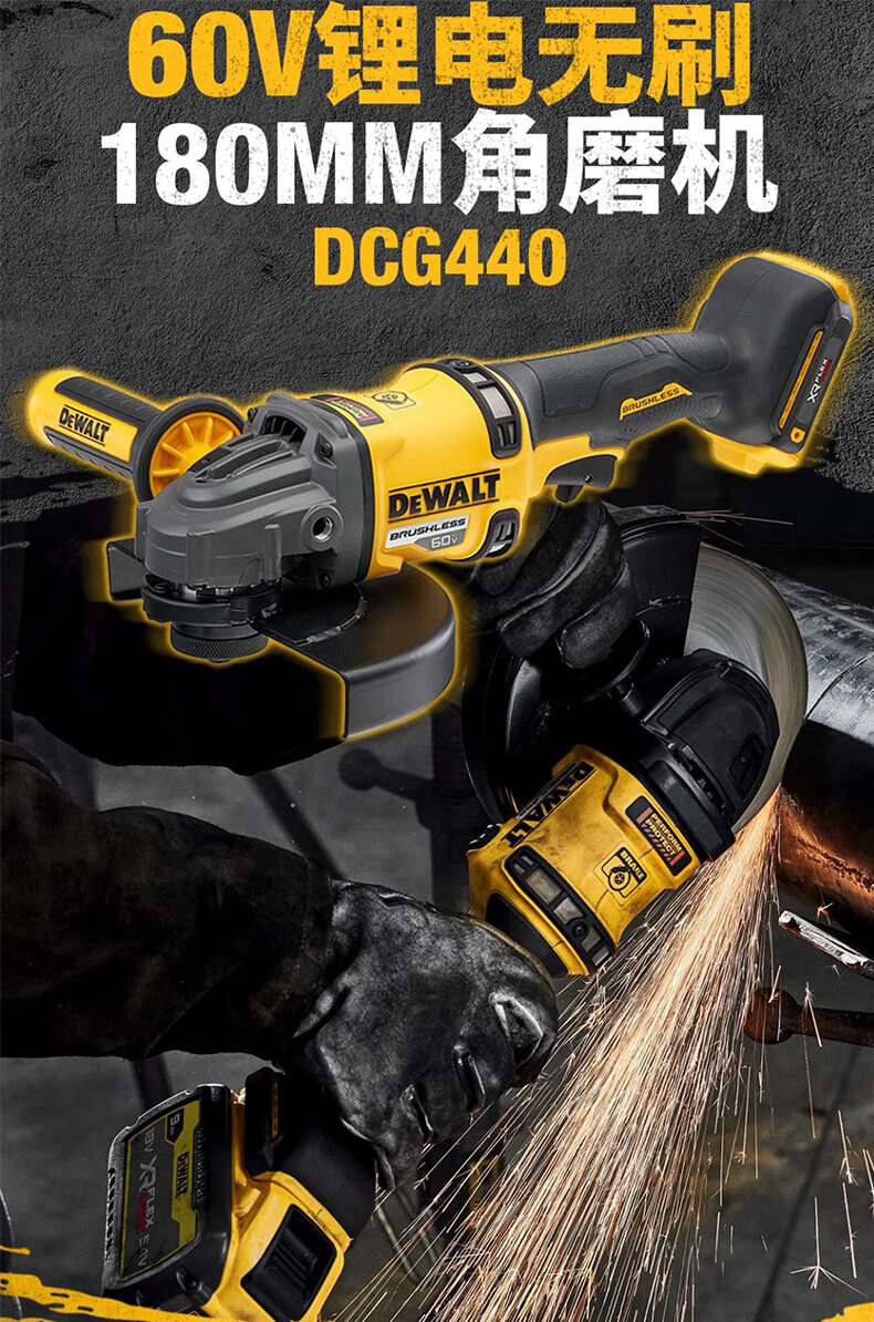 DEWALT 60V lithium battery rechargeable brushless 180mm angle grinder DCG440 metal concrete stone grinding and cutting machine DCG440N two batteries and one charge 6.0A