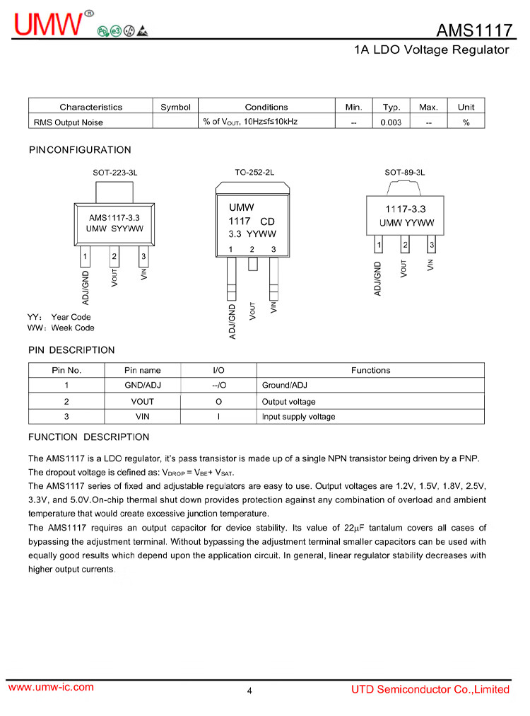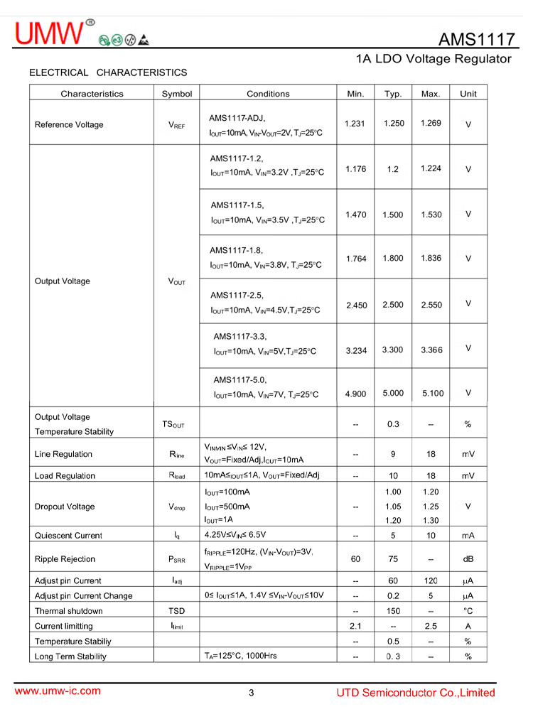 AMS1117-3.3 1.2 1.8 2.5 5.0VADJ regulated power supply chip original genuine UMW step-down IC UMW/Friend Taiwan AMS1117-5.0SOT-223 No specifications