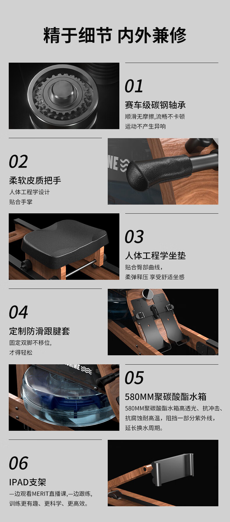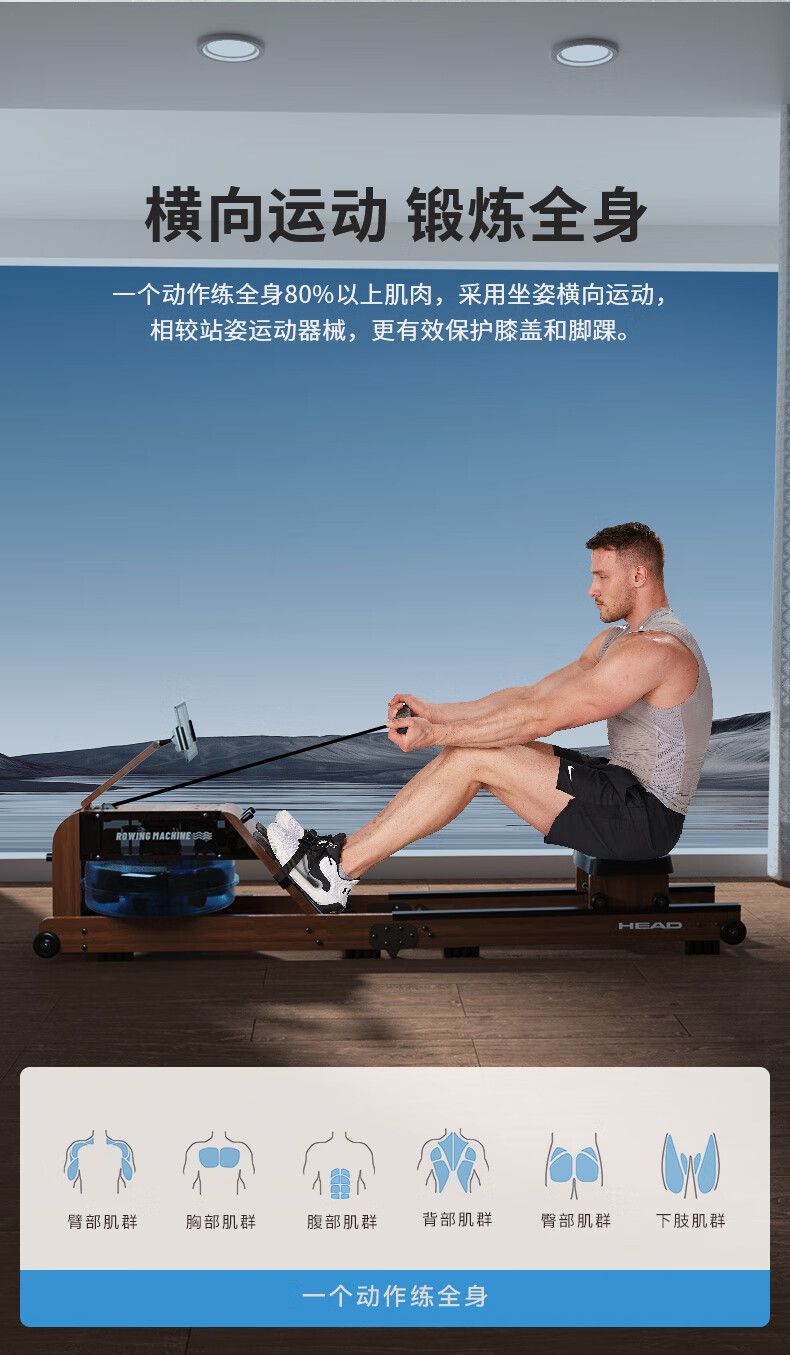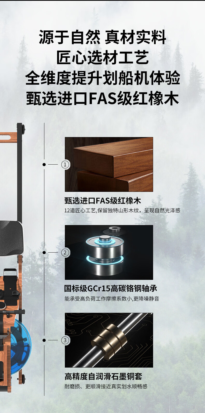 Hyde rowing machine home fitness trainer foldable paddling water smart water magnetic dual resistance equipment boat slip WR386 (black walnut color)