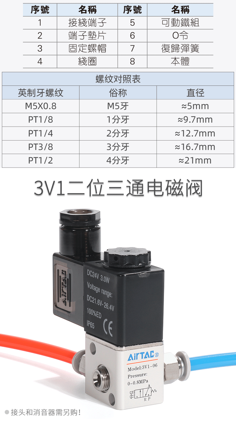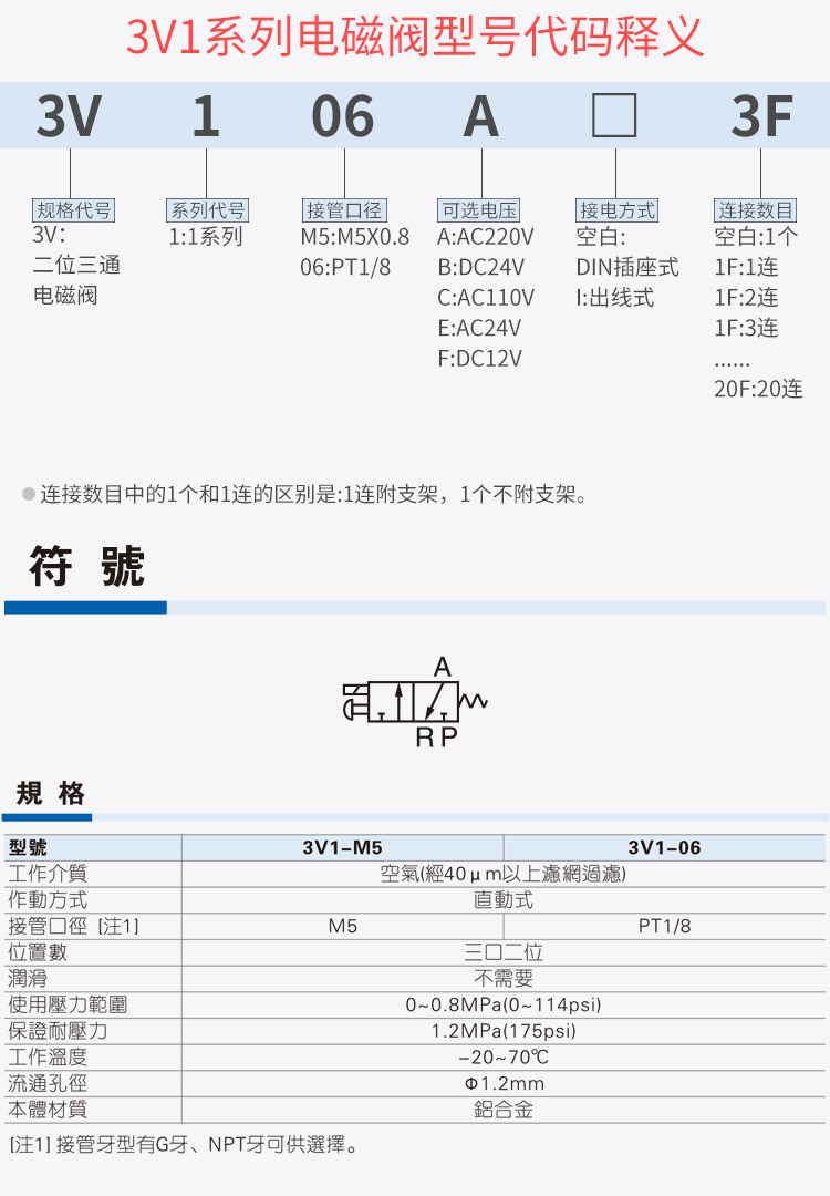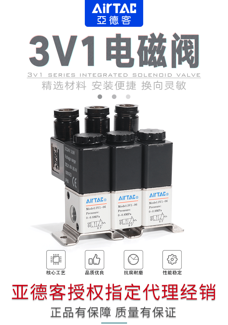Yadeke two-position three-way solenoid valve 3V1-06A integrated valve 3V106B2F/3F/4F/5F/6F/7F/8F/9F 3V106B without bracket DC24V