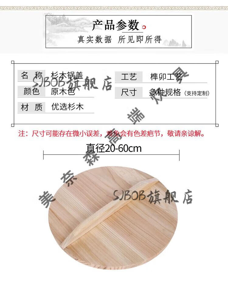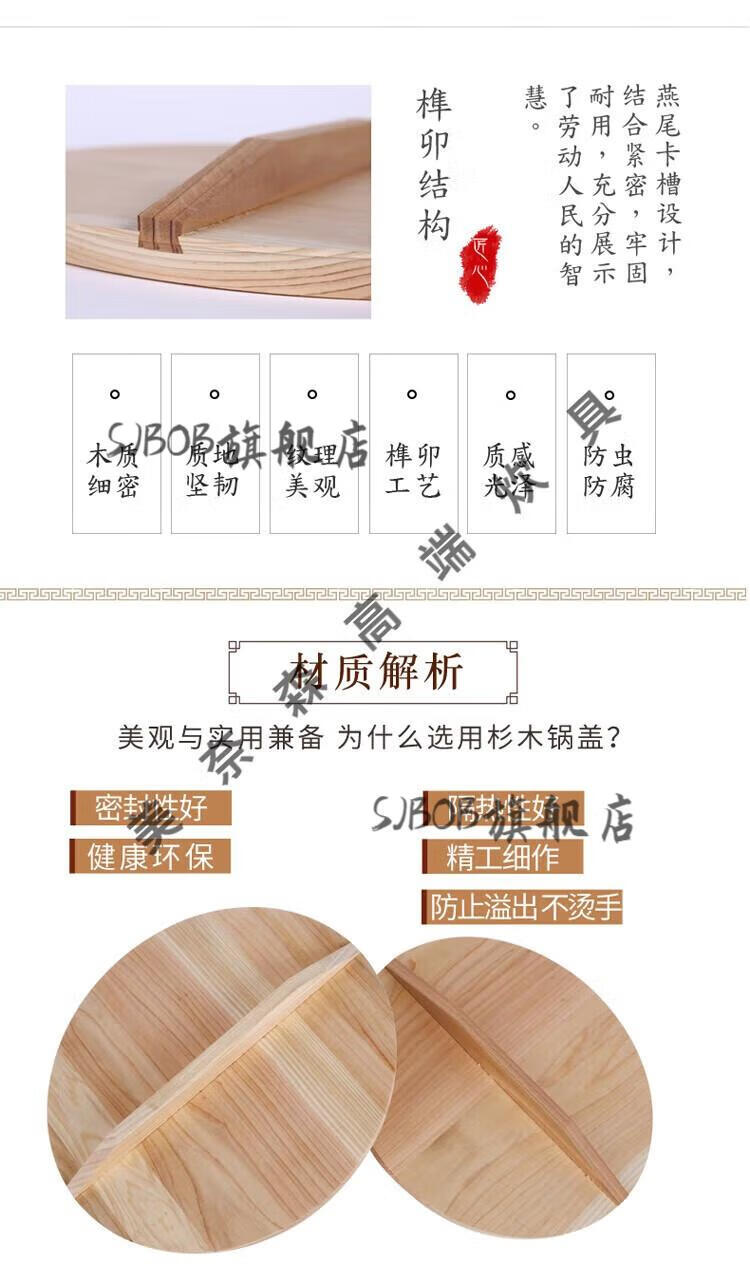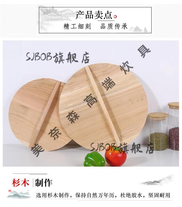 SJBOB wooden pot lid household Zhangqiu iron pot wooden lid fir pot lid environmentally friendly water cylinder lid wood lid wooden pot lid handmade diameter fir pot lid 34cm