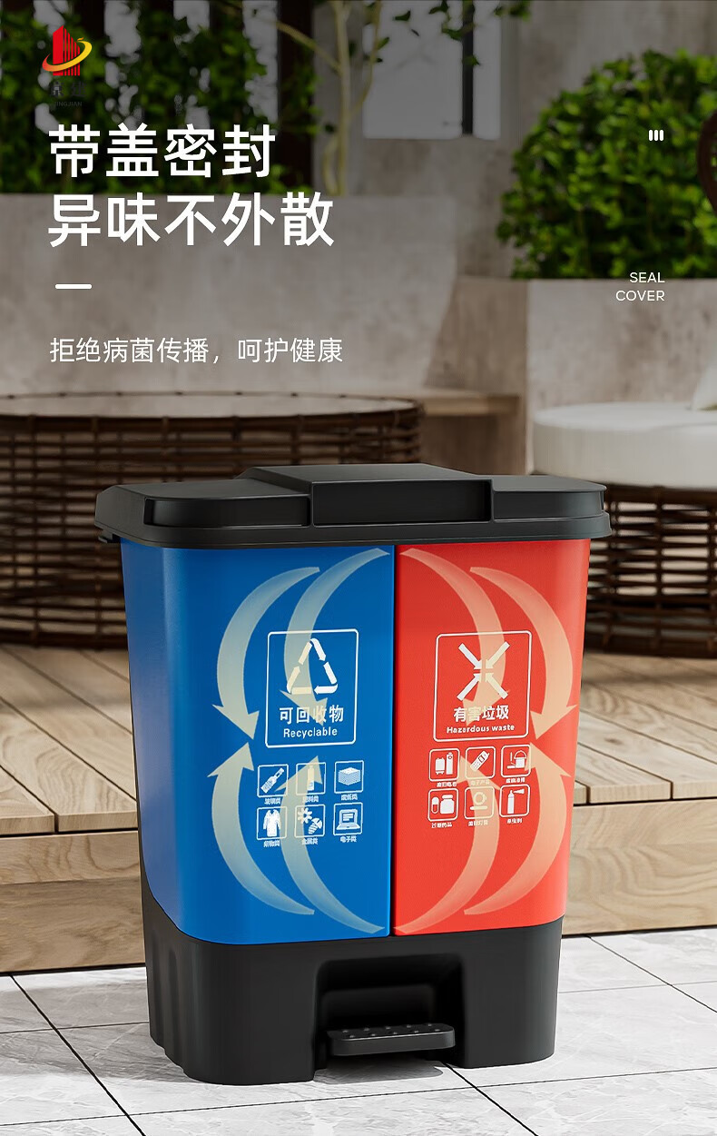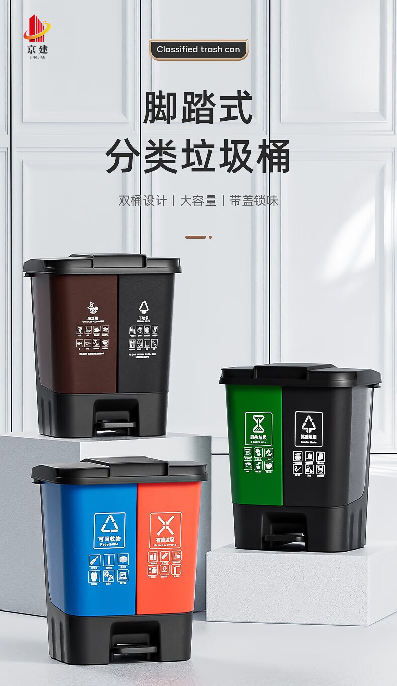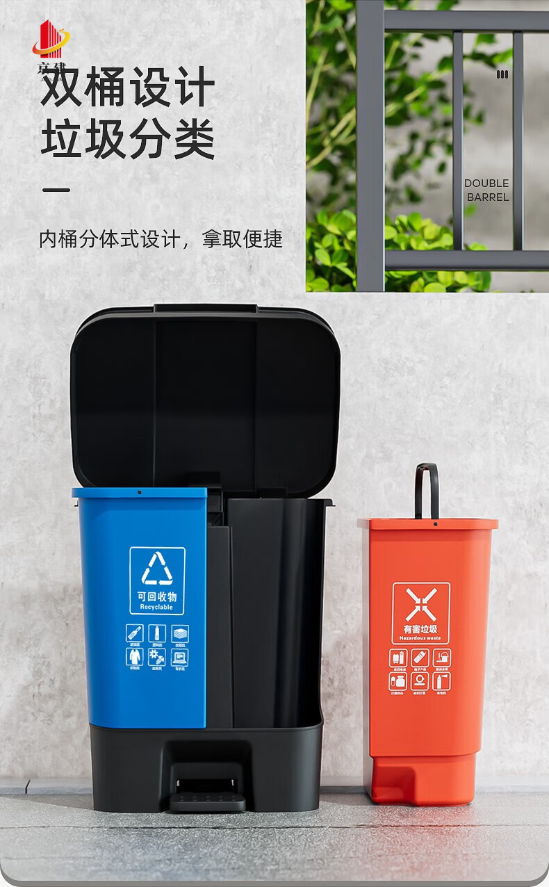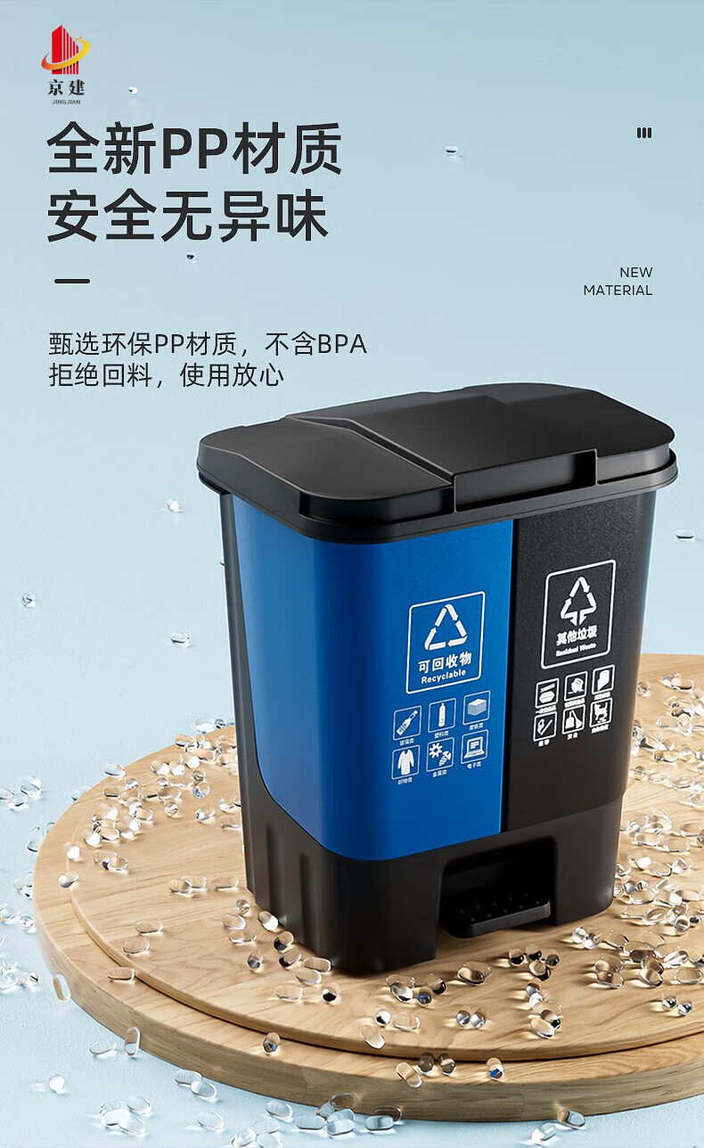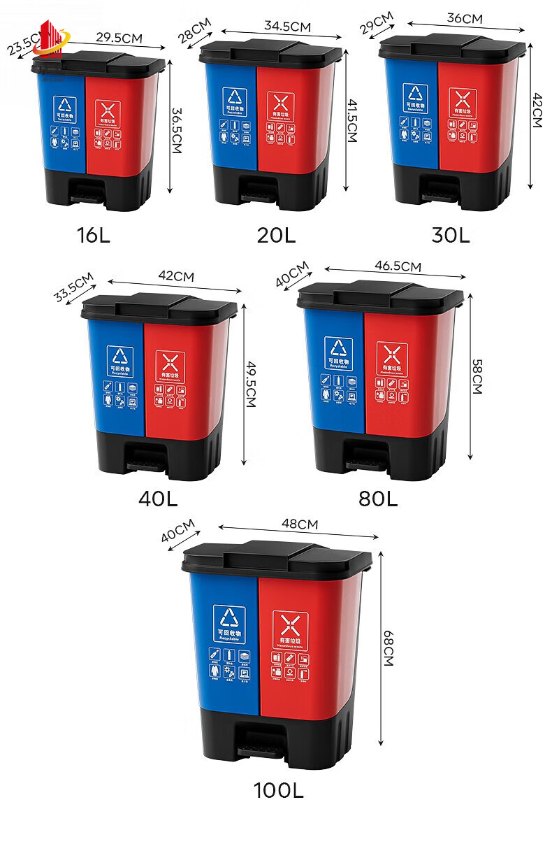 Garbage sorting two-in-one trash can dry and wet separation double bucket four-color commercial public place foot pedal household recycling 16L double bucket / blue and gray / recyclable + other