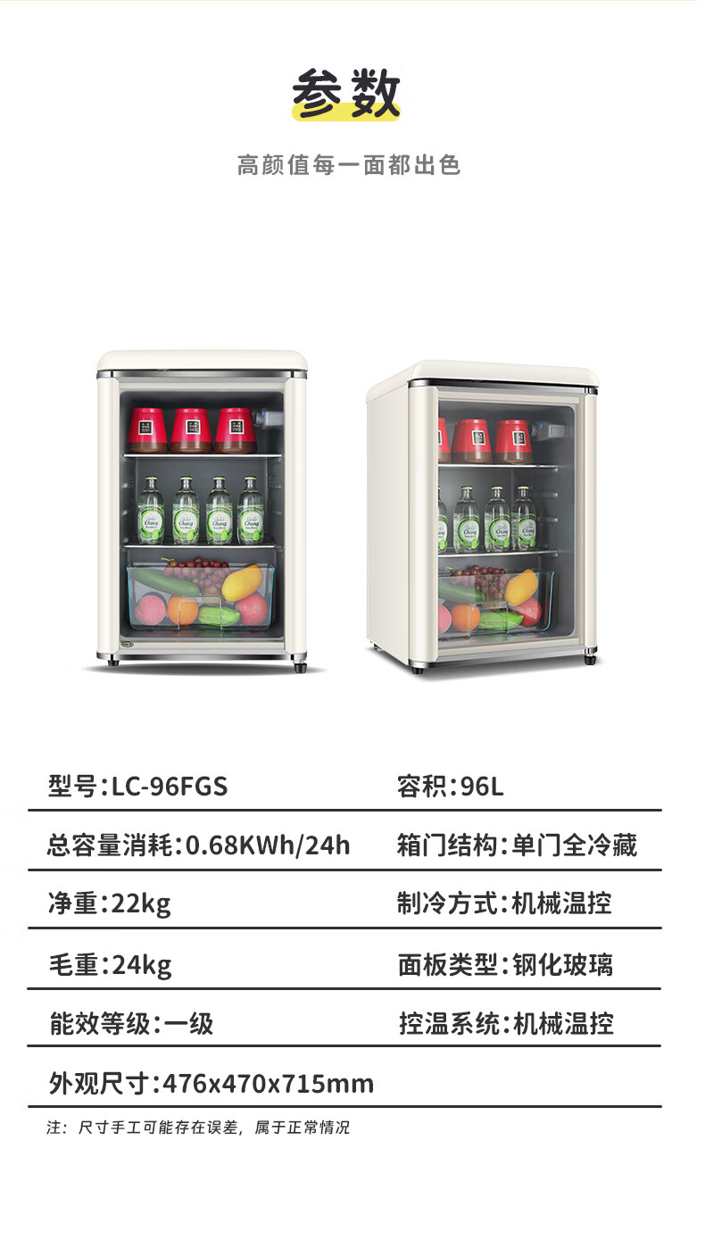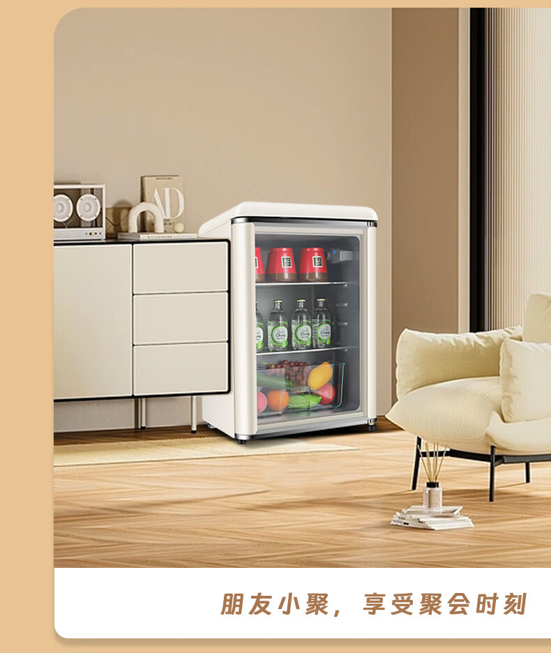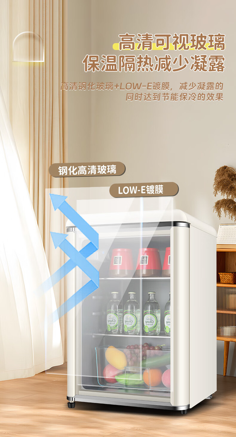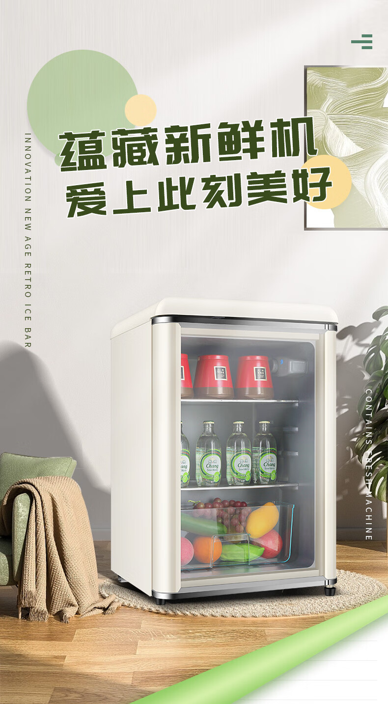 Chigo Ice Bar Household Refrigerator Transparent Fresh Cabinet Beverage Refrigerator Office Small Refrigerated Beverage Wine Cabinet Black 75L Single Door Fully Refrigerated/Level 1 Energy Efficiency/With Lights