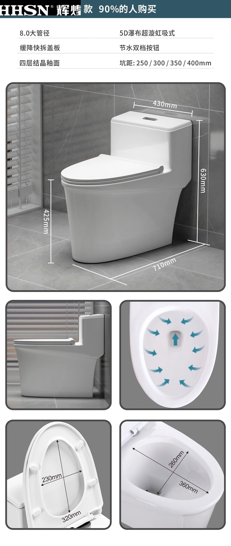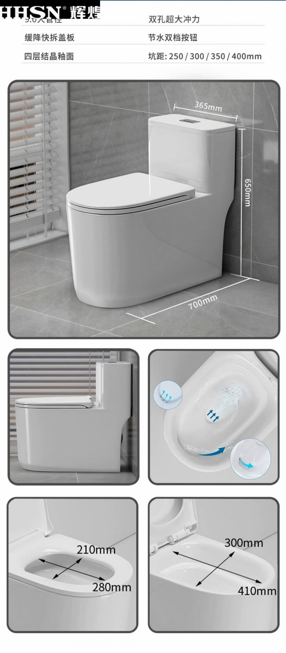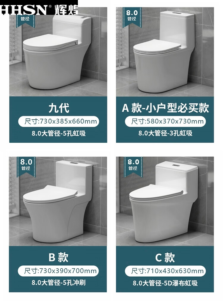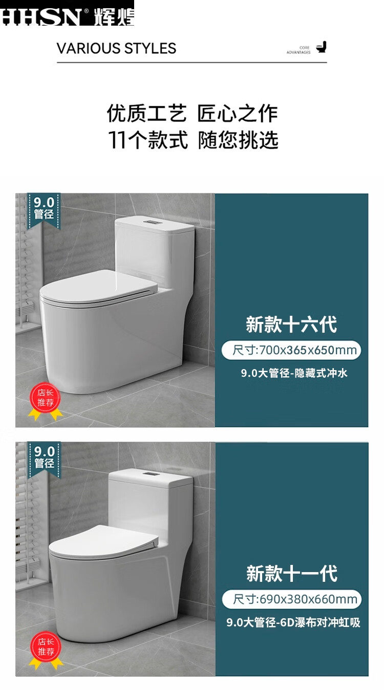 Huihuang household toilet ordinary toilet ceramic super swirl siphon deodorant silent large diameter water pumping small apartment seat Zhendian 16th generation 9.0 large diameter - anti-splash water other/other