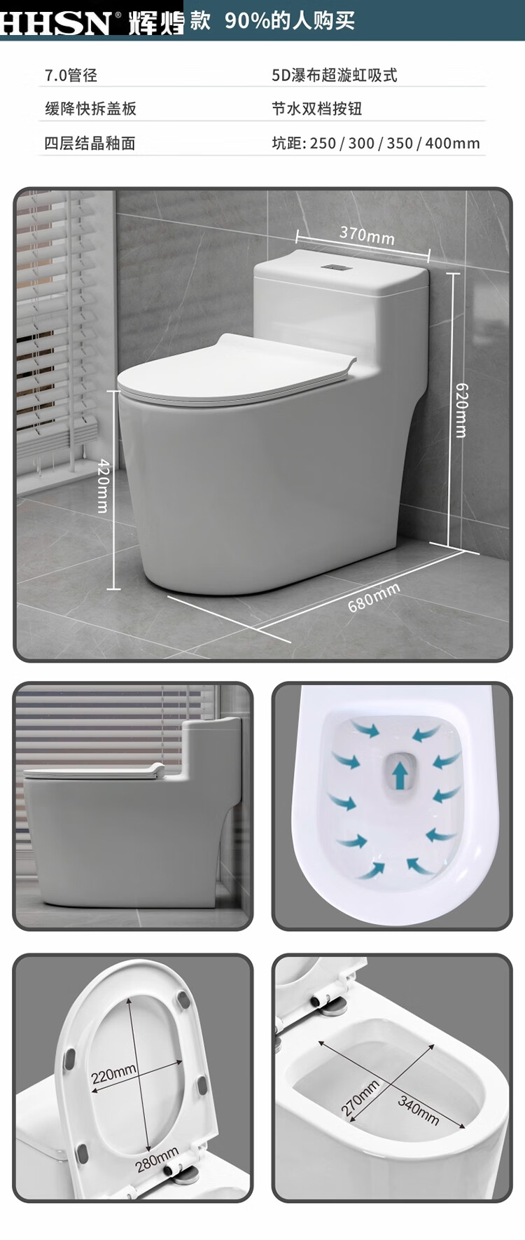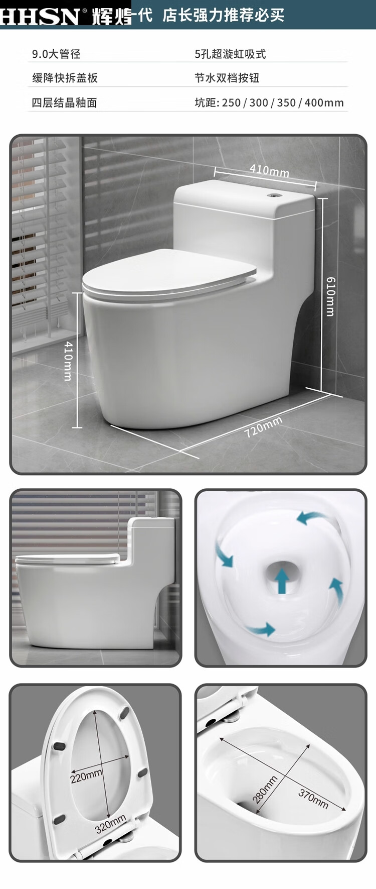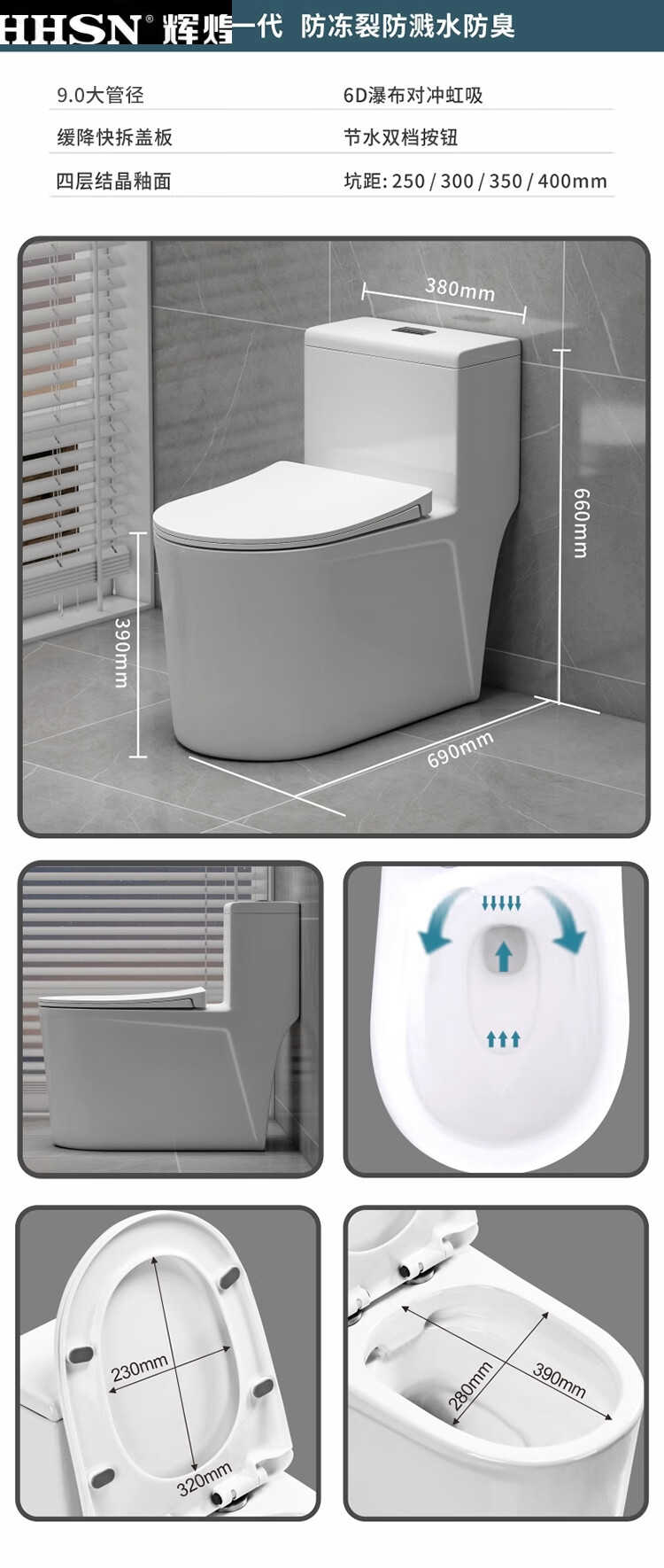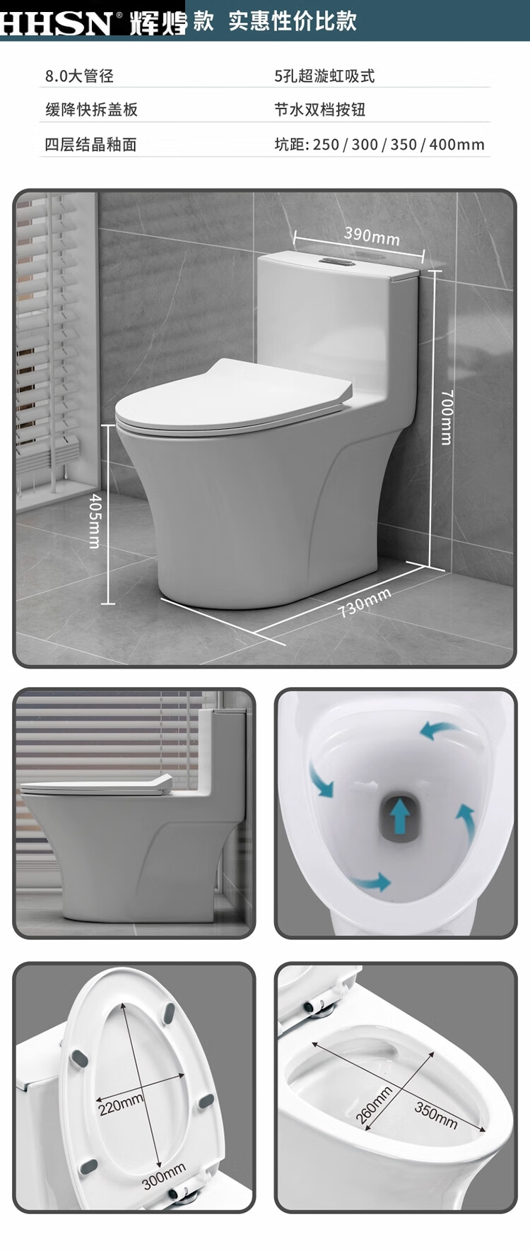 Huihuang household toilet ordinary toilet ceramic super swirl siphon deodorant silent large diameter water pumping small apartment seat Zhendian 16th generation 9.0 large diameter - anti-splash water other/other