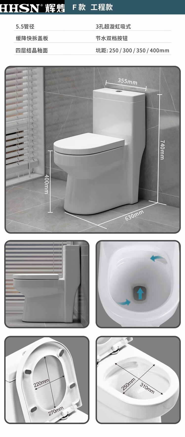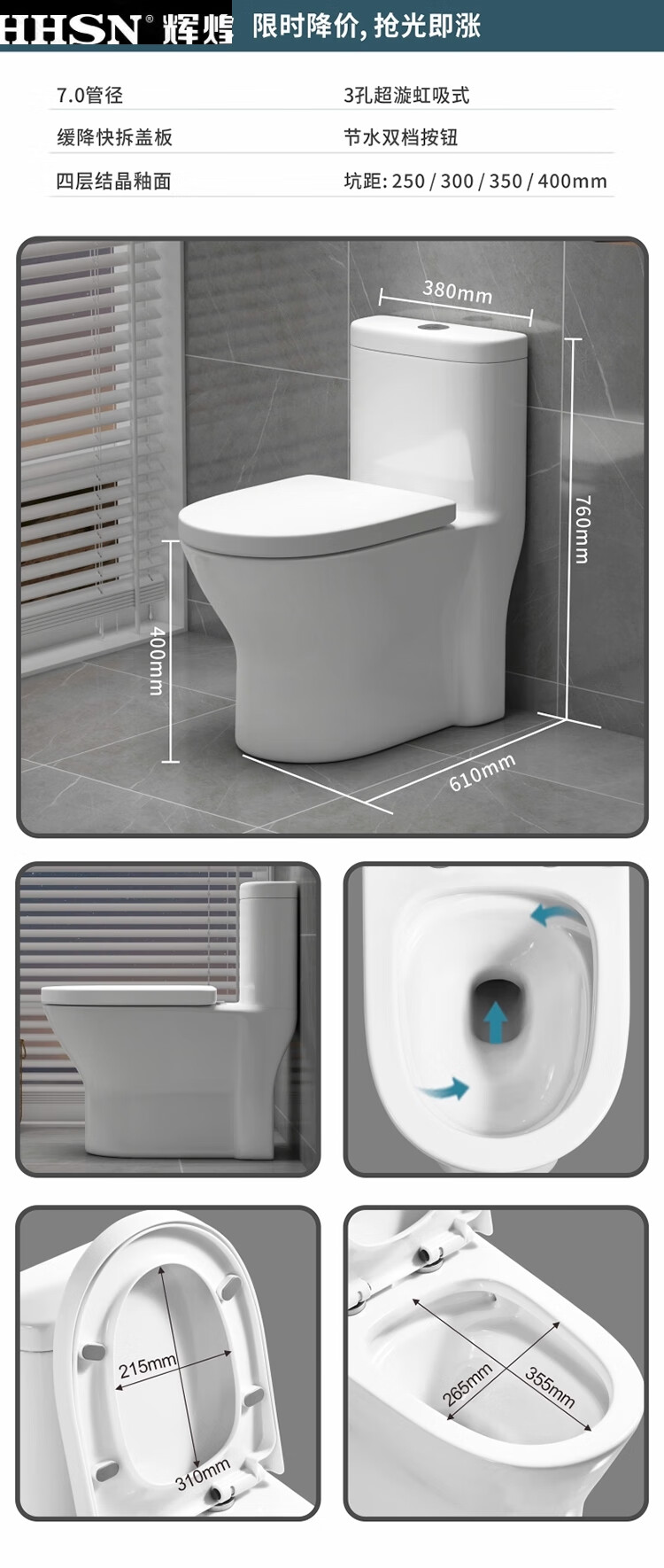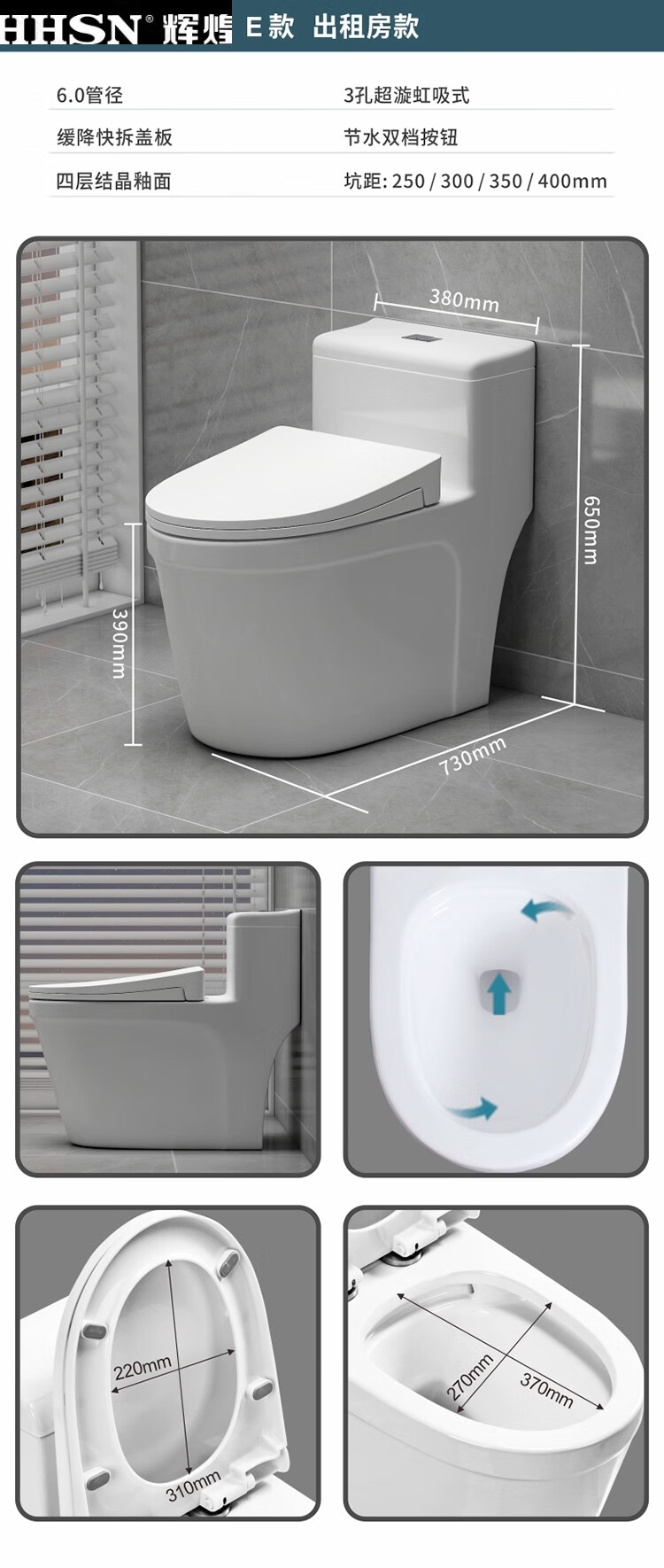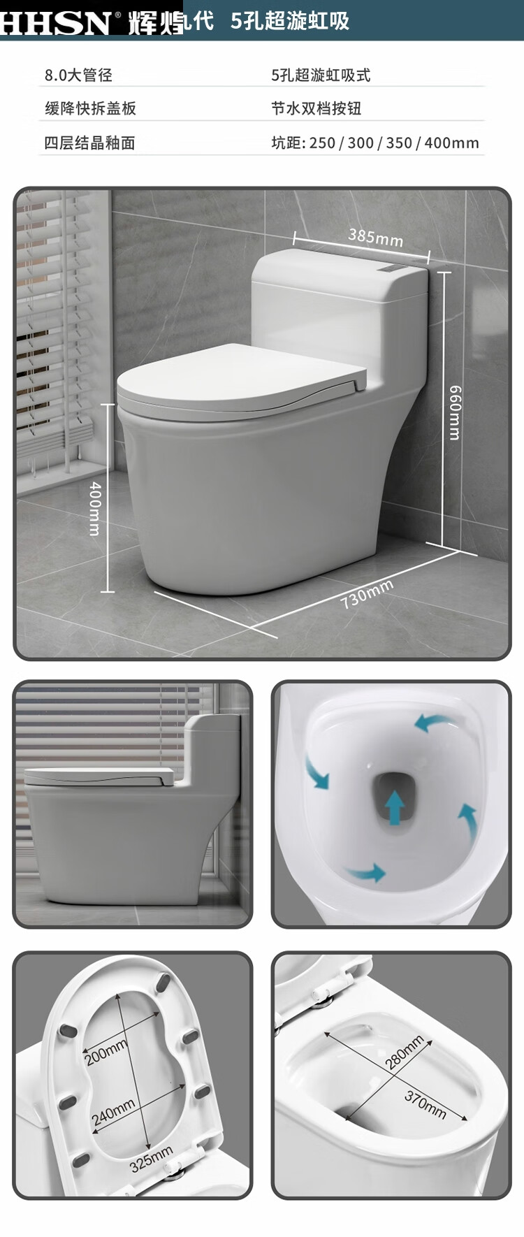 Huihuang household toilet ordinary toilet ceramic super swirl siphon deodorant silent large diameter water pumping small apartment seat Zhendian 16th generation 9.0 large diameter - anti-splash water other/other