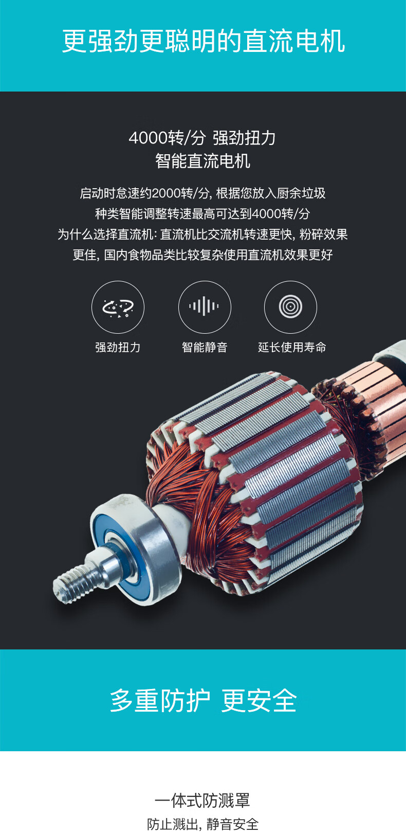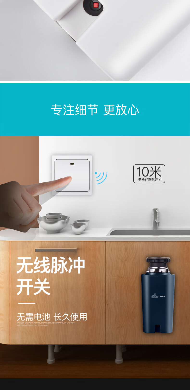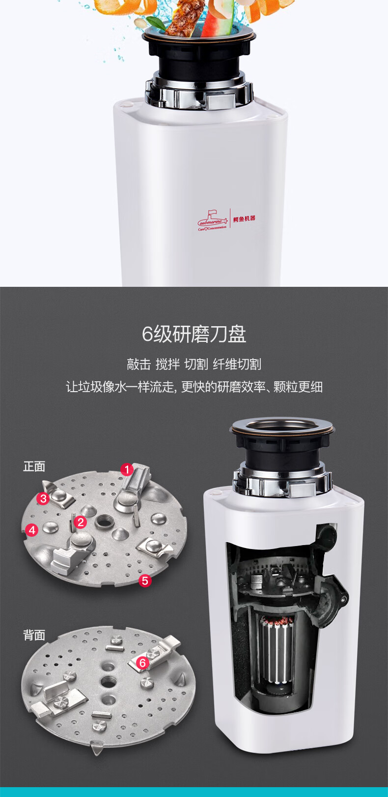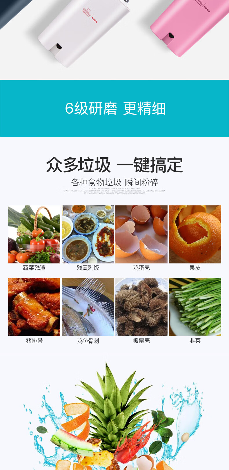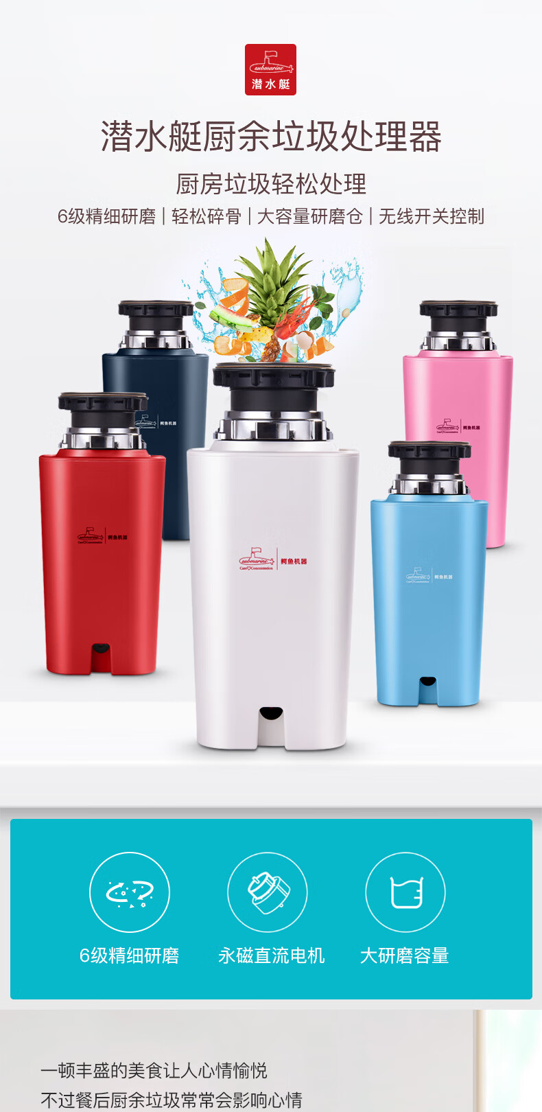 Submarine kitchen food waste disposer kitchen waste shredder silent household sink fully automatic leftovers cyan blue