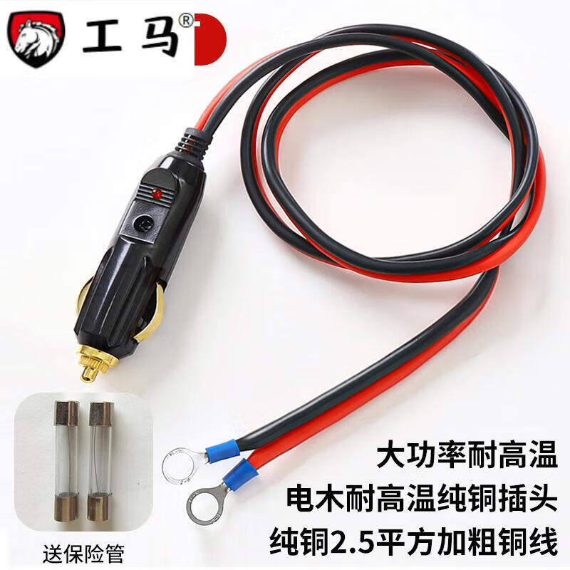 After-trip car cigarette lighter plug pure copper high-power high-temperature resistant air pump extension cord 12v24v universal male pure copper plug 2.5 flat line length 10 cm