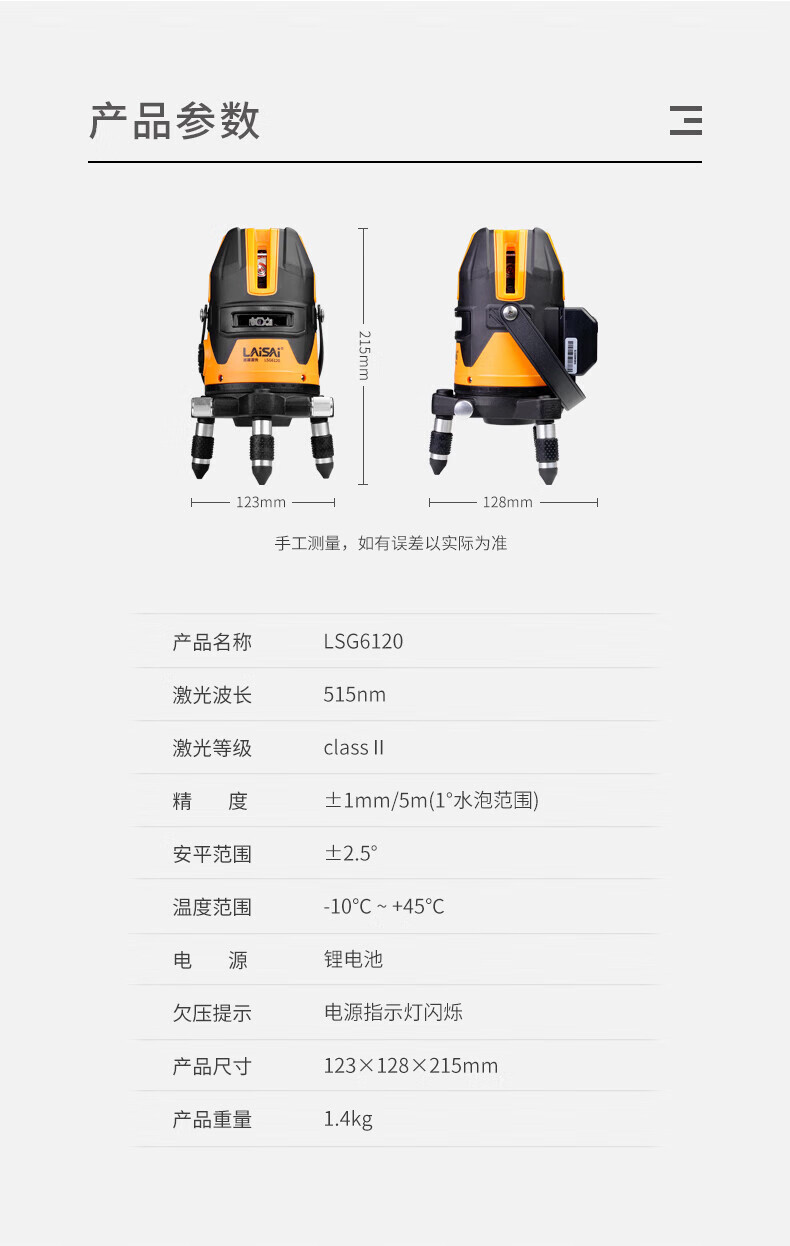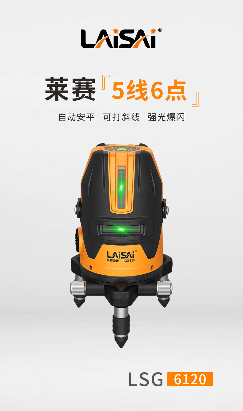 Laser level meter 5 lines 6 points strong green light LSG6120 high precision strong light thin line with laser enhanced point marking instrument 5 lines 6 points strong green light 6120 standard + tripod