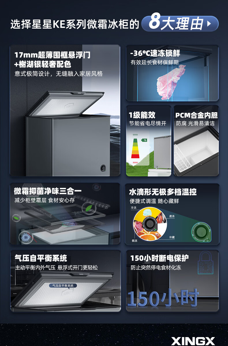 Star Freezer Single Temperature Refrigeration and Freezing Dual-Purpose-36 Cryogenic Quick-Freezer Home Top-Opening Micro-Frost Refrigerator First-Class Energy Efficiency, Odor-Free and Antibacterial Technology National Subsidy BD/BC-200KE 200L National Subsidy
