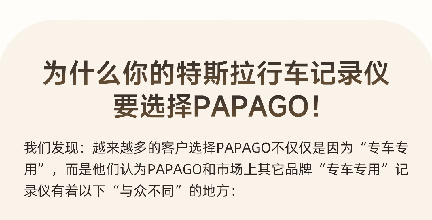 PAPAGO! Driving recorder, special car-specific cable-free, suitable for Tesla ModelY/3 ModelS ModelX, etc. Ultra-clear model, single lens, official standard + no card